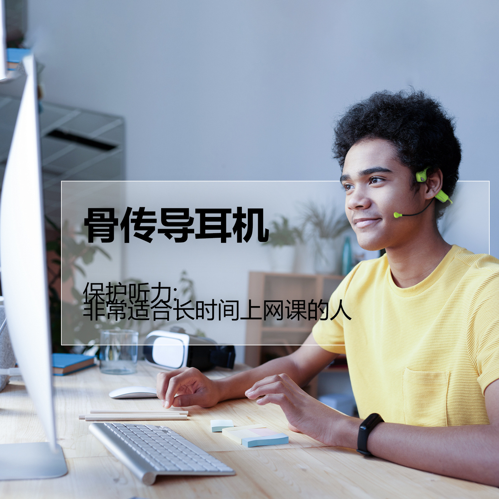 与传统的入耳式或罩耳式耳机不同,骨传导耳机通过振动我们的颧骨将声音直接传入内耳,为您带来优质的音频体验。这样可以保持外耳道的畅通和卫生,并保护鼓膜免受损伤,非常适合长期戴耳机学习的年轻人,避免听力受损。