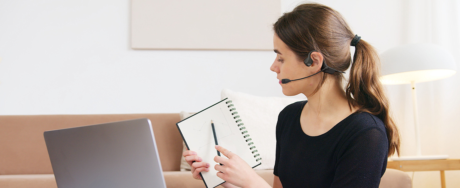 采用开耳式设计的无线蓝牙耳机可让您随时随地与周围环境保持联系,并对任何危险保持警惕。这款电脑用骨传导耳机非常适合工作、户外跑步、散步、远足、健身、开车、学习、开会或在家办公等。
