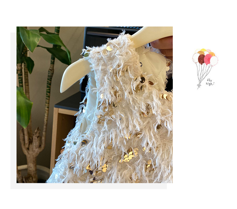 2025 겨울 여아용 스팽글 프린지 조끼 드레스 여아용 플러스 벨벳 라이트 럭셔리 공주 드레스 생일 및 새해 드레스스토어 가기