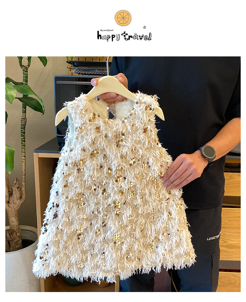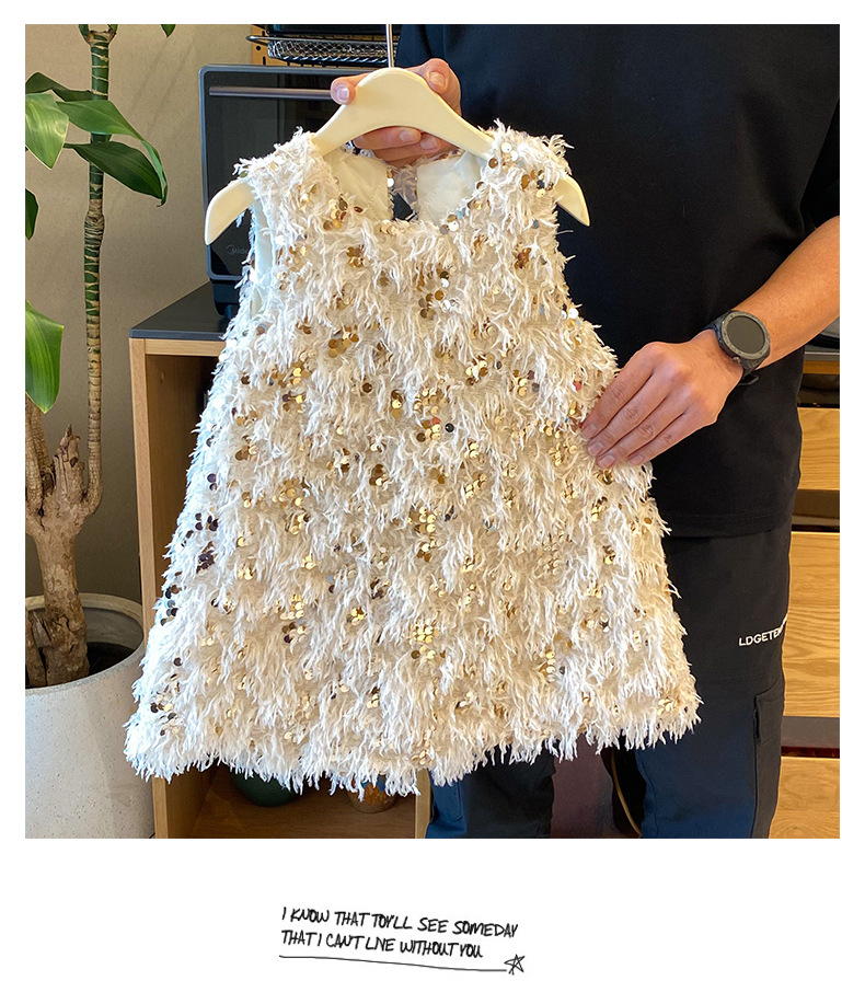 2025 겨울 여아용 스팽글 프린지 조끼 드레스 여아용 플러스 벨벳 라이트 럭셔리 공주 드레스 생일 및 새해 드레스