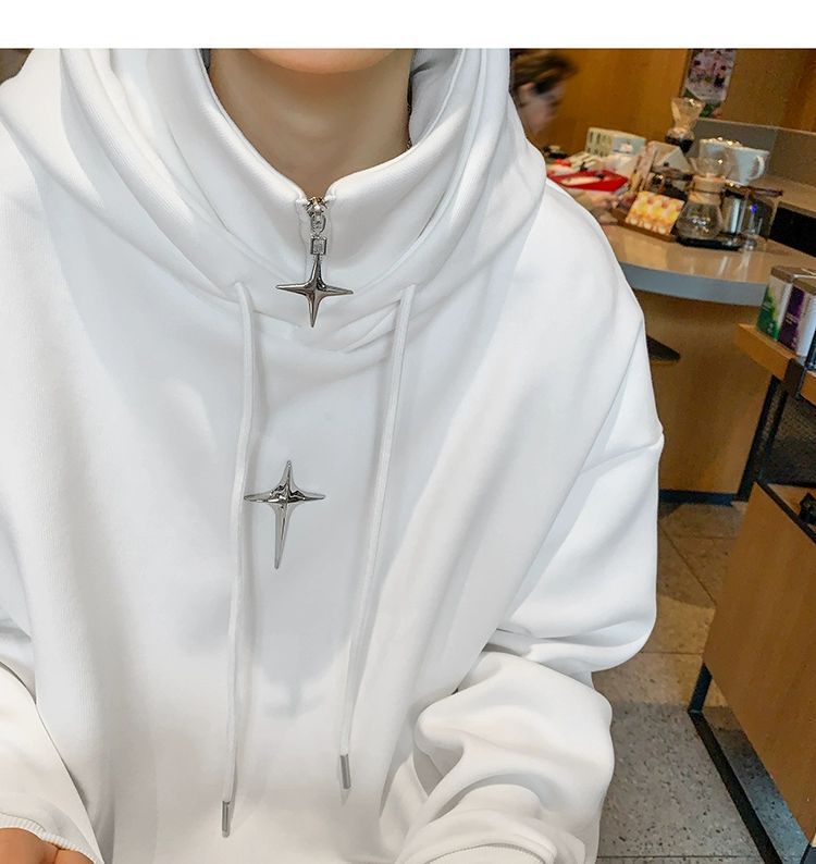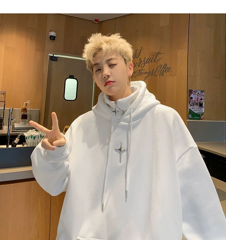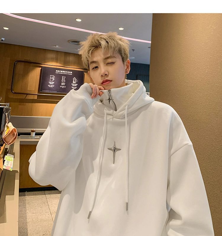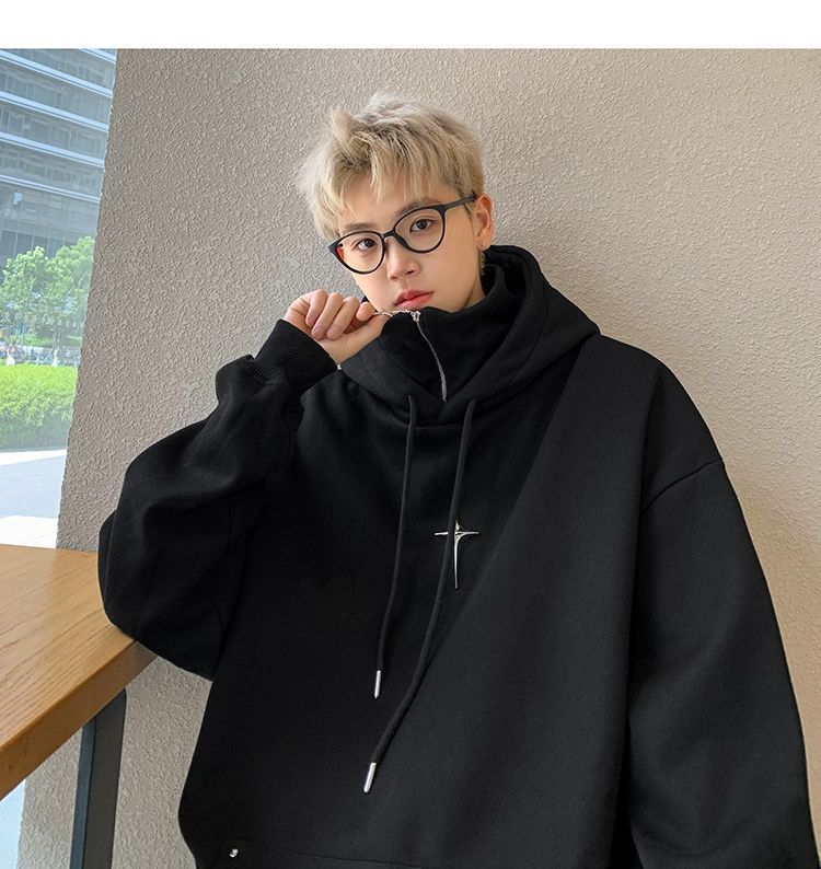가짜 투피스 후드 스웻셔츠 남자의 2023 가을 새로운 패션 브랜드 아메리칸 스타일 레트로 오버 사이즈 하프 지퍼 재킷