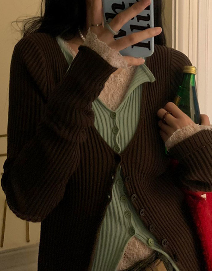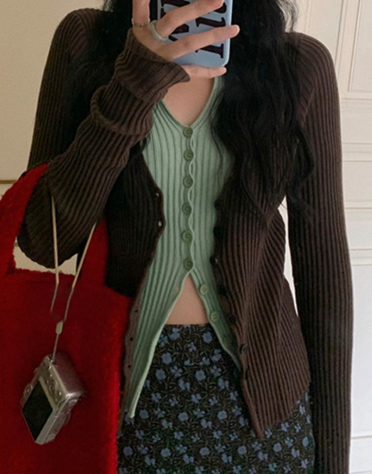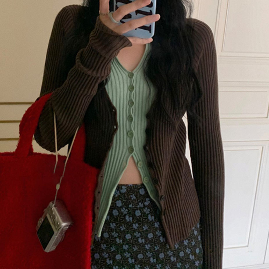 2025 가을 겨울 신상품 패셔너블하고 다재다능하며 부드럽고 편안한 독특한 디자인의 페이크 투피스 니트 가디건 상의스토어 가기