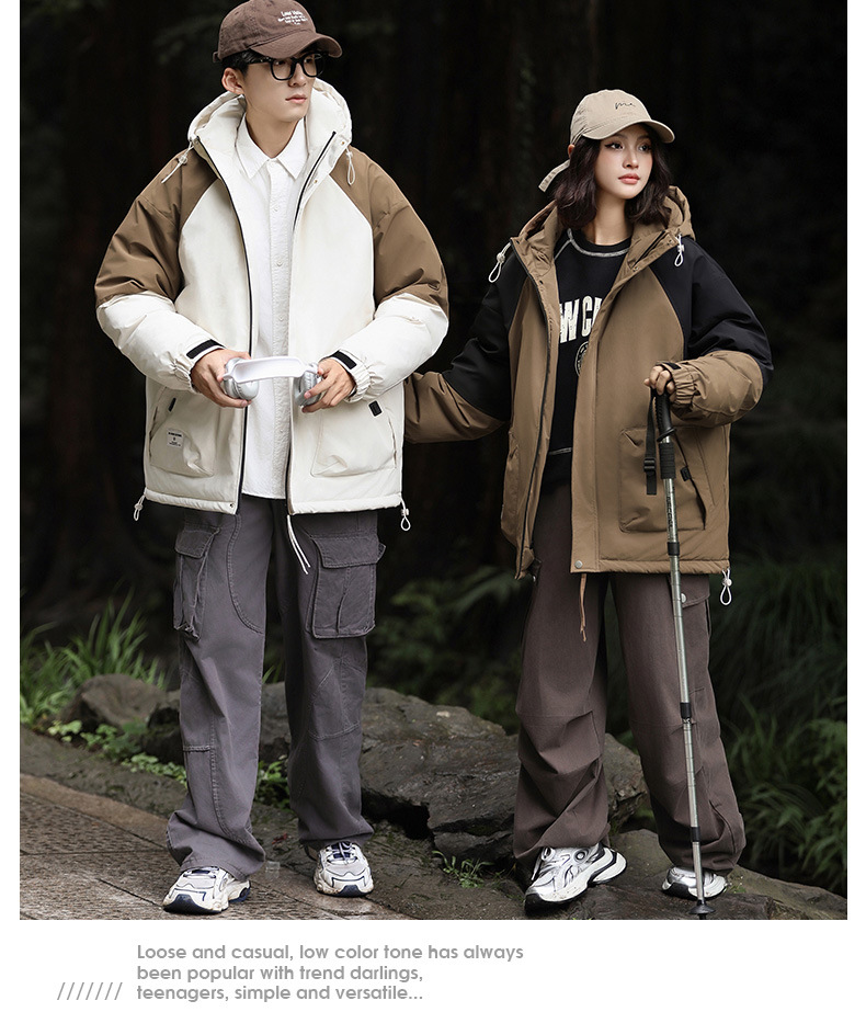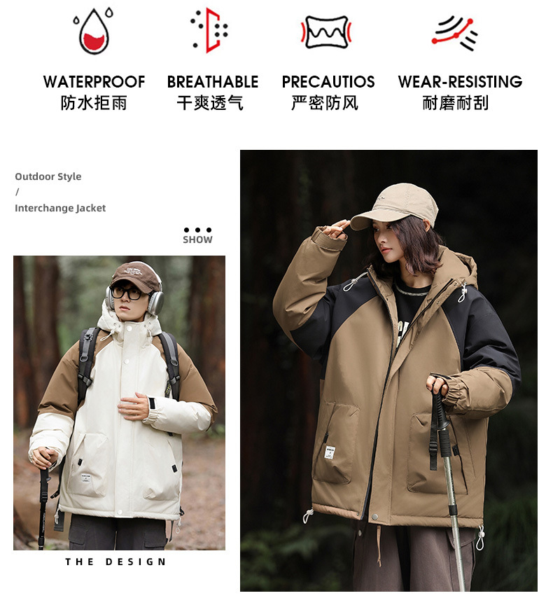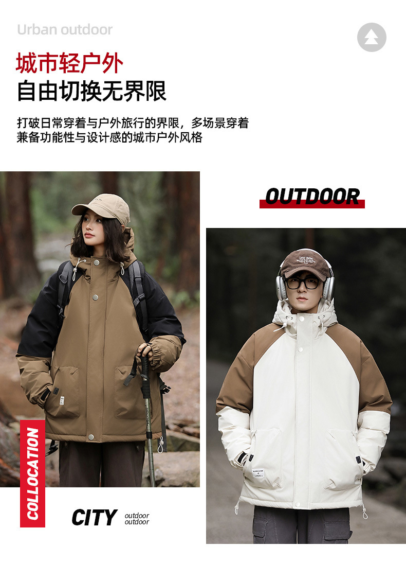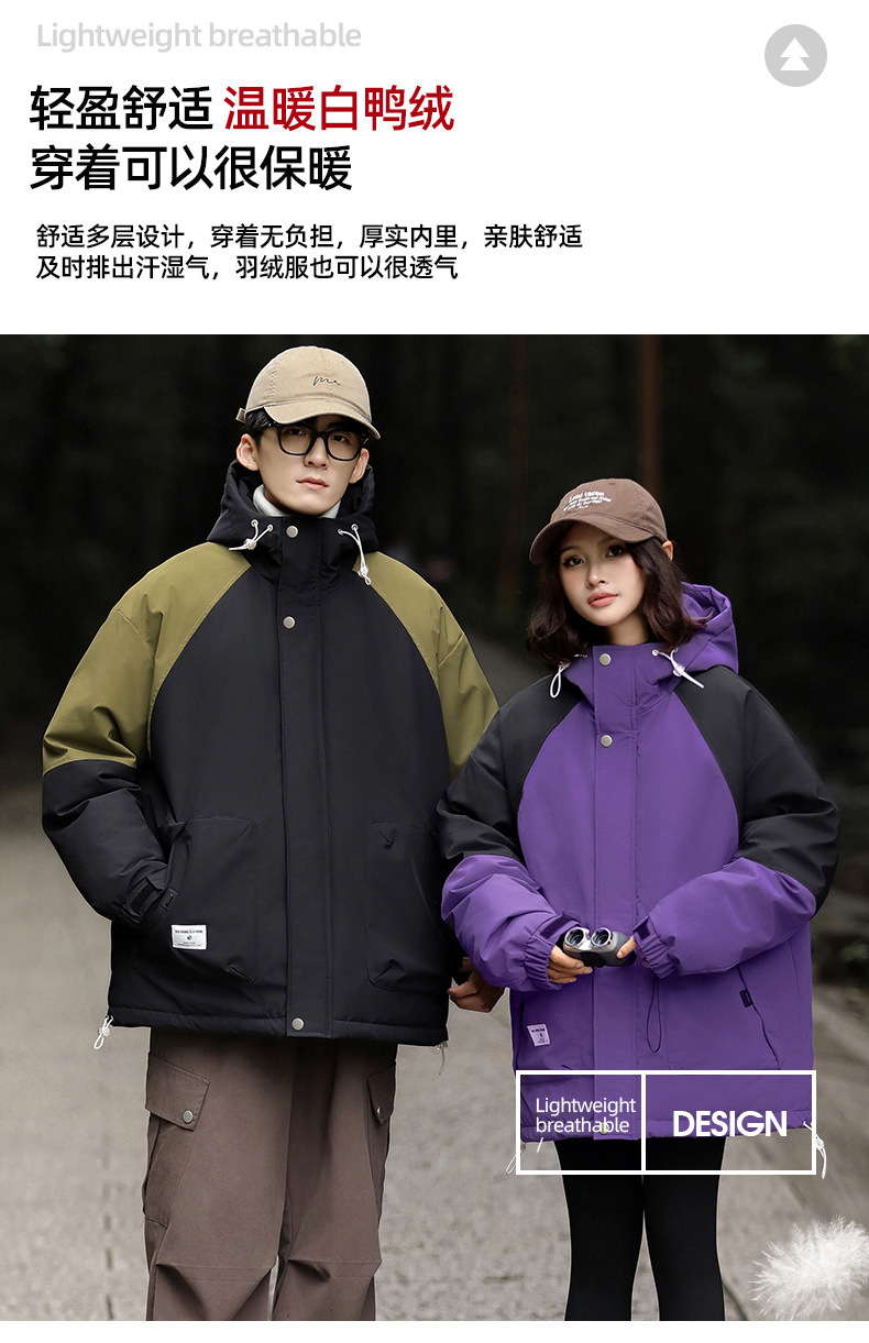 가을 겨울 남성과 여성을 위한 다운 재킷 대형 야외 스포츠 배색 방풍 및 방수 등산 화이트 오리 다운 재킷 경량