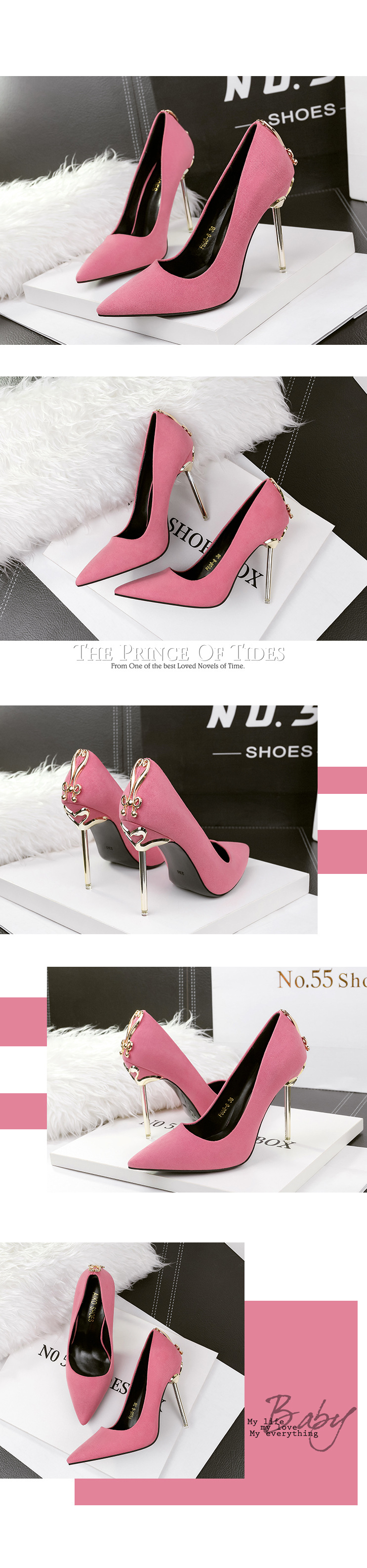 608-6 패션 클래식 얇은 굽 금속 버클 나비 하이힐 여성 신발 여성용 스웨이드 새로운 슈퍼 하이힐 싱글 슈즈스토어 가기