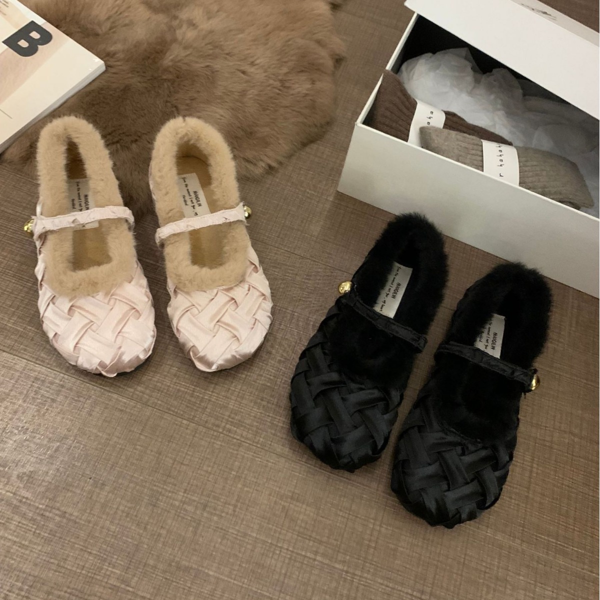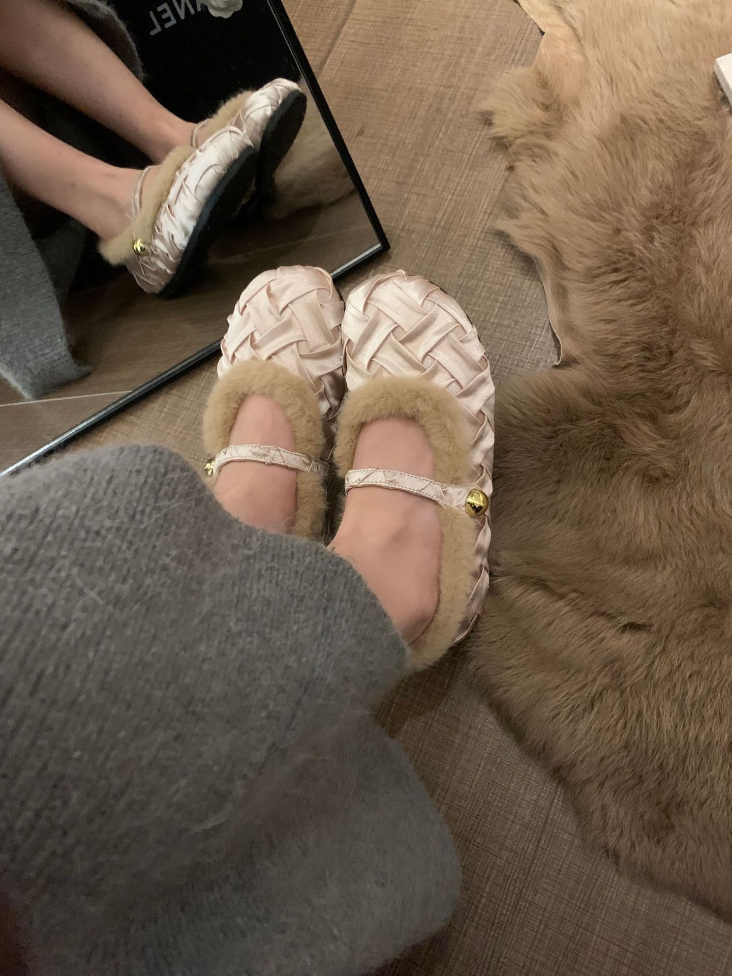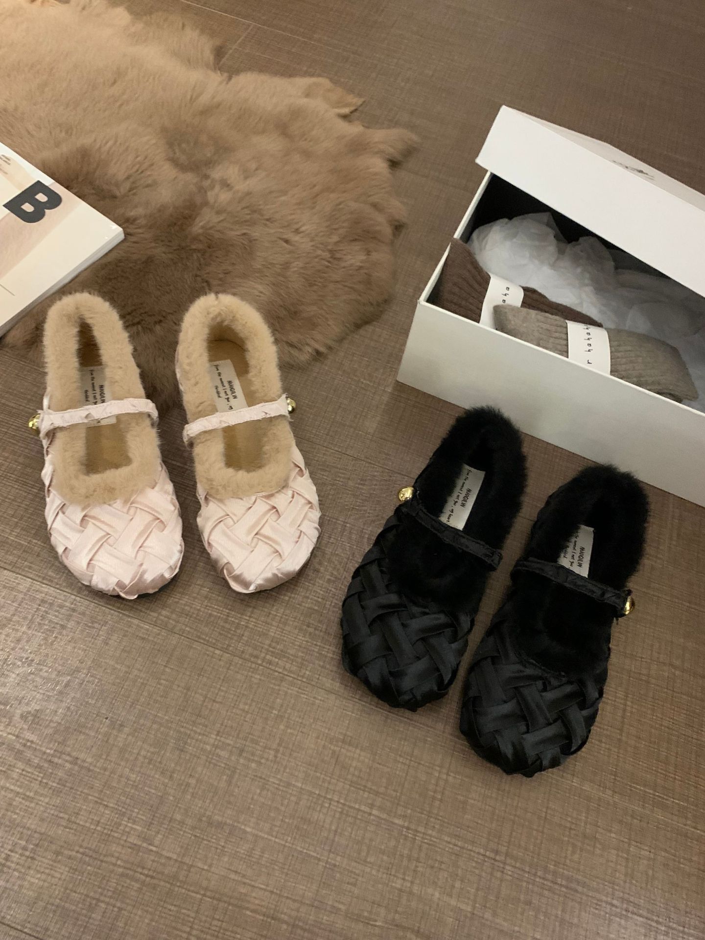 2023 새로운 가을과 겨울 두꺼운 바닥 라운드 헤드 마오 마오 기모 단어 Doudou 부드러운 바닥 여성 신발 스커트와 밤 바람