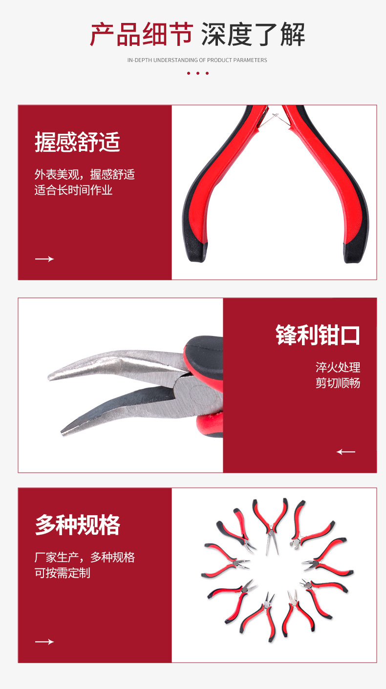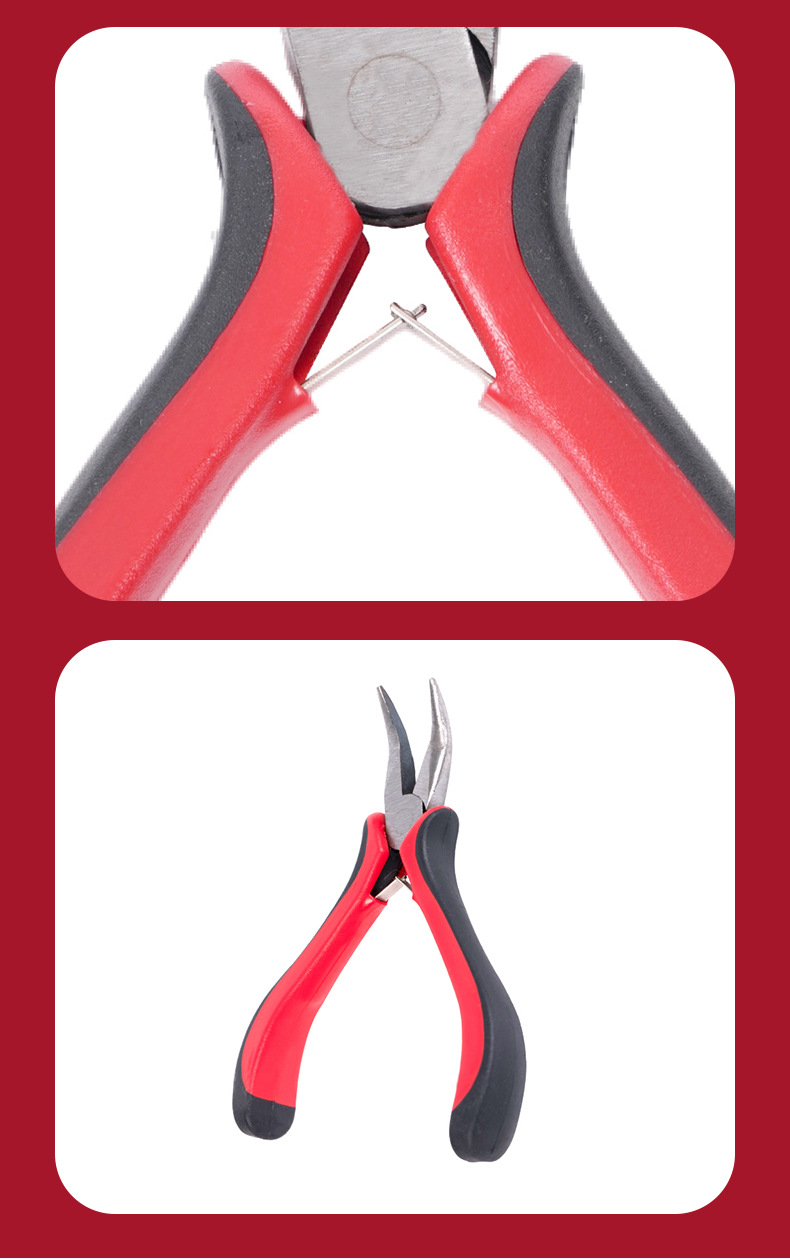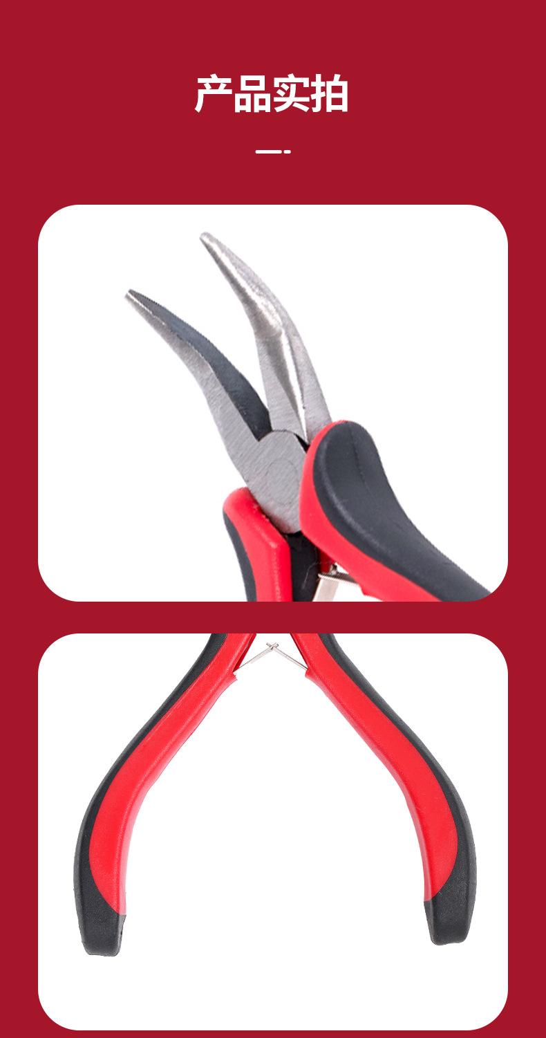 빨간색과 검은 색 손잡이 곡선 코 펜치 보석 도구 이빨없는 칼날 4.5 인치 탄소강 펜치 다기능 펜치 도구스토어 가기
