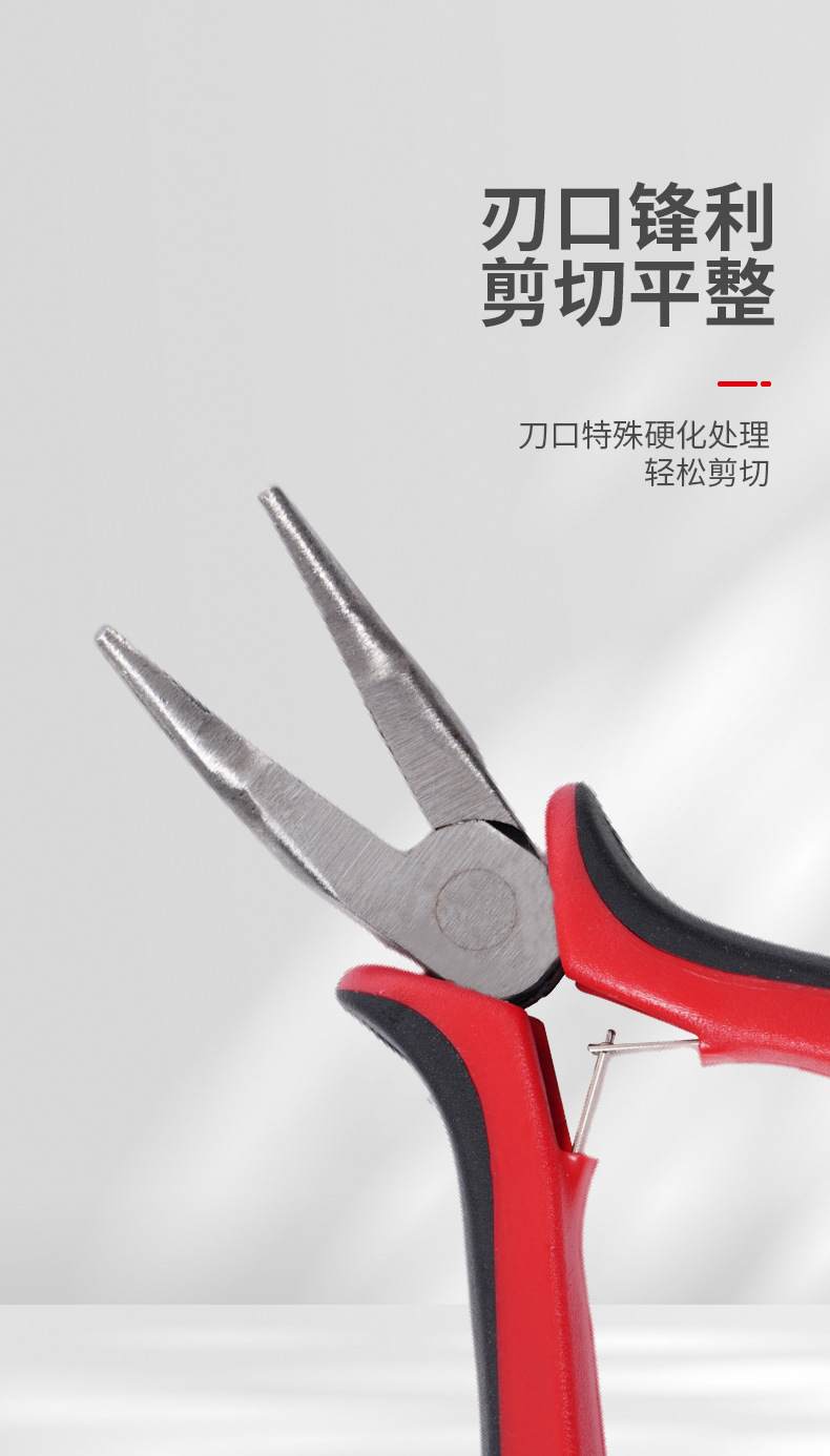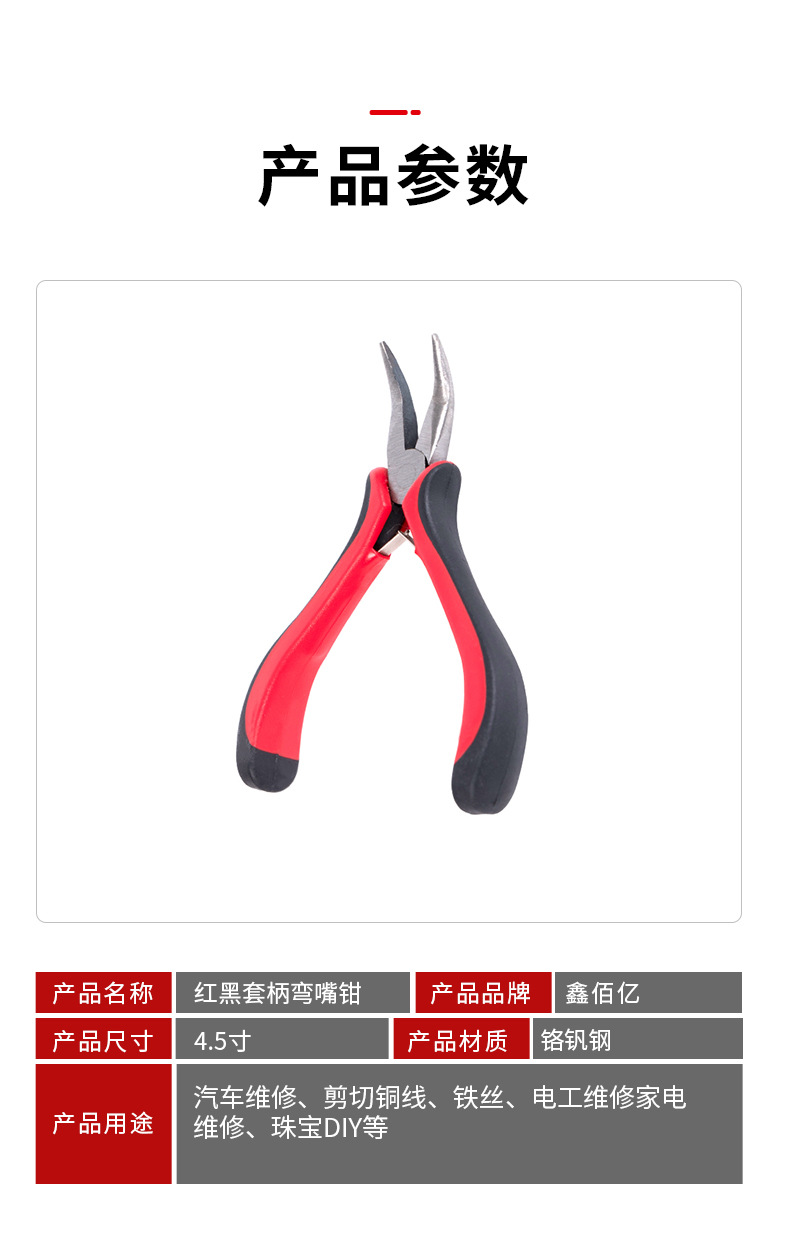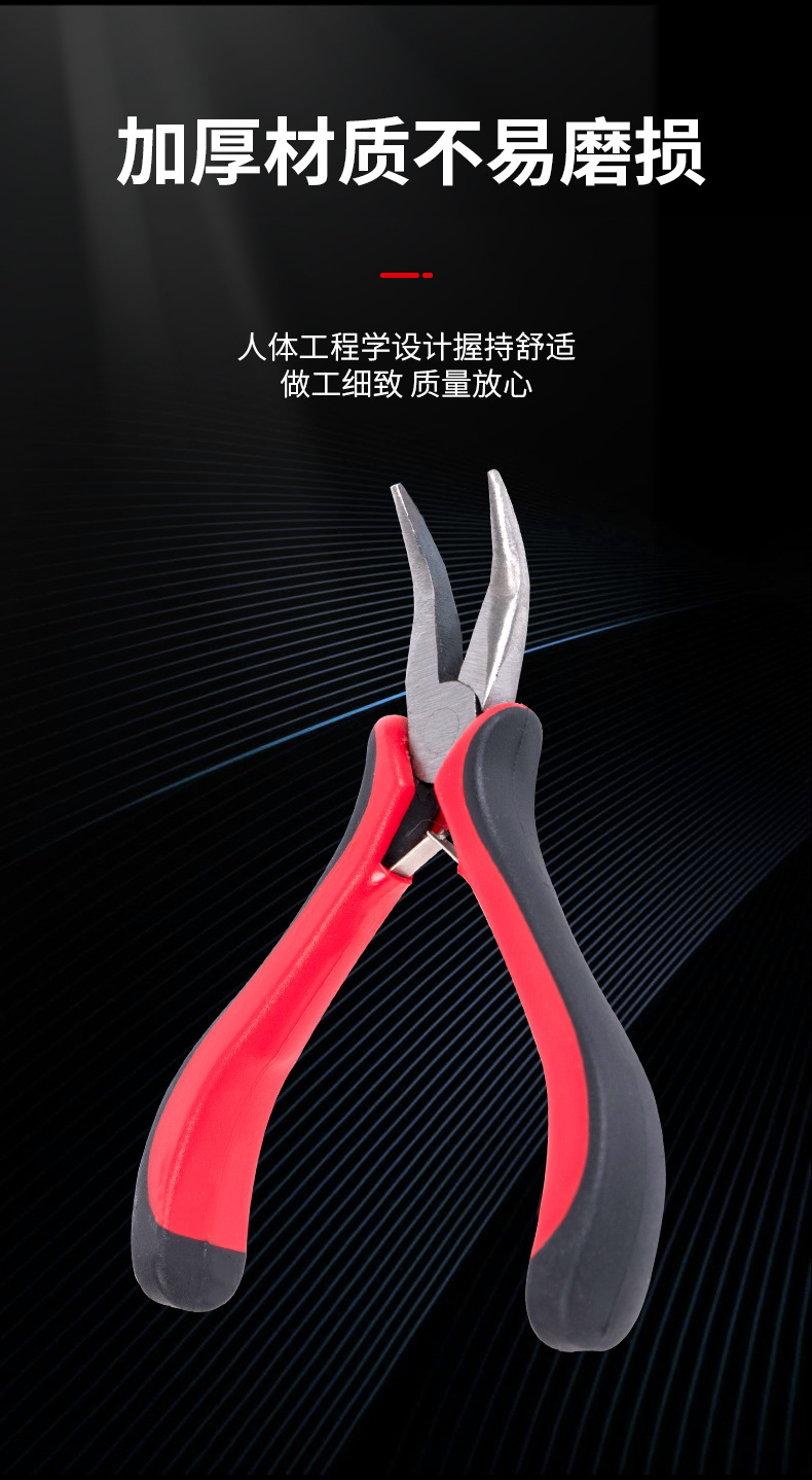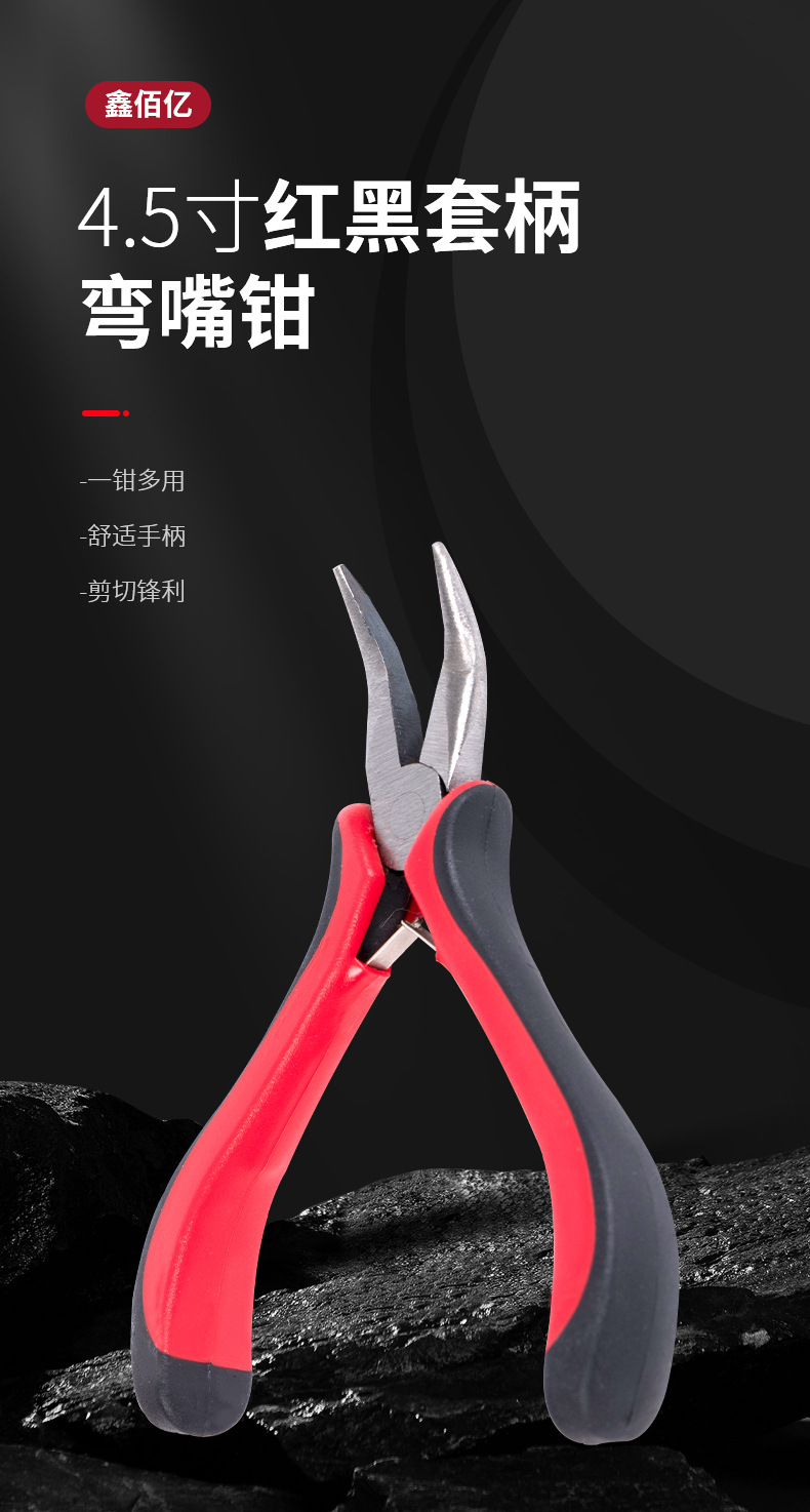 빨간색과 검은 색 손잡이 곡선 코 펜치 보석 도구 이빨없는 칼날 4.5 인치 탄소강 펜치 다기능 펜치 도구