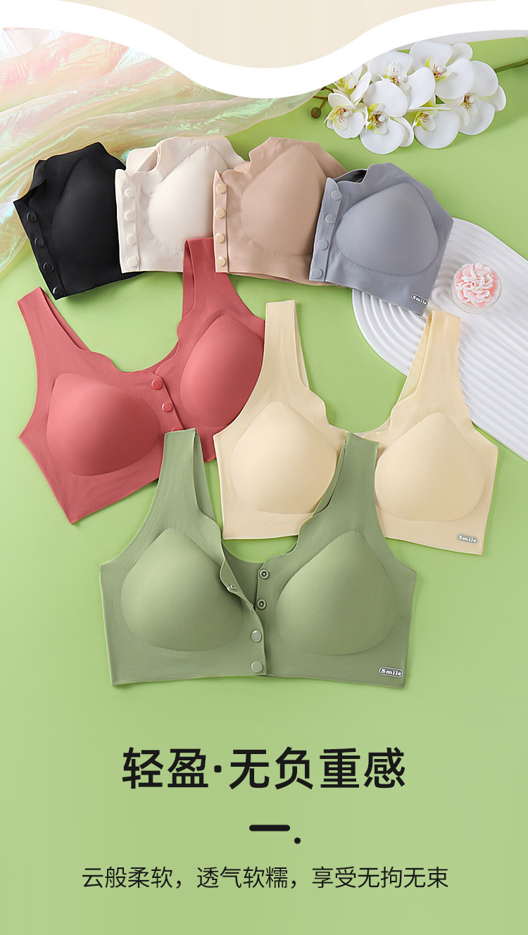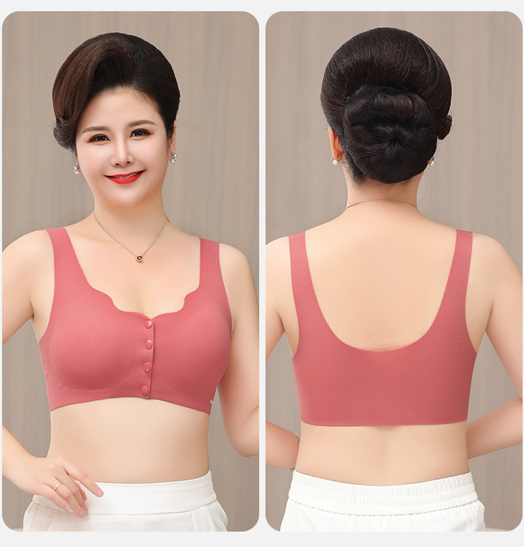 반 고정 컵 중년 및 노인 속옷 여성 원활한 얇은 전면 버클 플러스 사이즈 튜브 탑 어머니의 조끼 원피스 텍스트 브래지어스토어 가기
