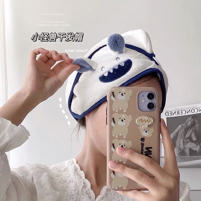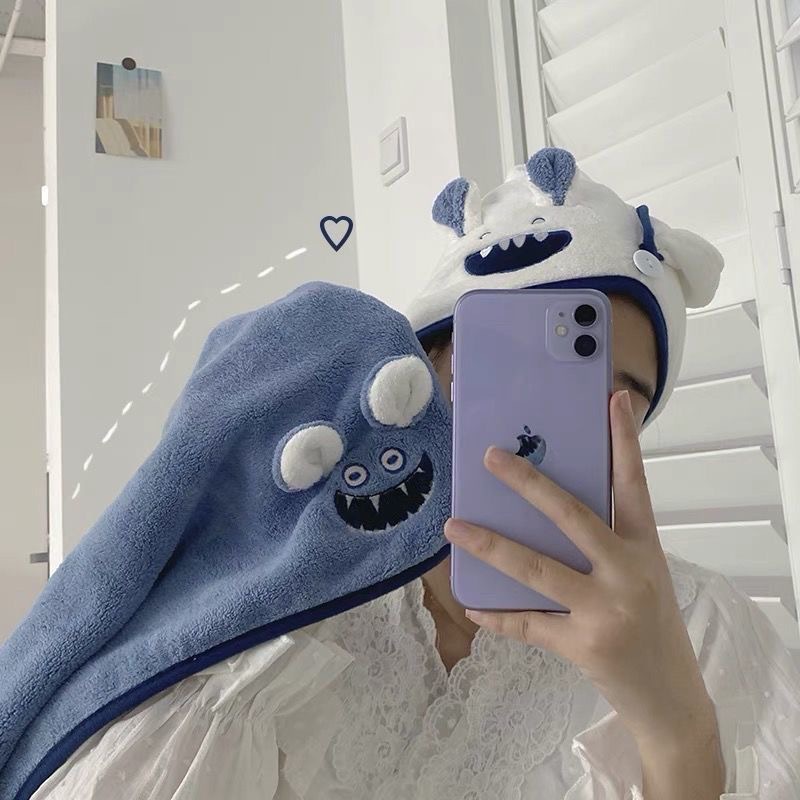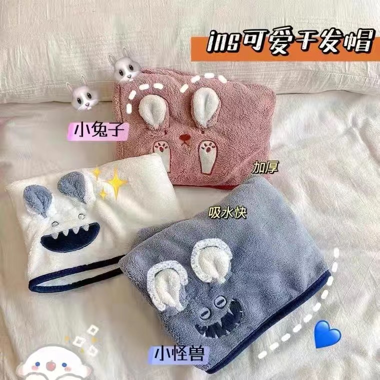 한국 괴물 머리 모자 산호 양털 샤워 모자 만화 귀여운 슈퍼 흡수 부드러운 천 보푸라기 도매