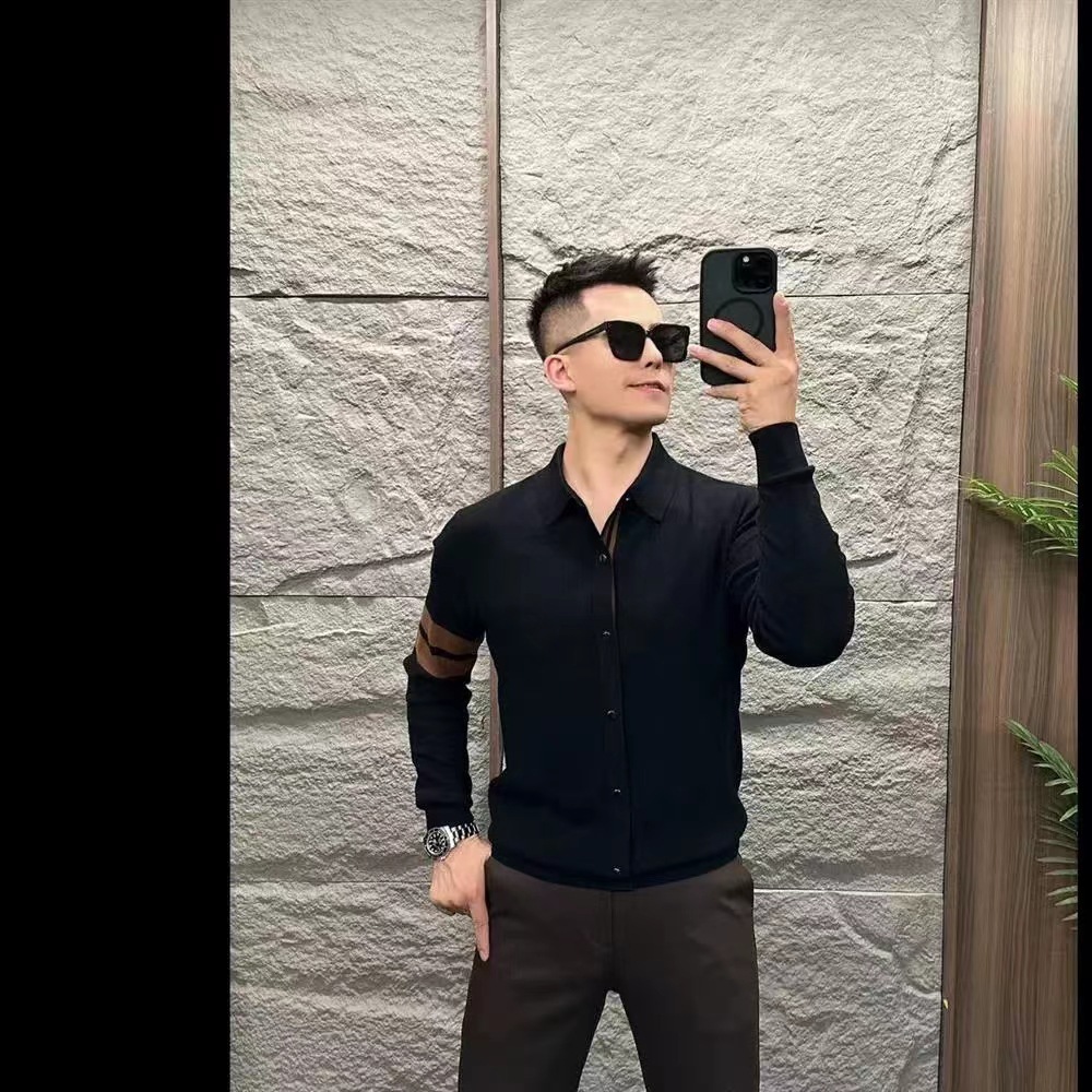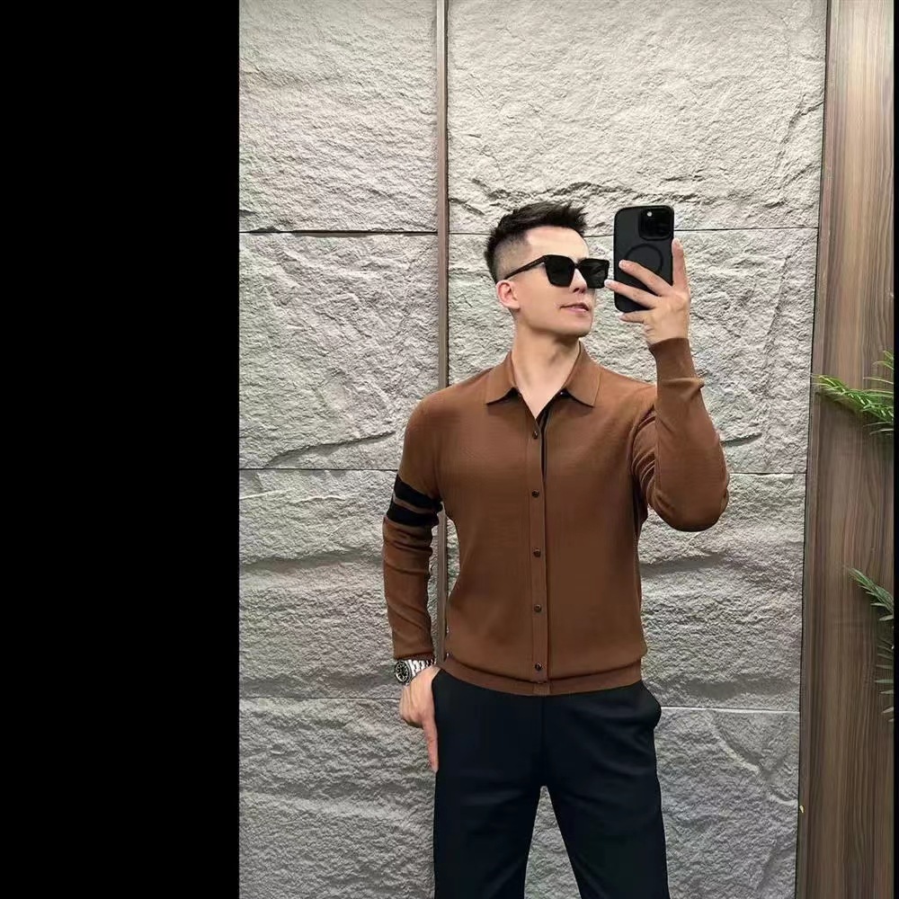 남성용 긴팔 스웨터 가짜 재킷 슬림핏 라펠 울 셔츠 스트레치 캐주얼 스웨터 가을과 겨울 패션 탑스토어 가기
