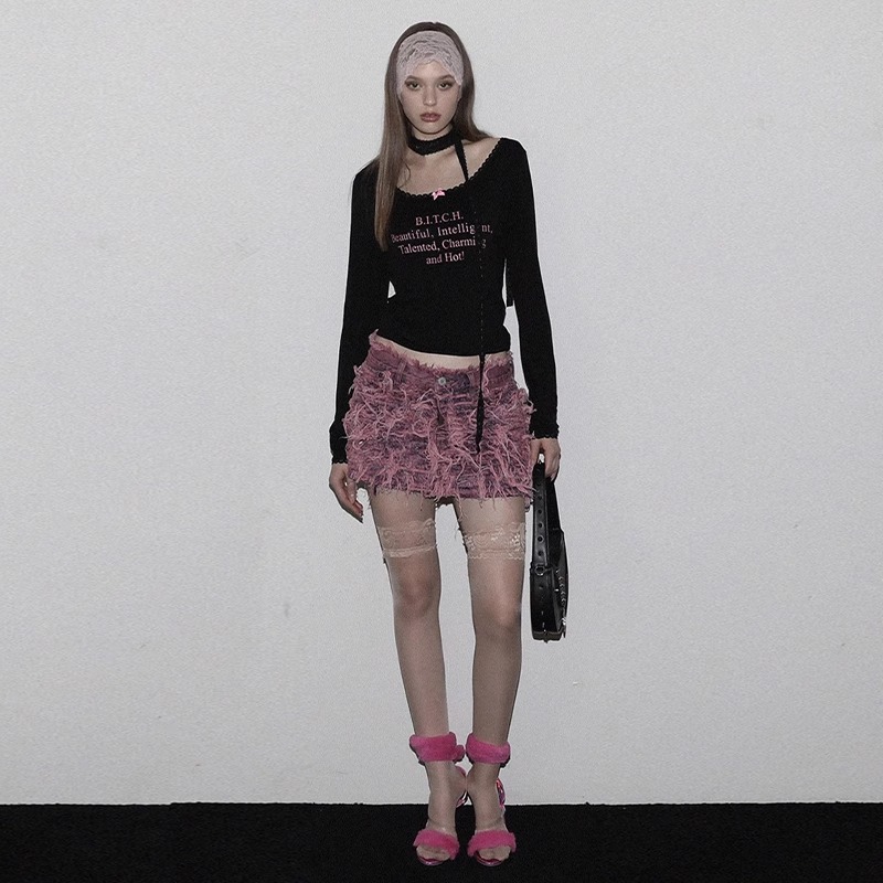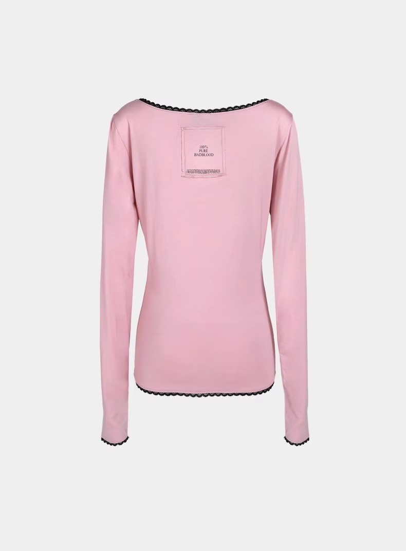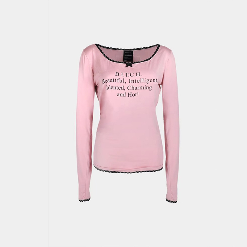 한국 배드블러드 BCAC 시리즈 레이스 테두리 티셔츠 여성용 프린트 아메리칸 스타일 슬림핏 긴팔 이너웨어 트렌디스토어 가기