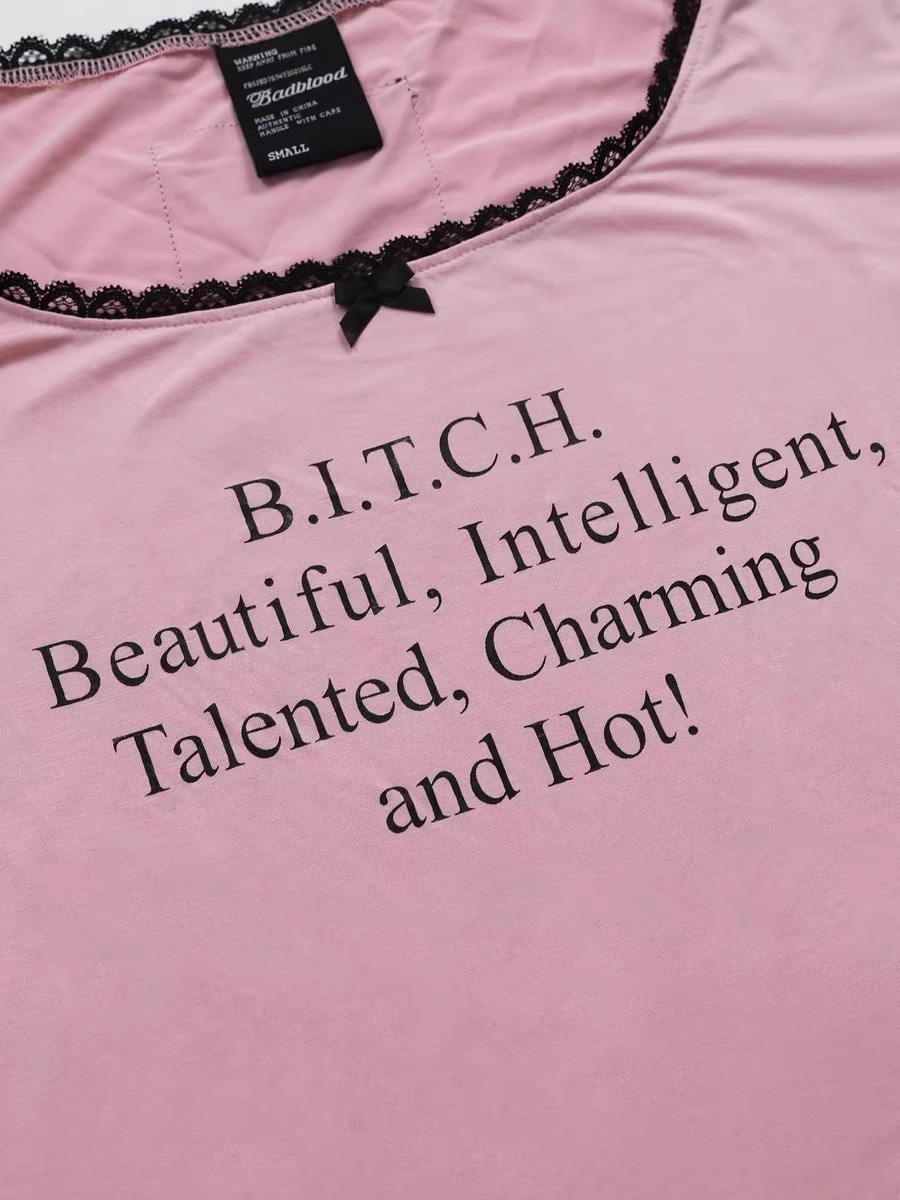 한국 배드블러드 BCAC 시리즈 레이스 테두리 티셔츠 여성용 프린트 아메리칸 스타일 슬림핏 긴팔 이너웨어 트렌디