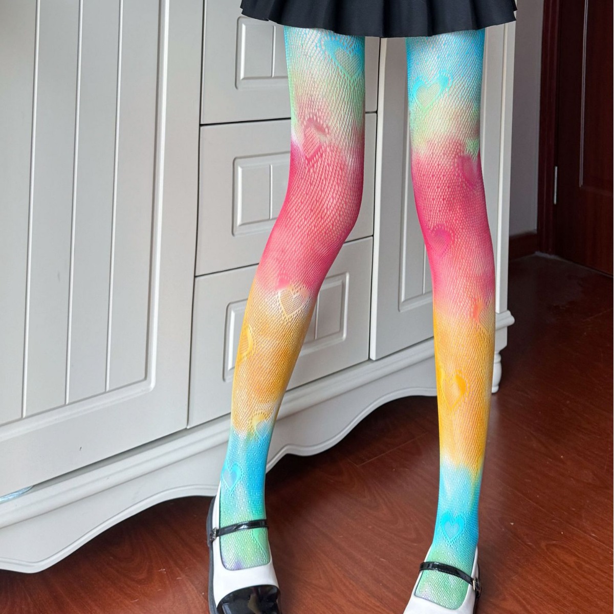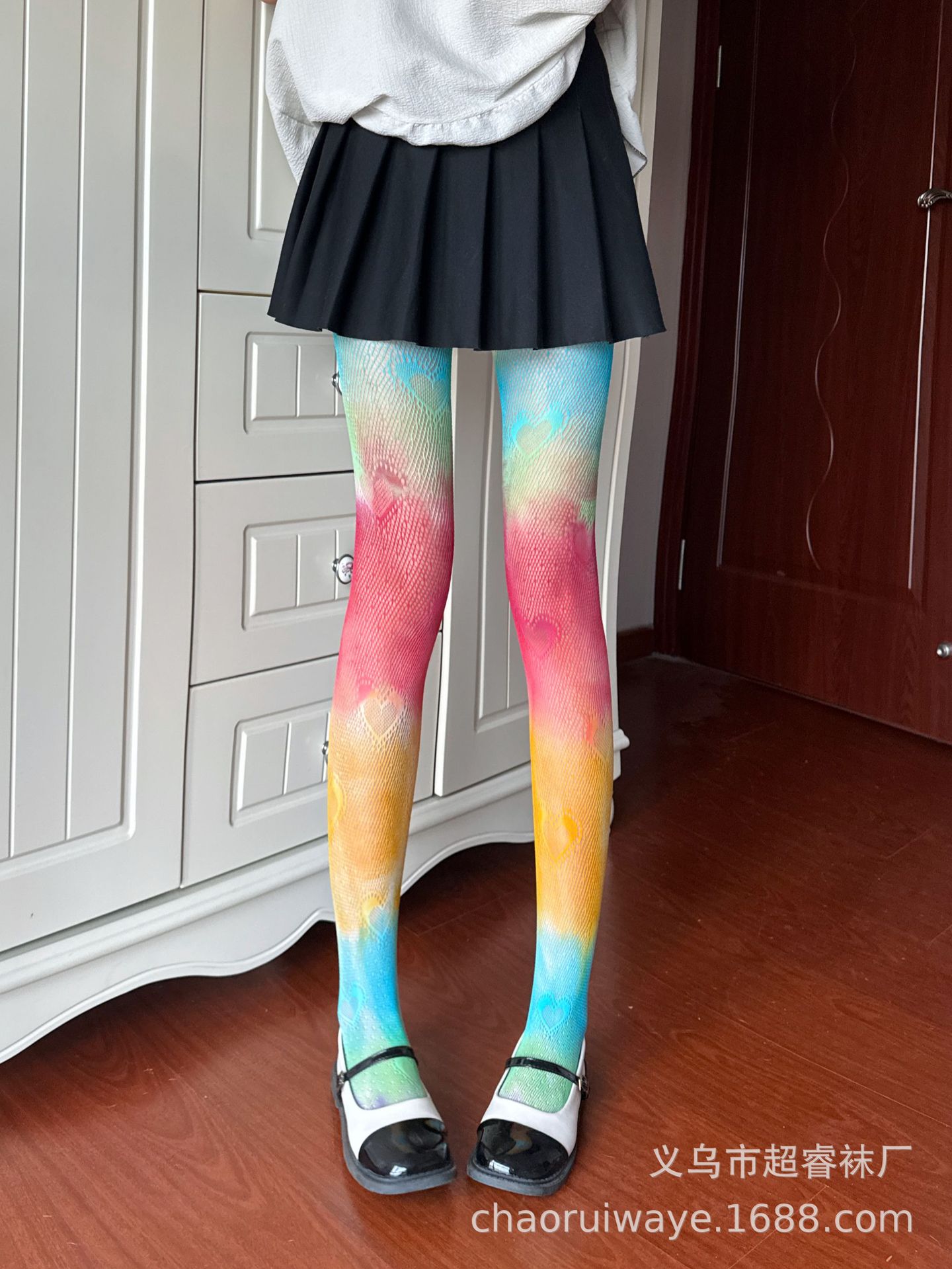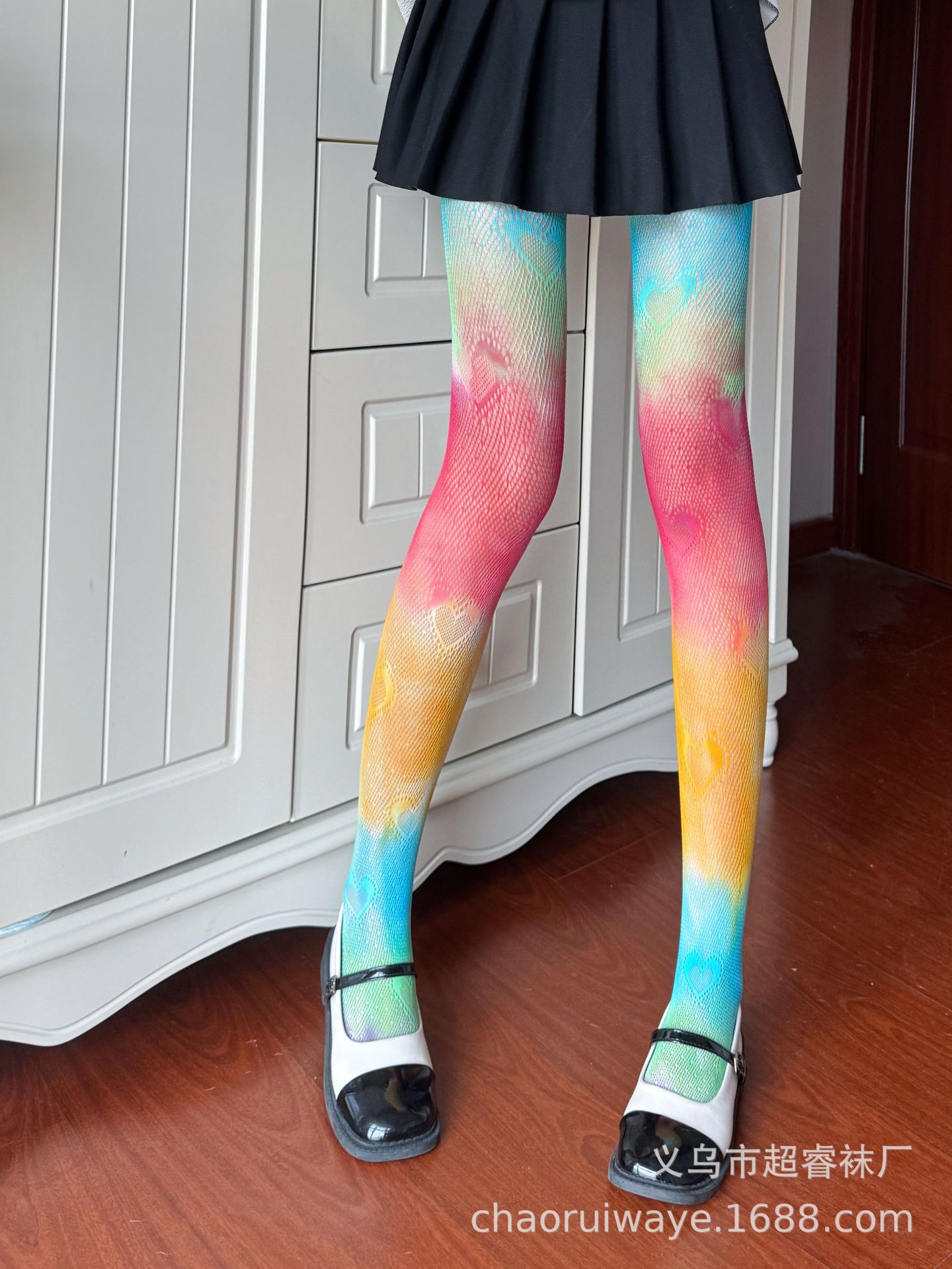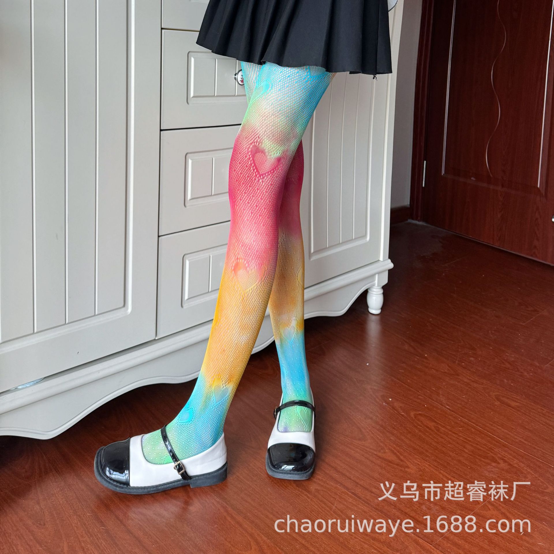 유럽과 미국 무지개 그라데이션 망사 스타킹 사랑 중공 섹시 스타킹 여성의 얇은 개인 스트라이프 바닥 팬티 스타킹