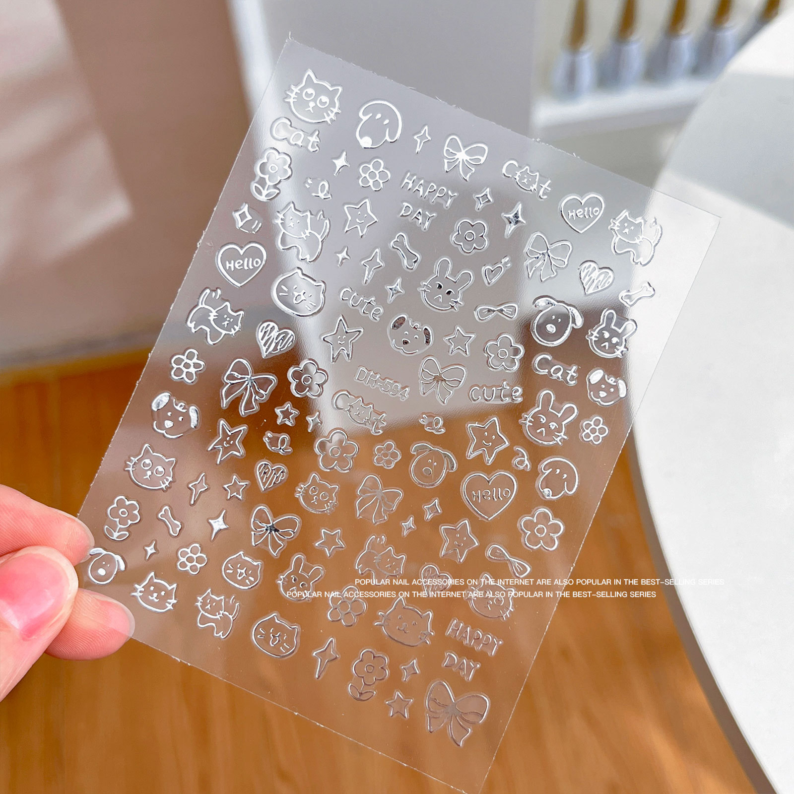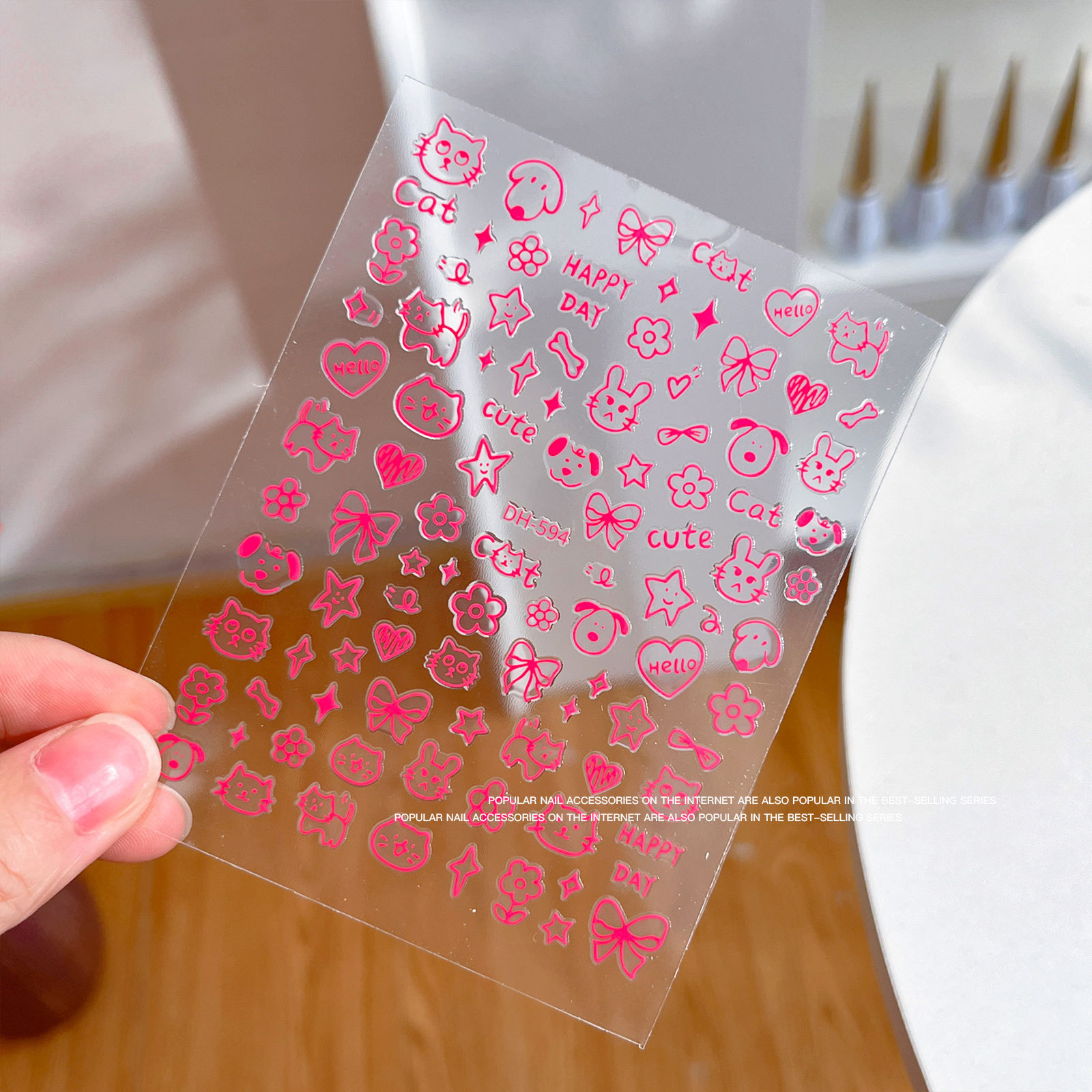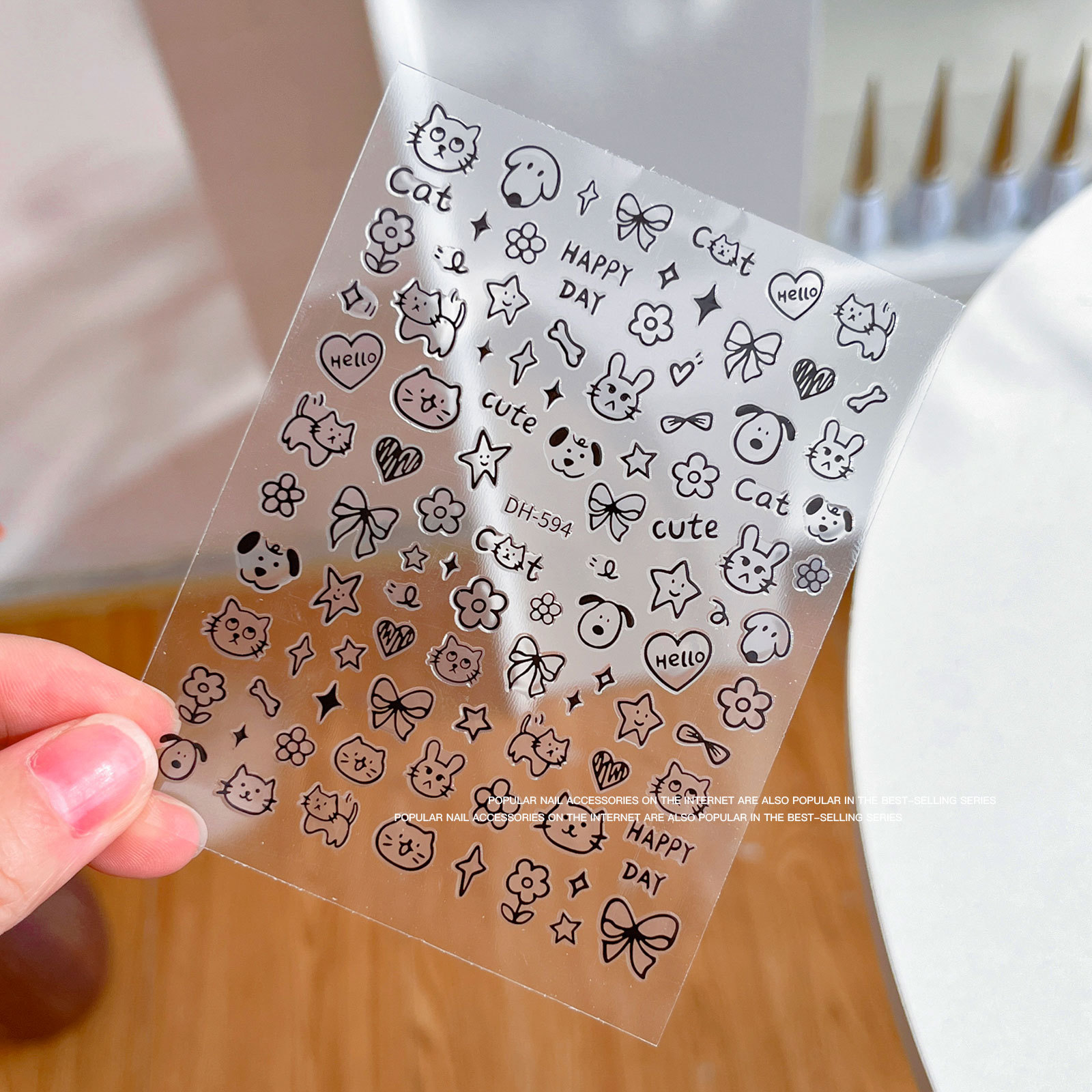 인기있는 낙서 네일 아트 스티커 얇은 터프 백 접착제 활 새끼 고양이 개 곰 낙서 네일 스티커 도매
