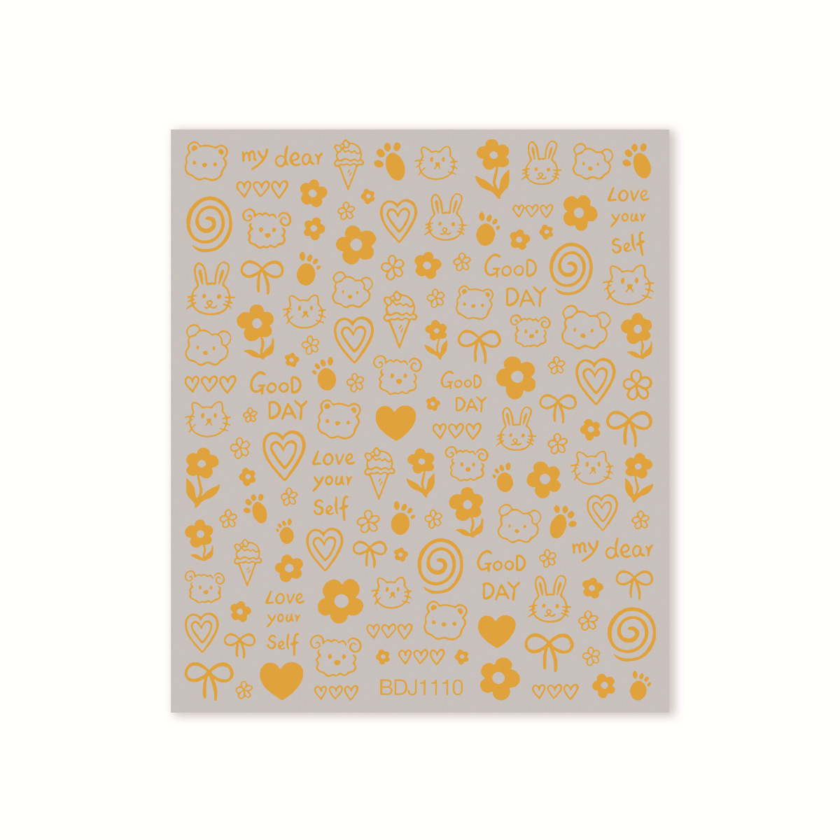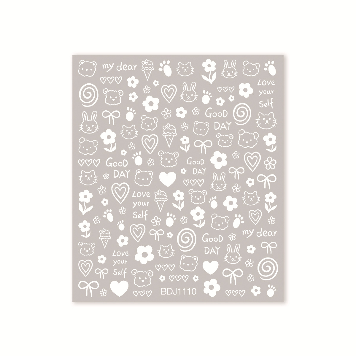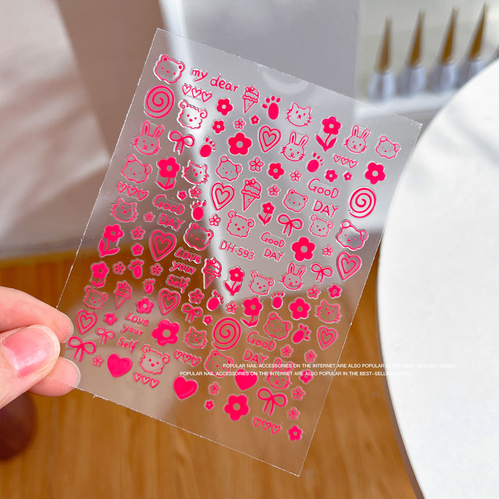 인기있는 낙서 네일 아트 스티커 얇은 터프 백 접착제 활 새끼 고양이 개 곰 낙서 네일 스티커 도매