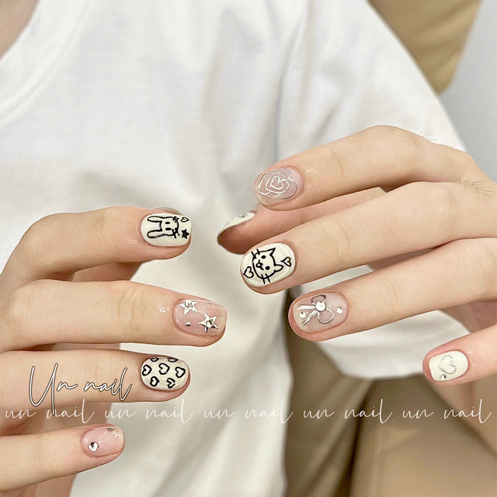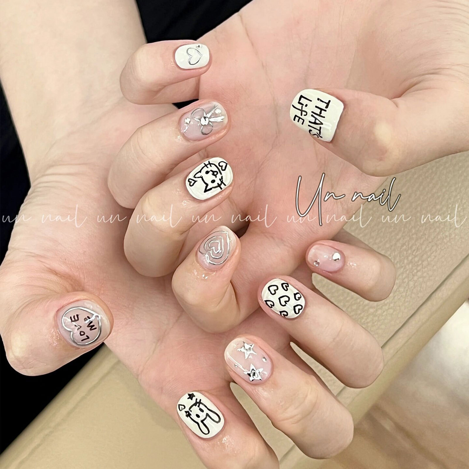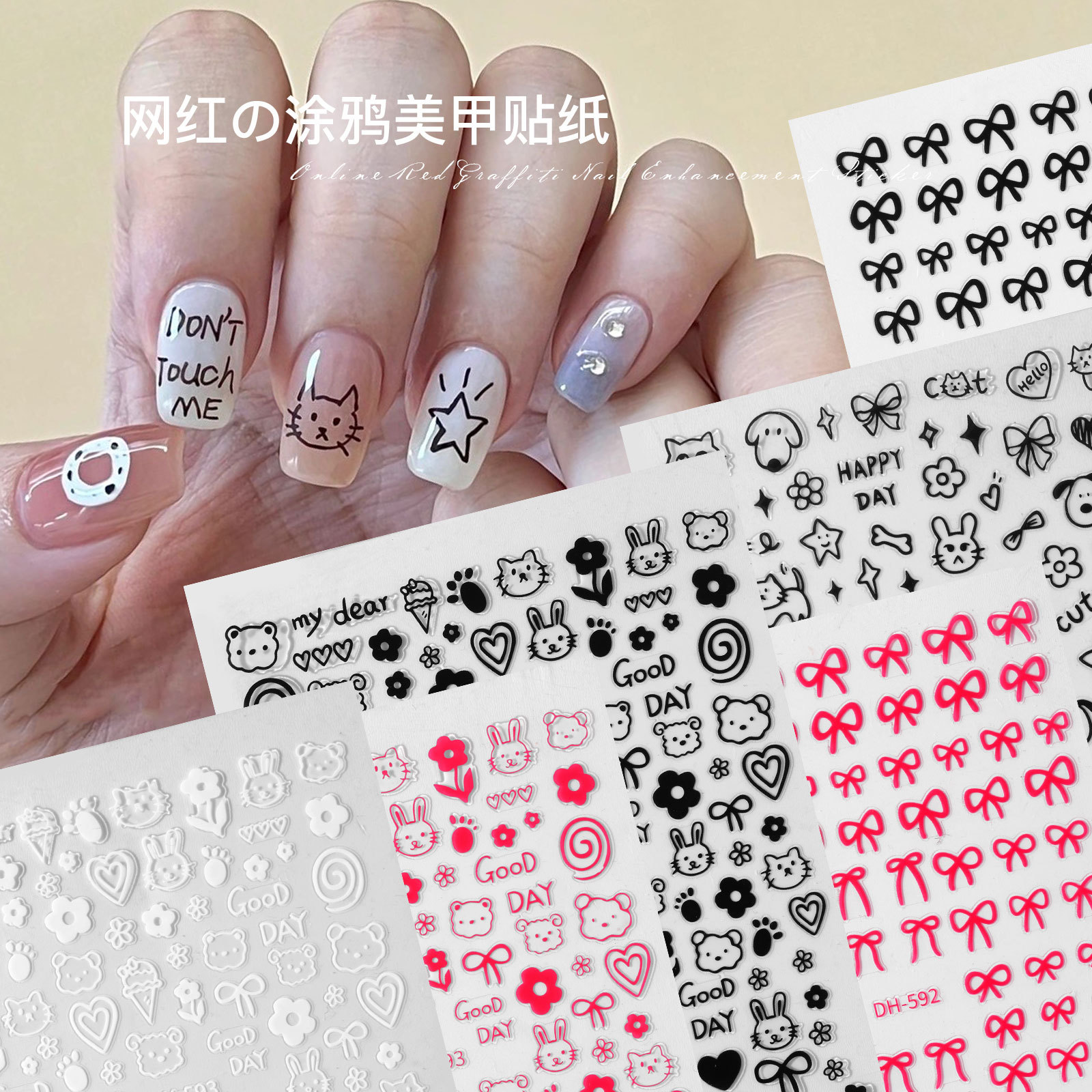 인기있는 낙서 네일 아트 스티커 얇은 터프 백 접착제 활 새끼 고양이 개 곰 낙서 네일 스티커 도매스토어 가기