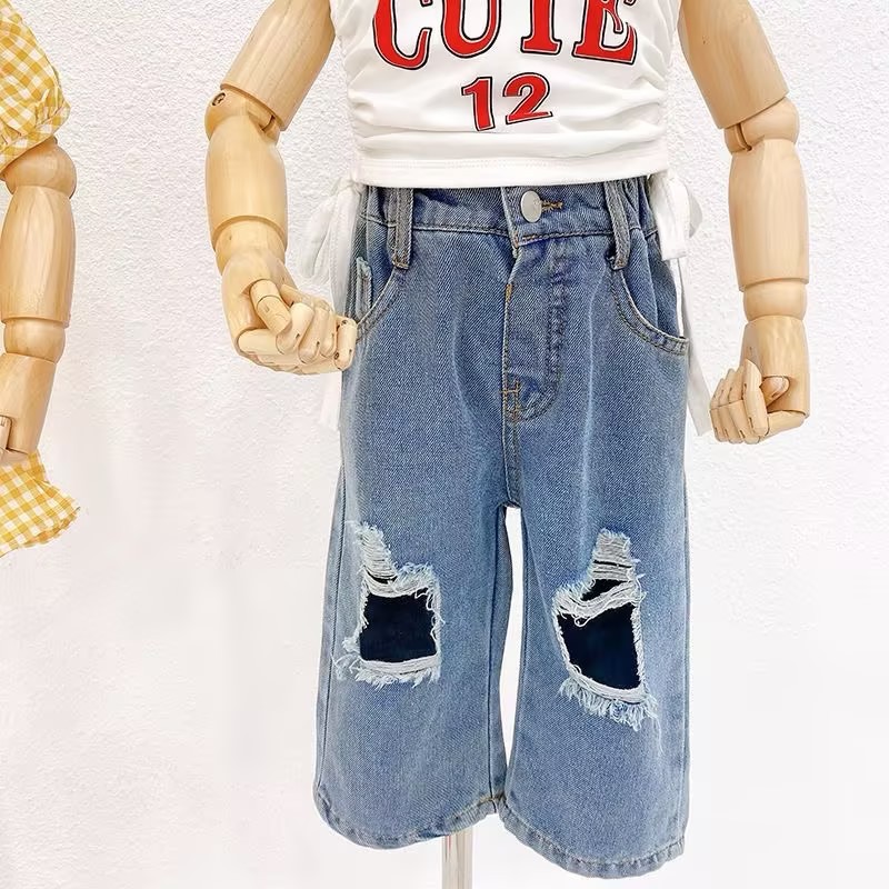 MDD 여자 가을 바지 2024 새로운 아기 느슨한 넓은 다리 바지 봄과 가을 스타일 어린이 찢어진 청바지스토어 가기