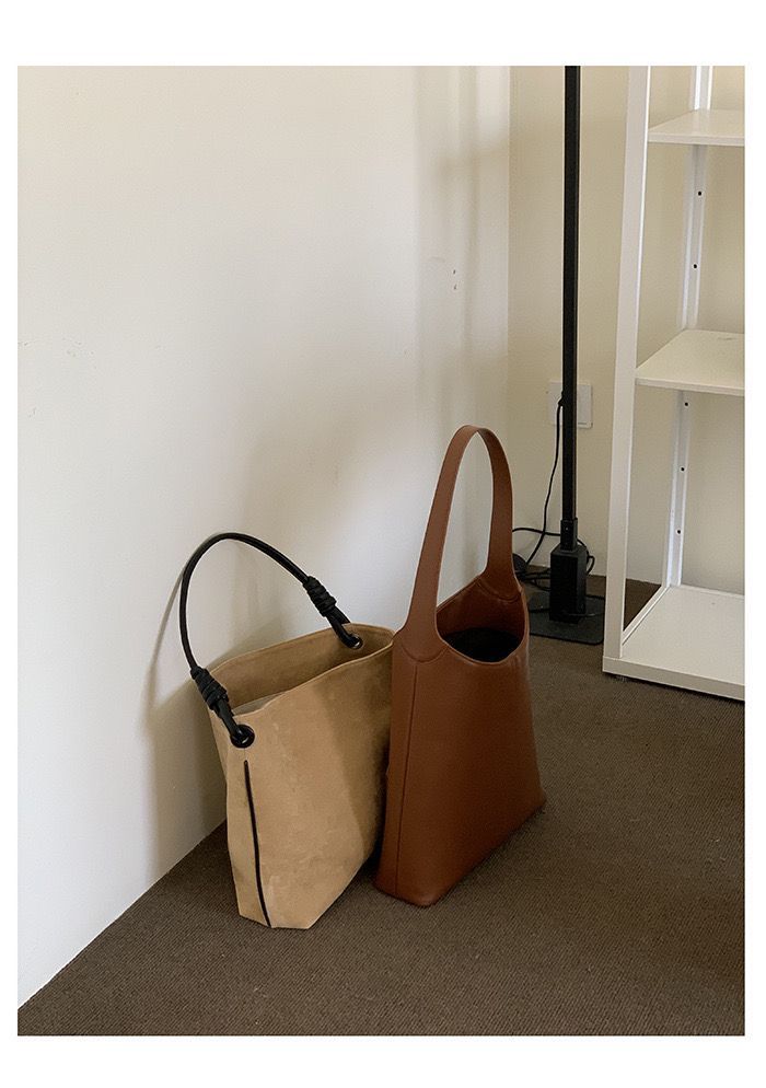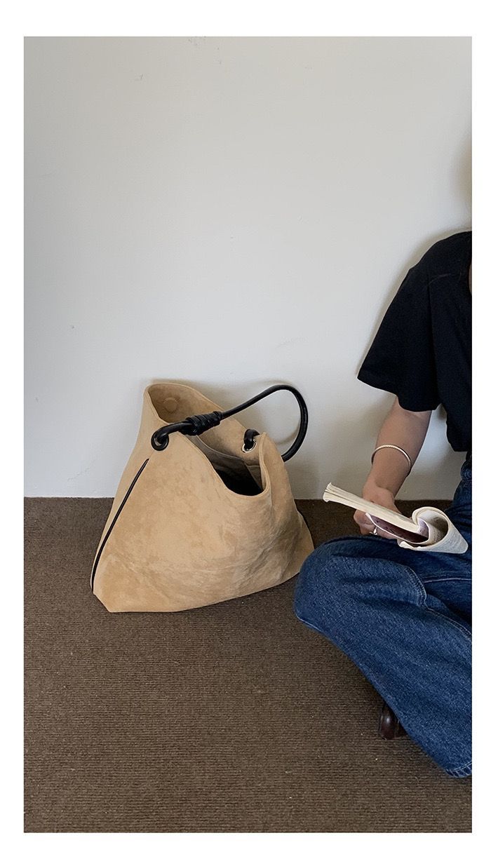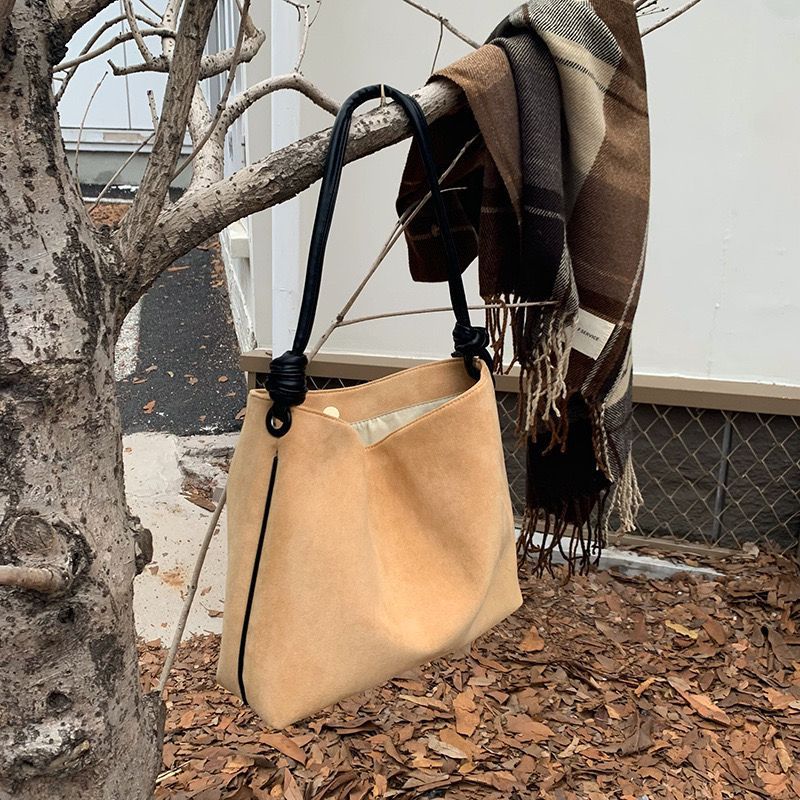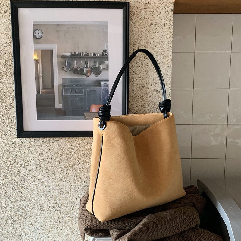 화이텀 한국판 가을 겨울 스웨이드 배색 숄더 버킷백 대용량 핸드백 크로스백 여성용 심플하고 다용도스토어 가기