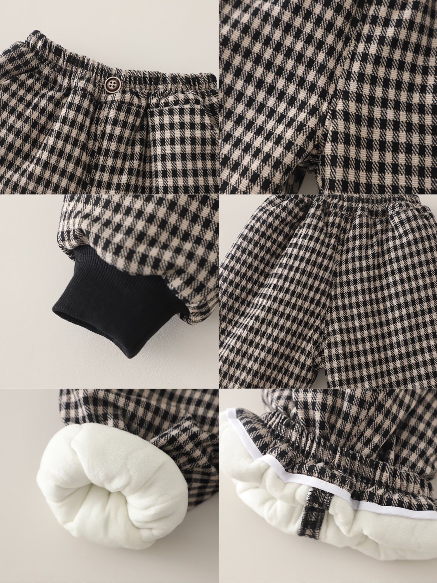 무료 배송 Yikids 겨울 새로운 입체 곰 인형 기모 두꺼운 면 바지 남성용 및 아기 캐주얼 하나 겨울