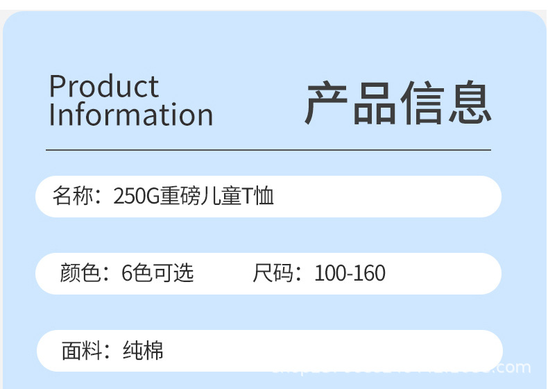 250g 무거운 어린이 티셔츠 둥근 목 Molandi 티셔츠 아동베이스 짧은 소매 둥근 목 반소매스토어 가기