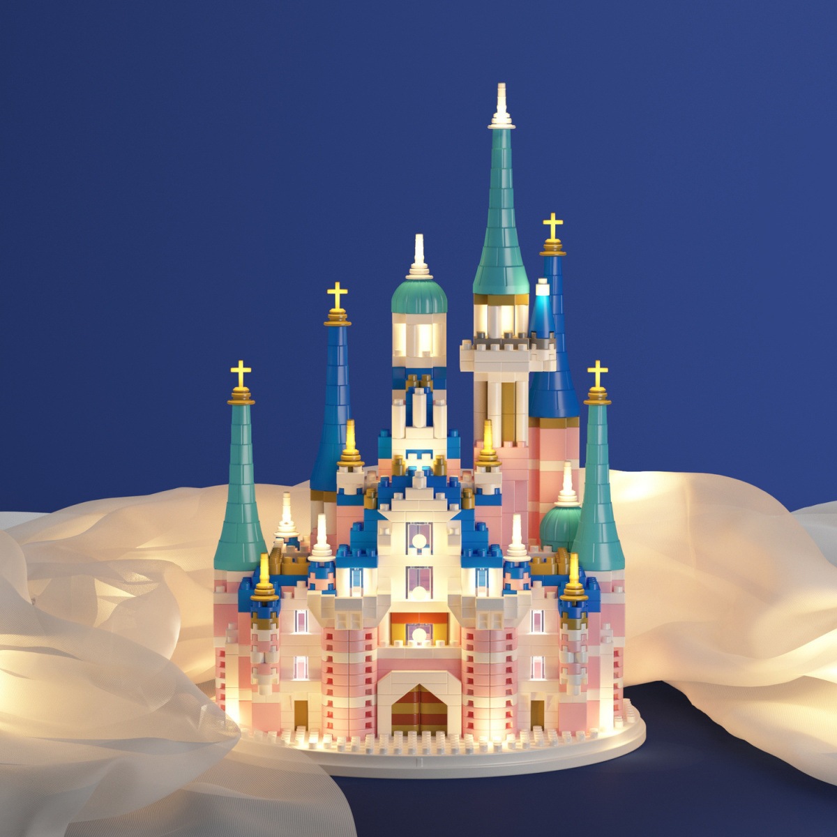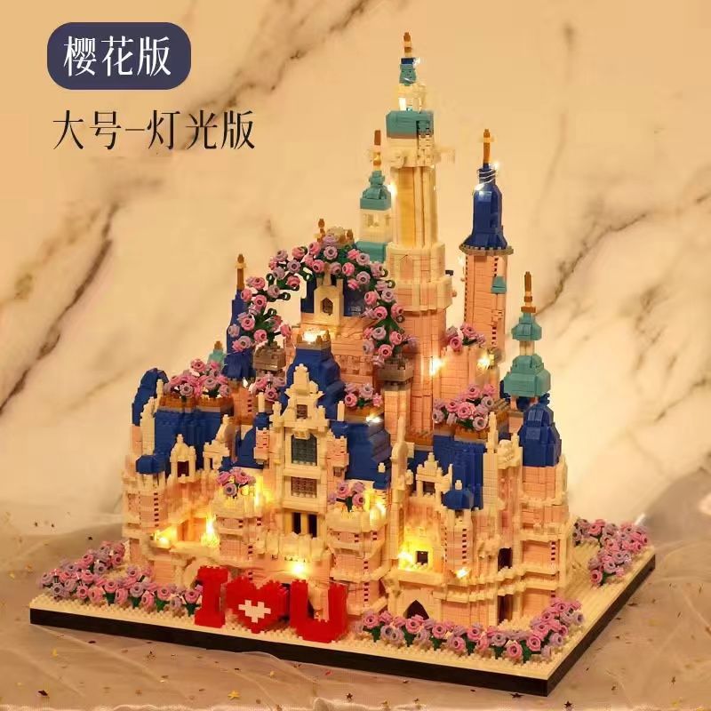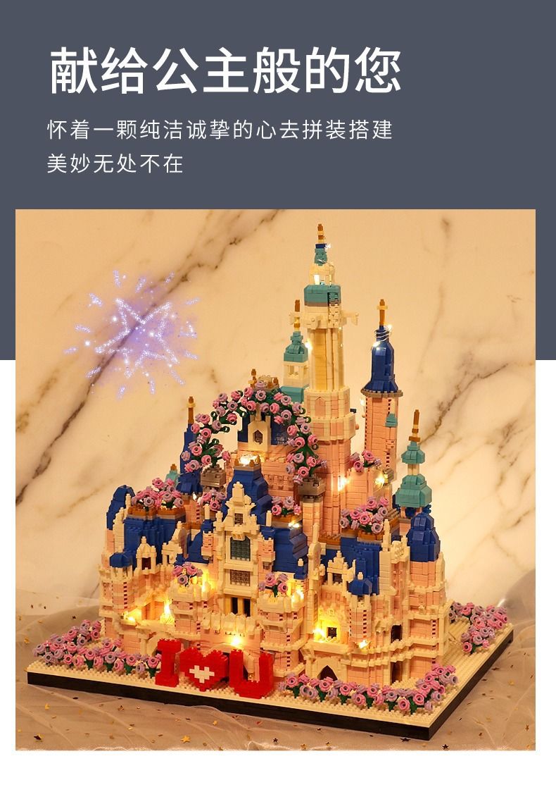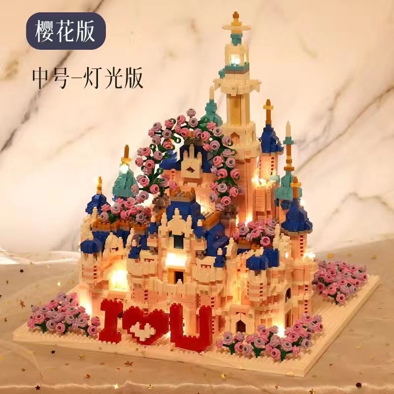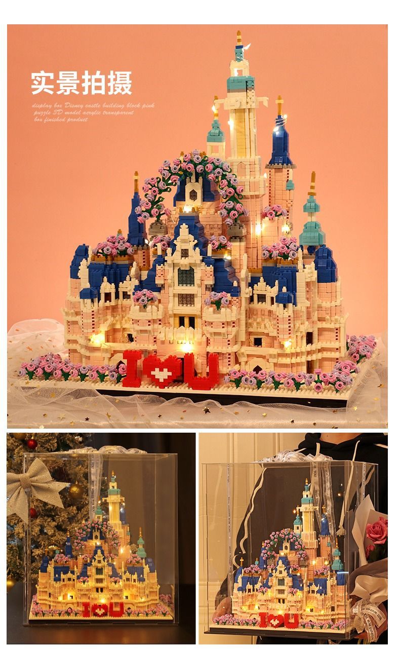 사이버 축하 나이트 라이트 핑크 디 리니 가든 공주 드림 캐슬 모델 어린 소녀 조립 건물 블록 장난감스토어 가기