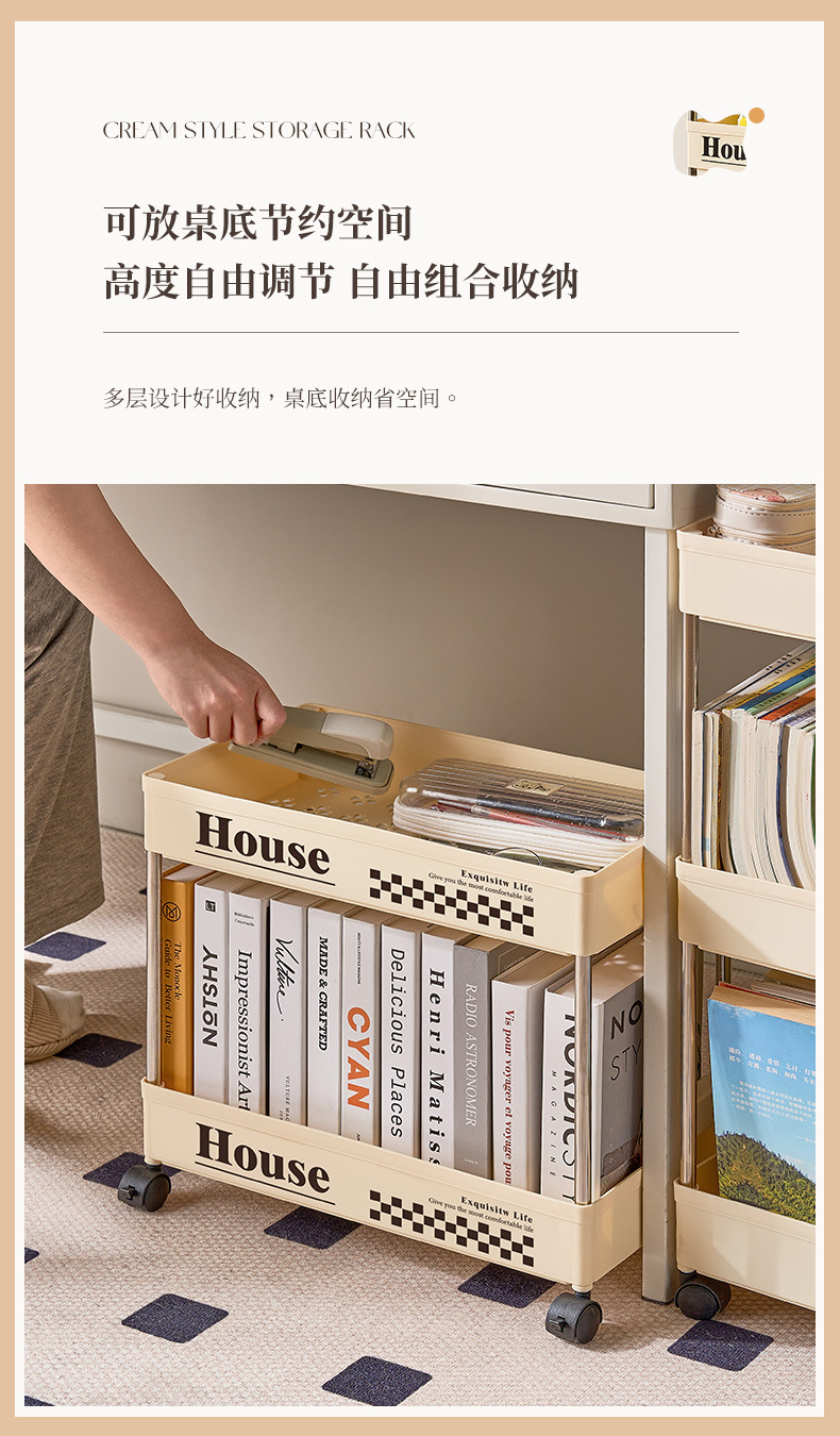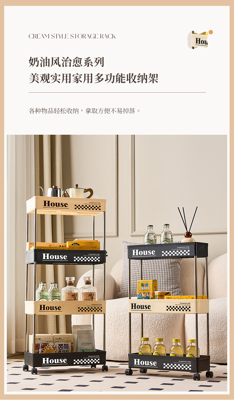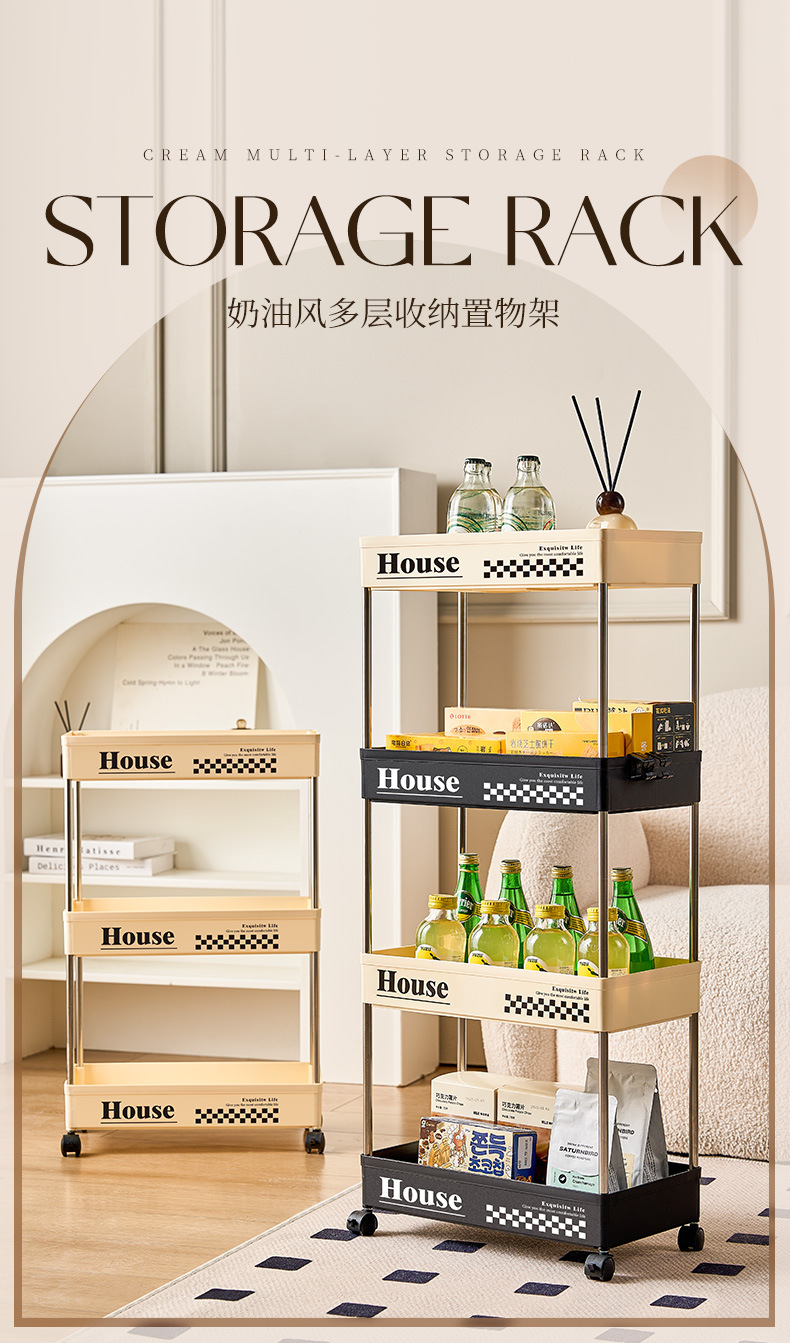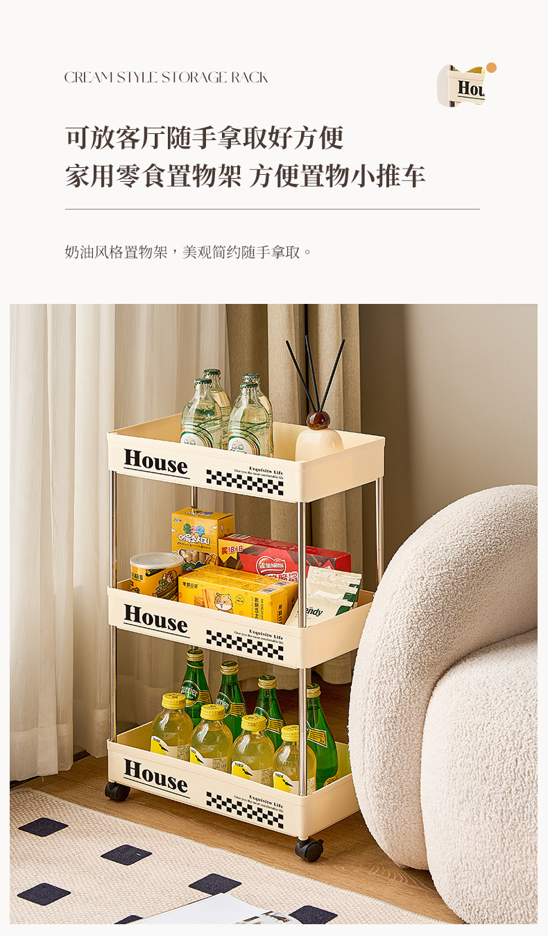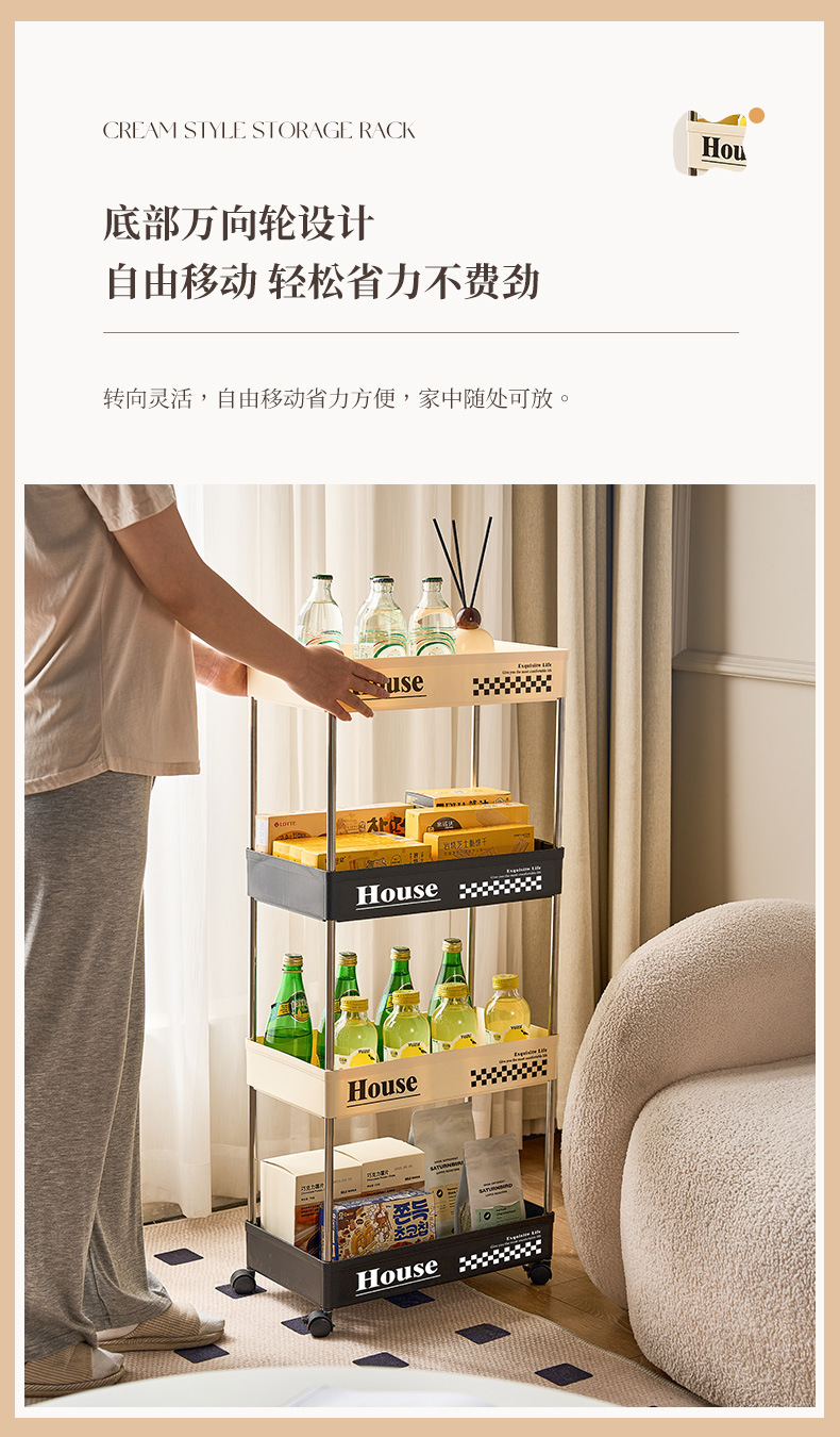 스낵 트롤리 스토리지 랙 플로어 스탠딩 휠 이동식 가정용 거실, 침실, 기숙사, 욕실 다층 스토리지 랙