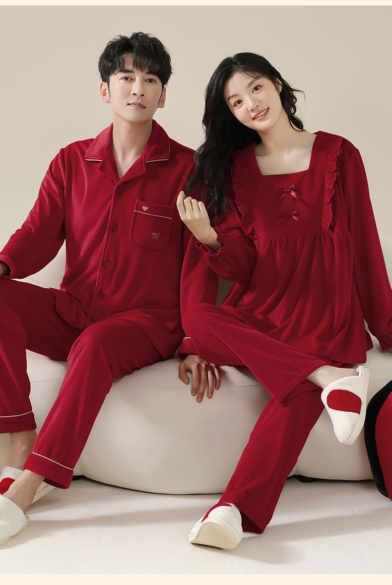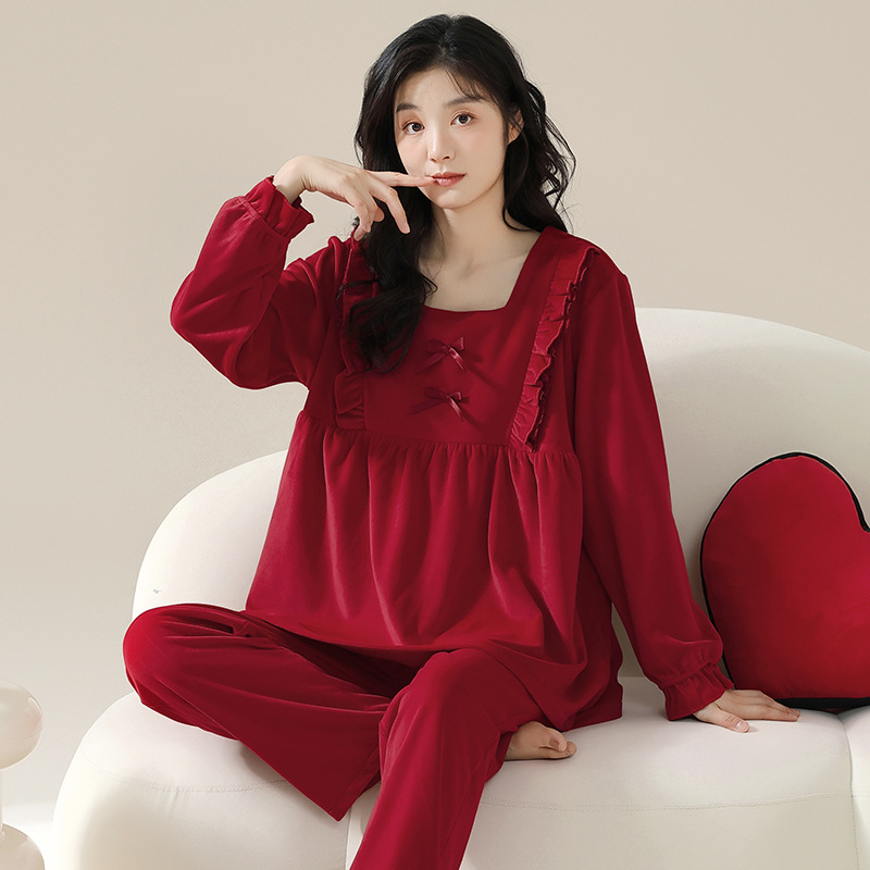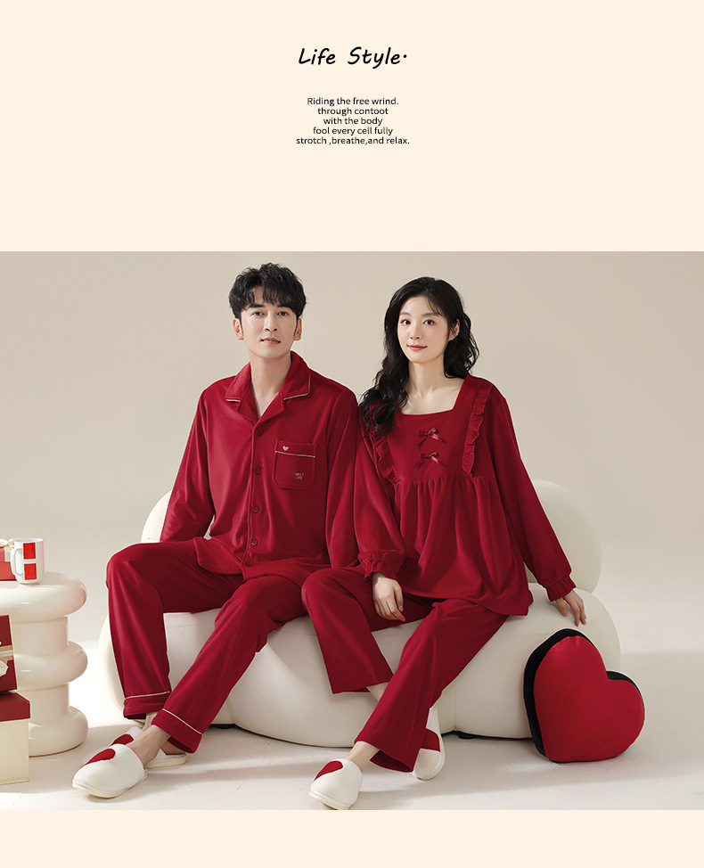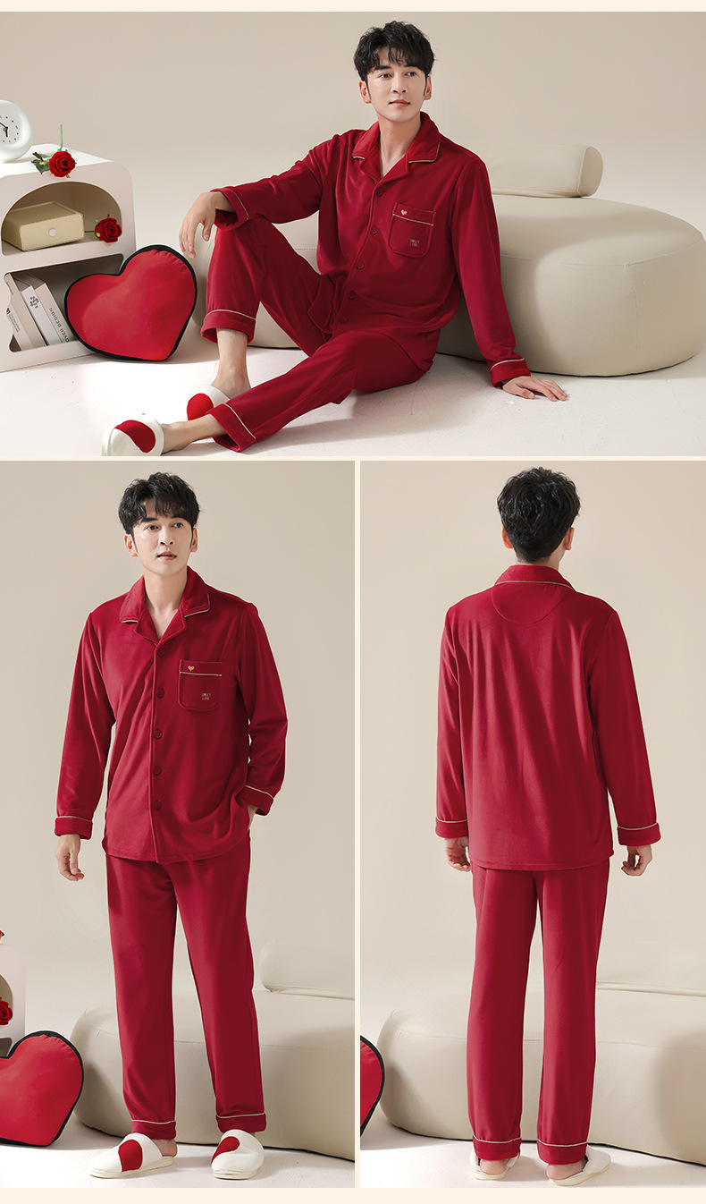 겨울 섬 벨벳 커플 잠옷 옷깃 남자의 사각 칼라 여자의 아웃웨어 산호 벨벳 가정복 세트스토어 가기