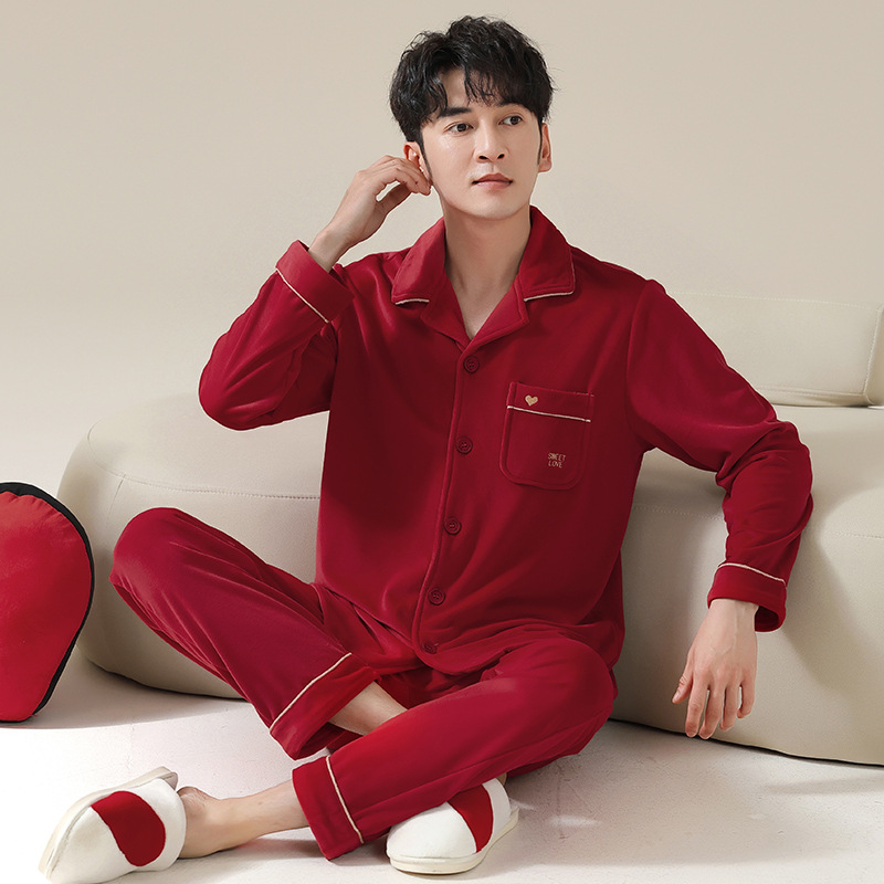 겨울 섬 벨벳 커플 잠옷 옷깃 남자의 사각 칼라 여자의 아웃웨어 산호 벨벳 가정복 세트