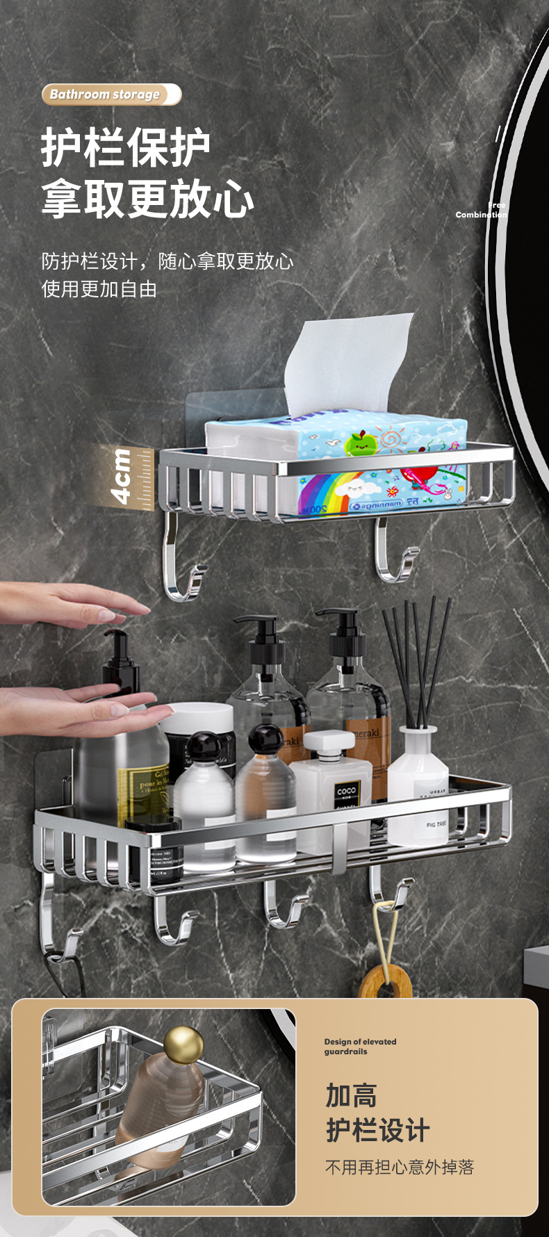 • 플랫 스트립 단층 비누 랙 + 벽 스티커 (박스)