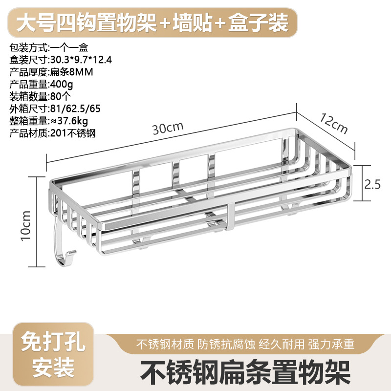 • 플랫 스트립 대형 4 후크 선반 + 벽 스티커 (박스)