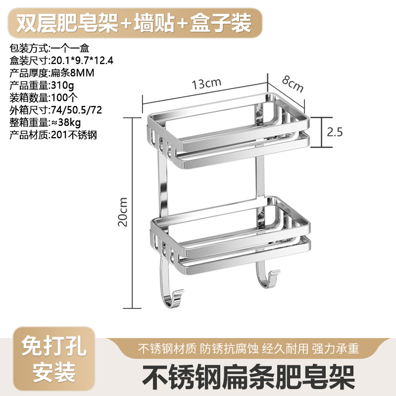 • 플랫 바 더블 비누 랙 + 벽 스티커 (박스)