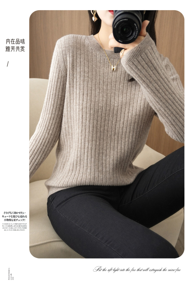 가을과 겨울 새로운 라운드 넥 스웨터 여성의 단점 이너베이스 셔츠 Styky 모든 매치 느슨한 울 니트 탑 봄스토어 가기