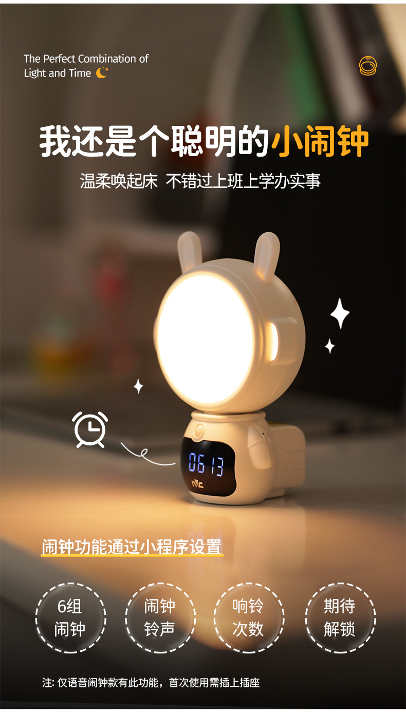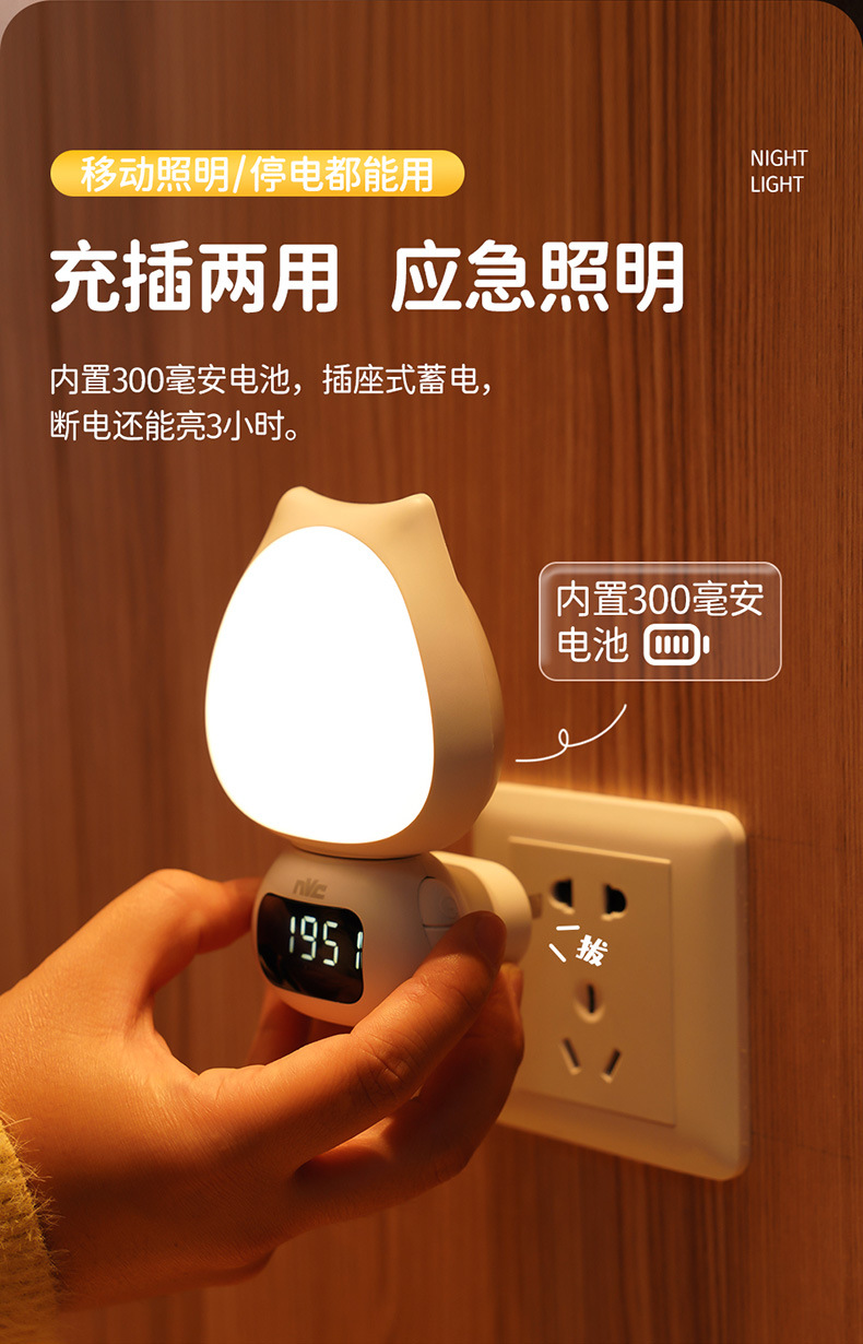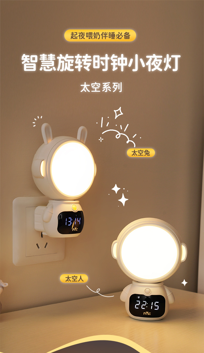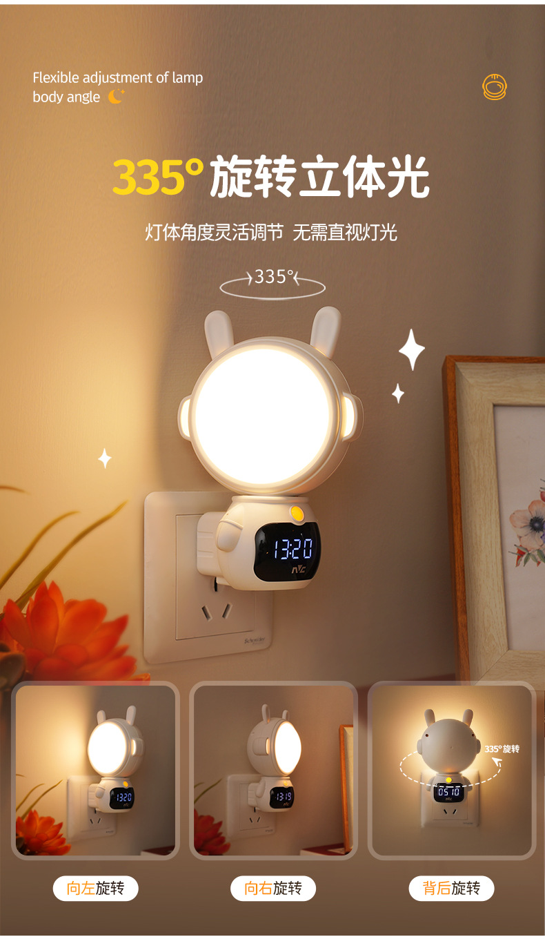 • Space Rabbit-고휘도 3색 음성/충전 및 플러그인 이중 목적 시계 야간 조명 LED2.4W