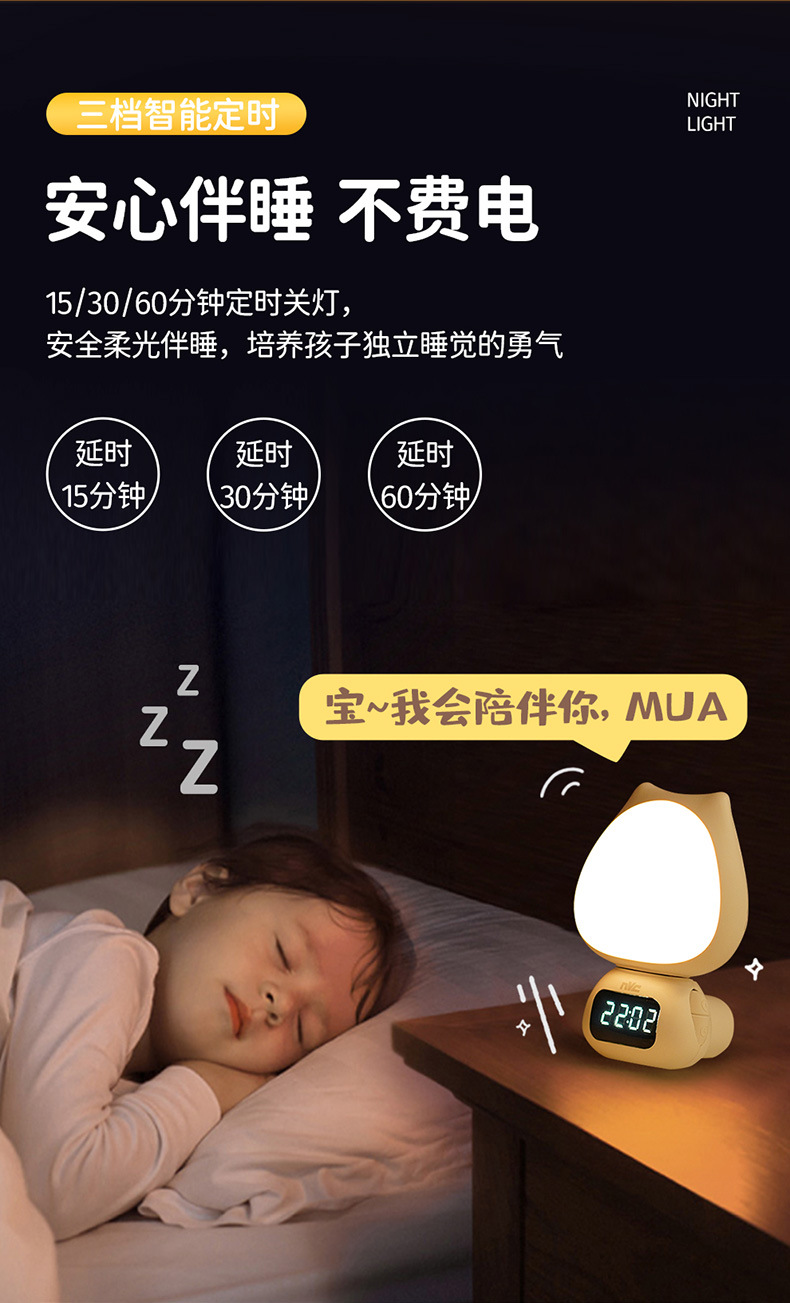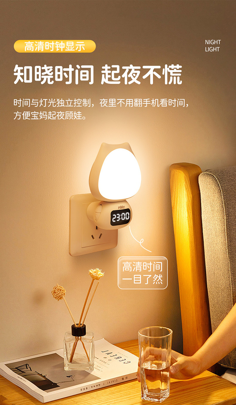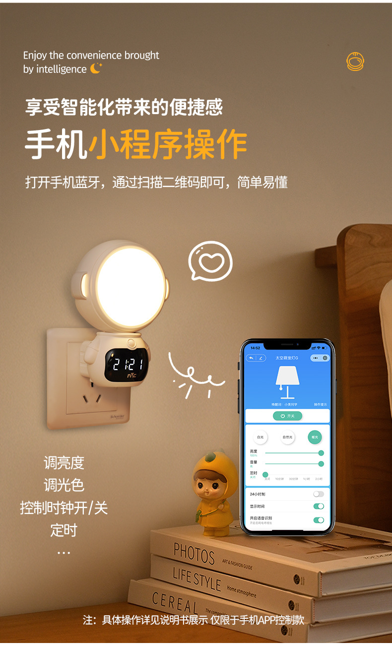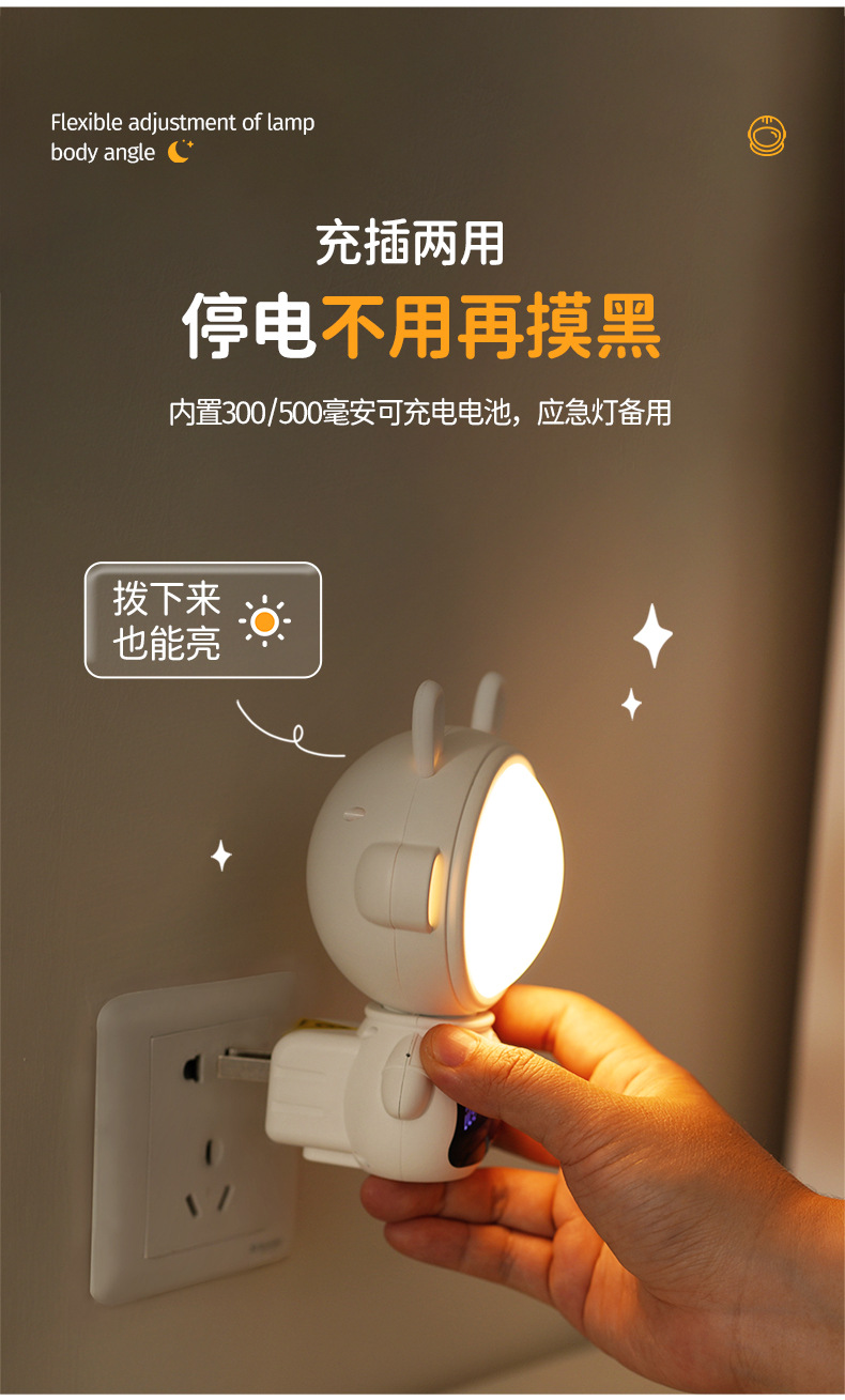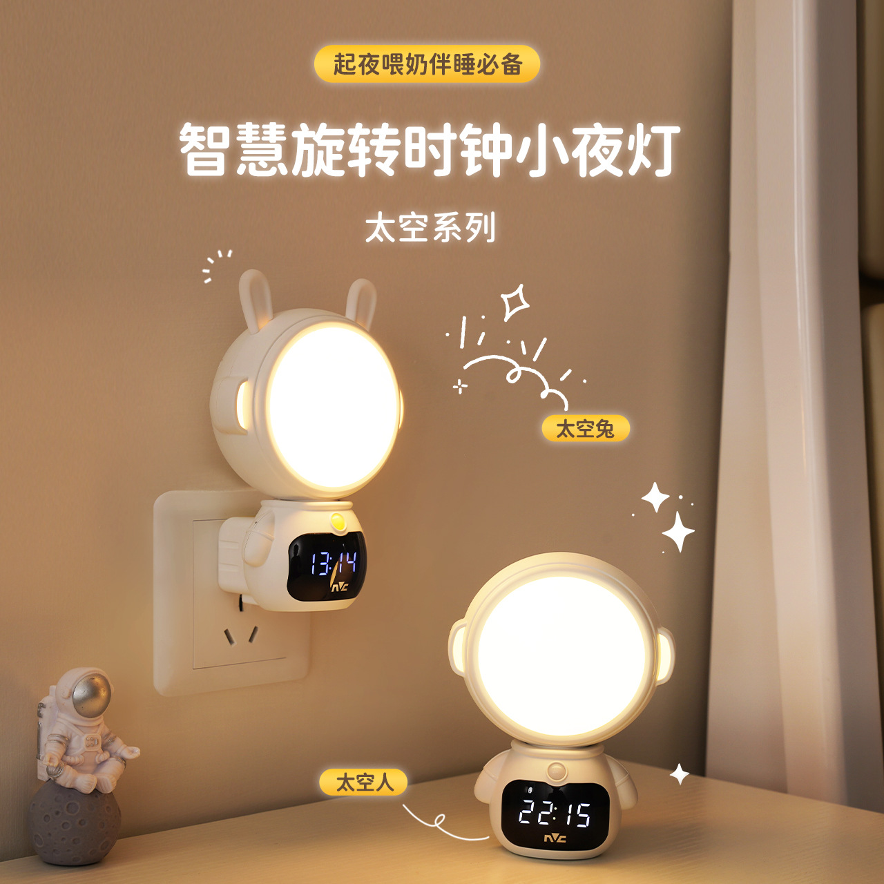 • Space Rabbit-고휘도 3색 음성/충전 및 플러그인 이중 목적 시계 야간 조명 LED2.4W