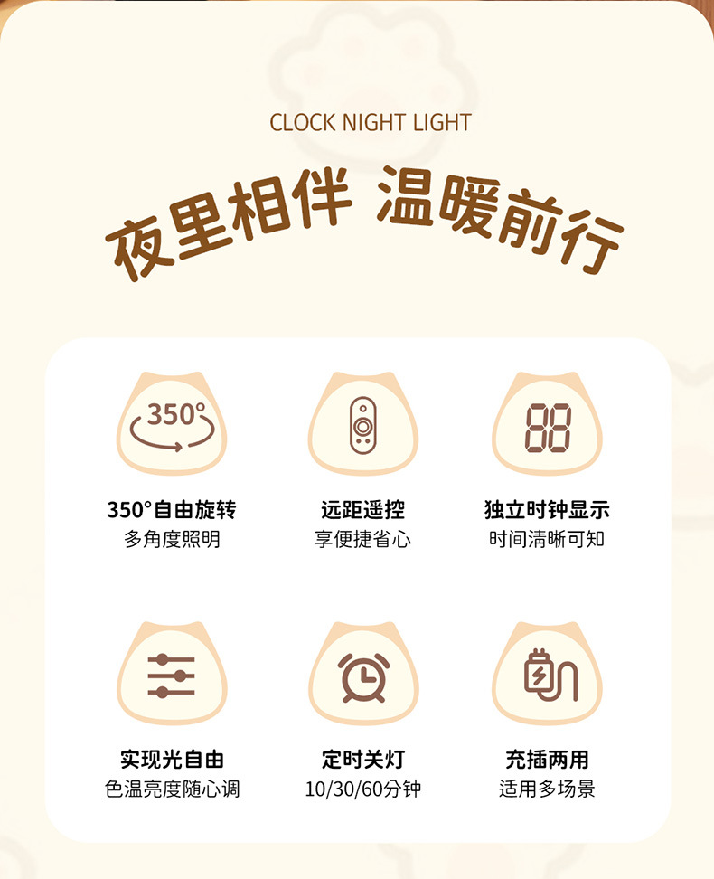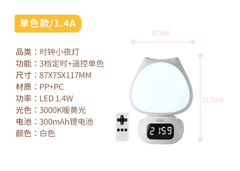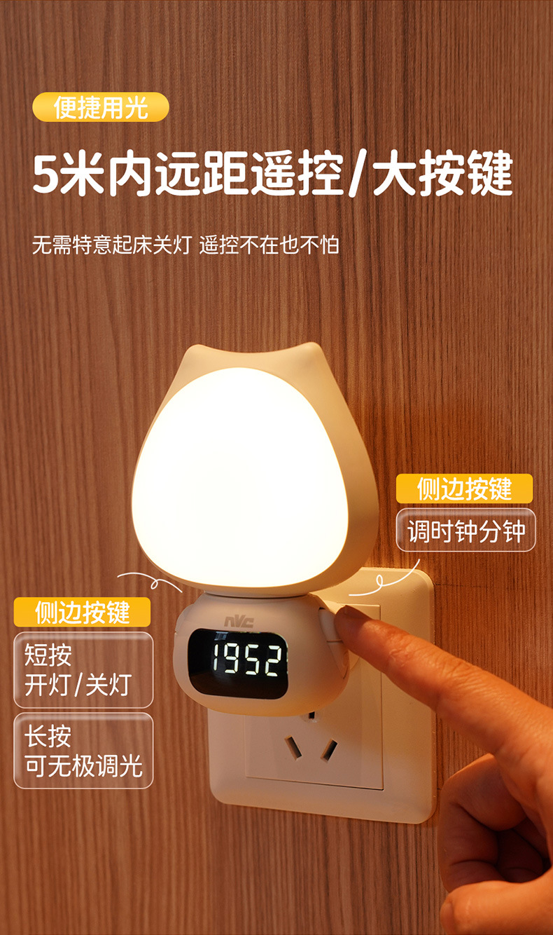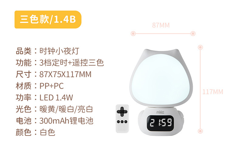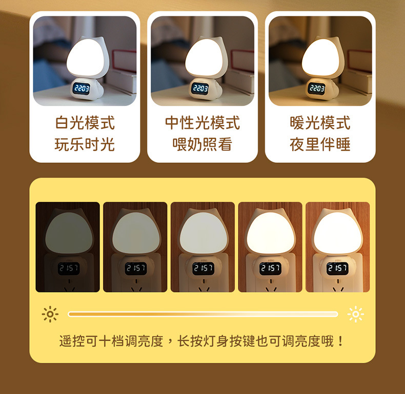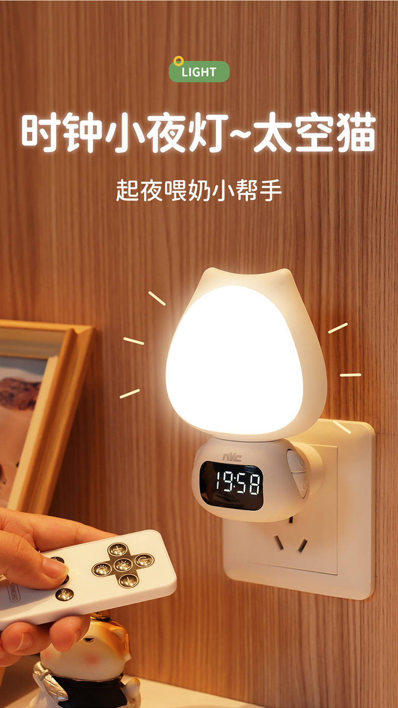 • 특별 제안! Space Cat-3색 리모콘/충전 및 플러그인 시계 야간 조명 LED1.4W