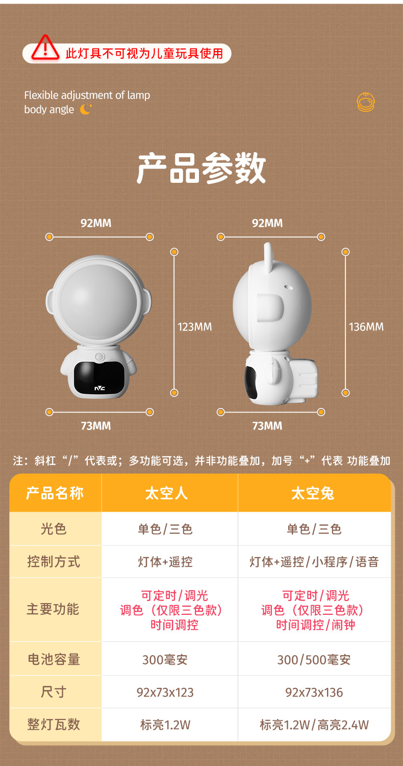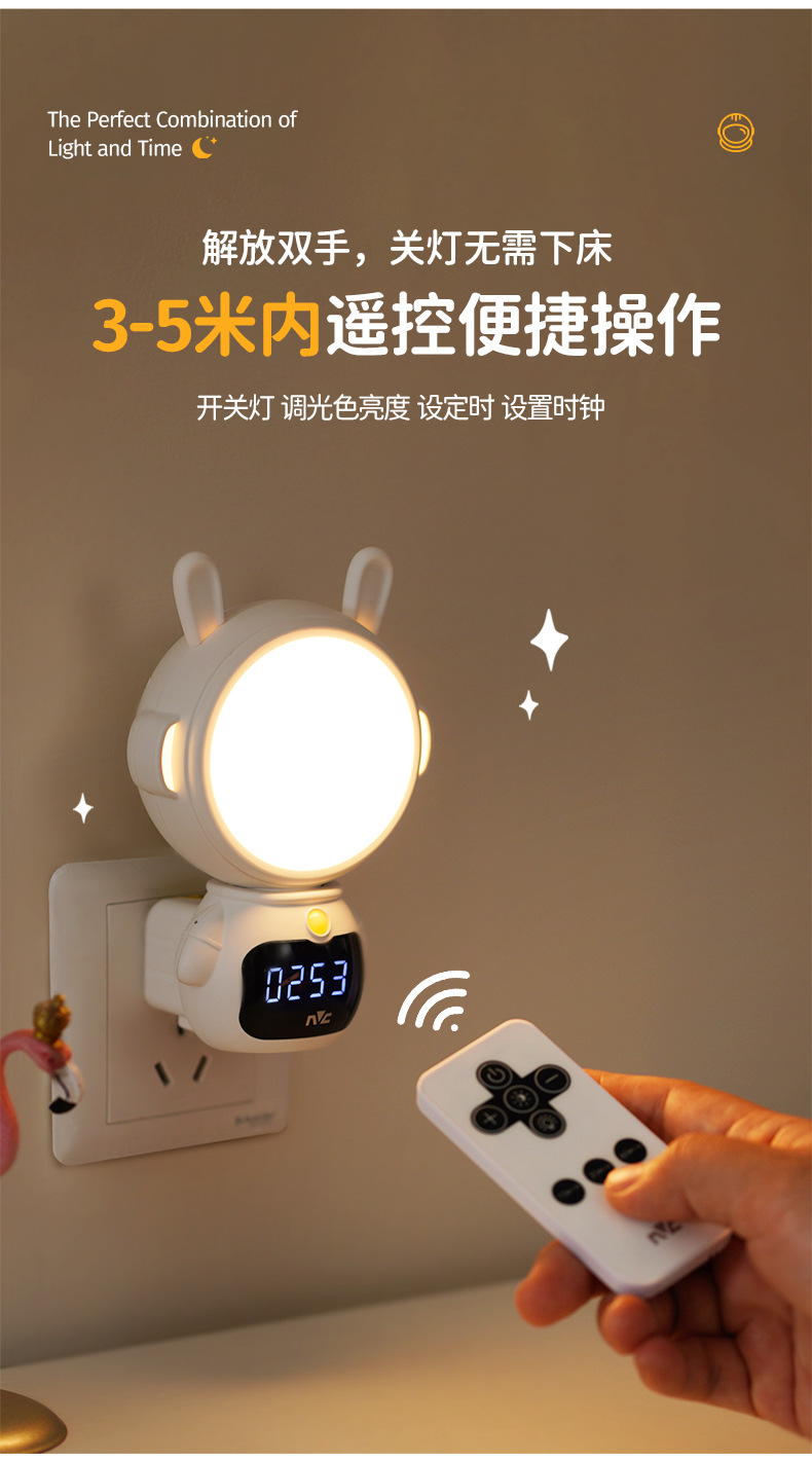 • Space Rabbit-3색 리모콘/충전 및 플러그인 시계 야간 조명 LED1.2W