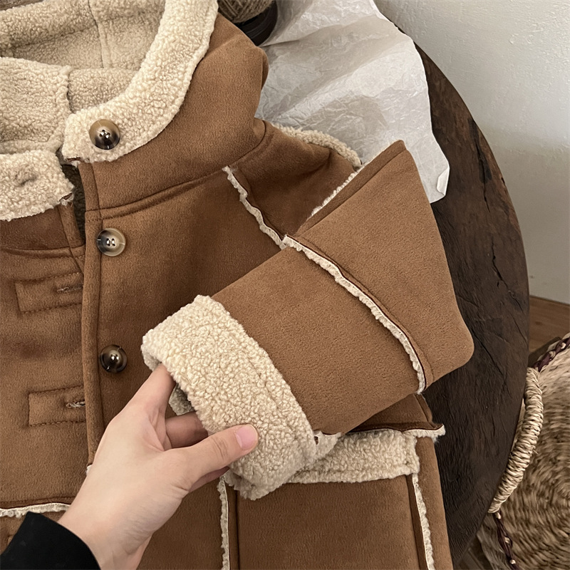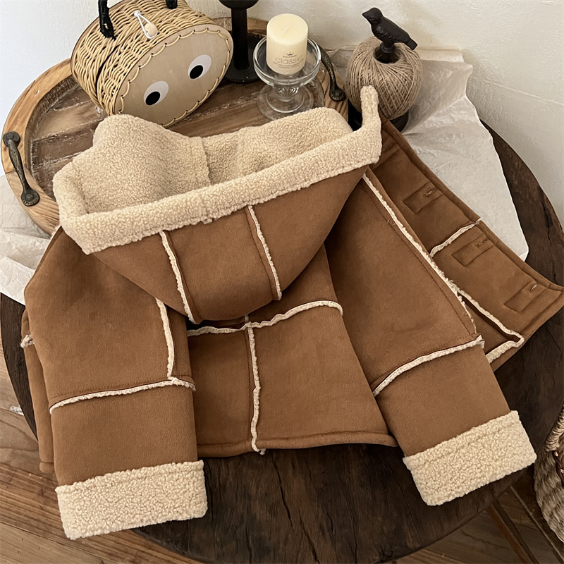 통싱위안 2025 겨울 신상 한국 스타일 아동복 여아 양털 안감 스웨이드 재킷 메일라드 스타일스토어 가기