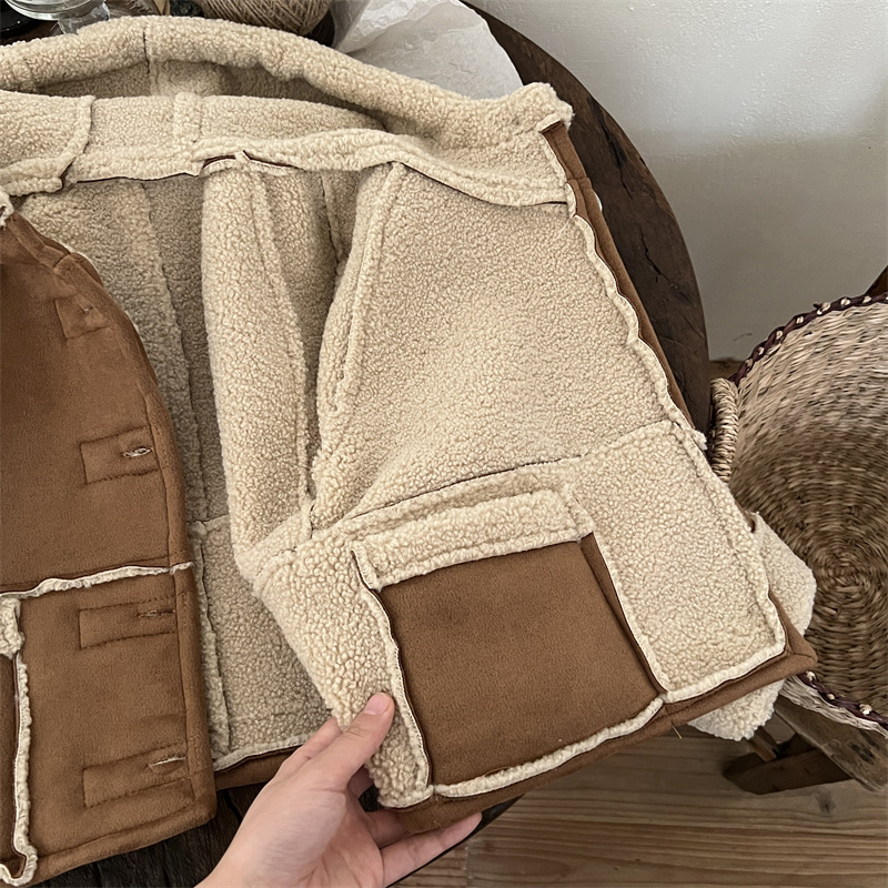 통싱위안 2025 겨울 신상 한국 스타일 아동복 여아 양털 안감 스웨이드 재킷 메일라드 스타일