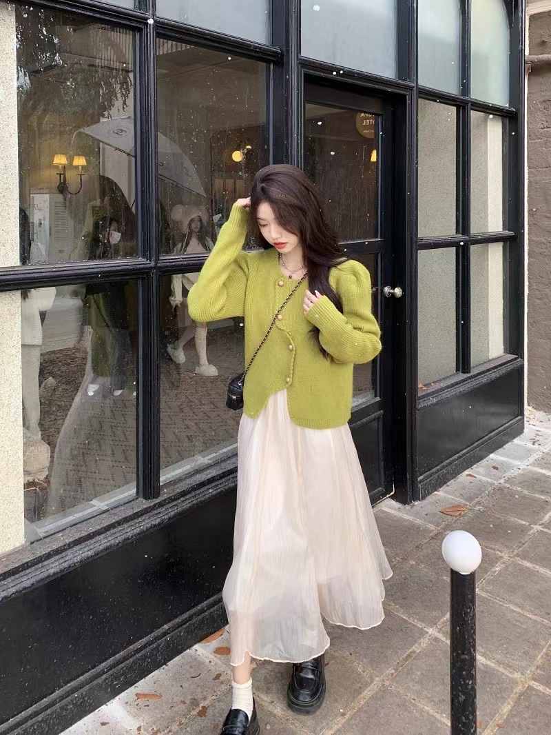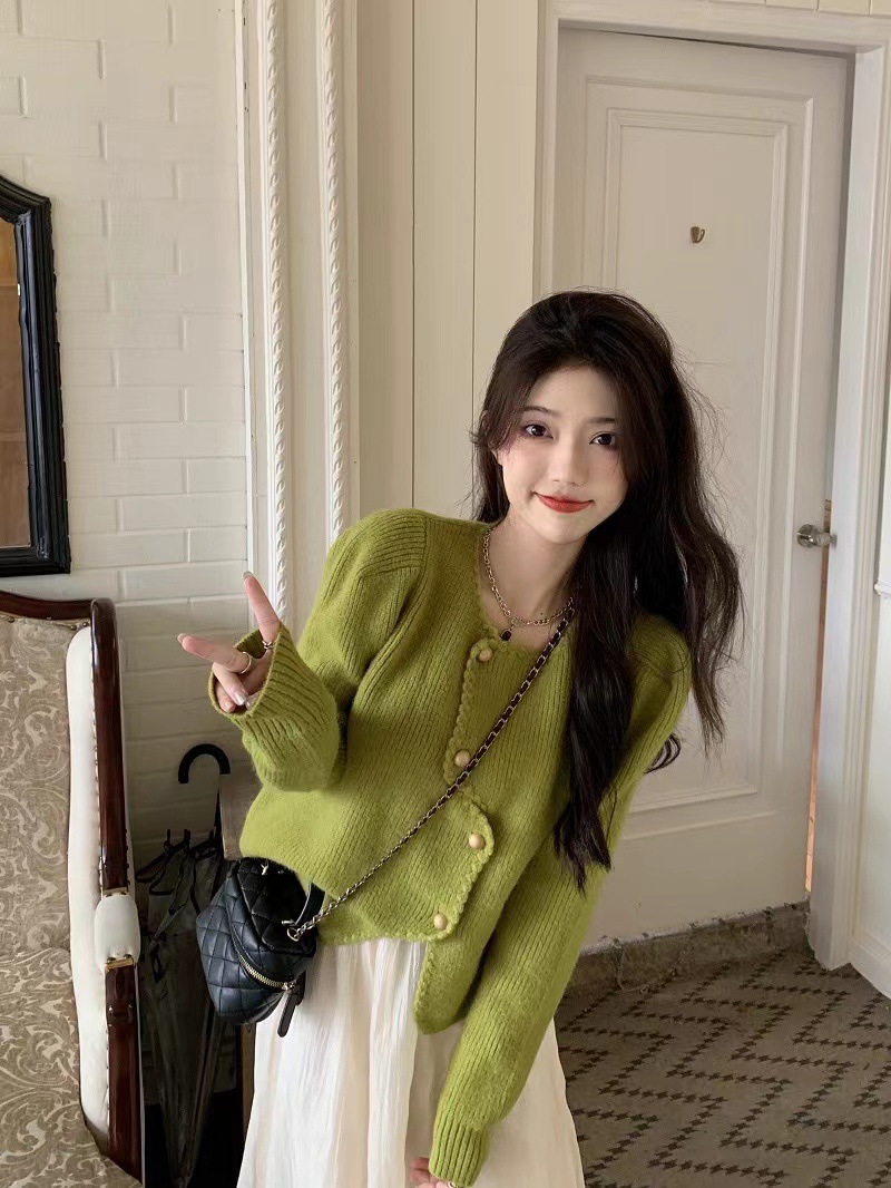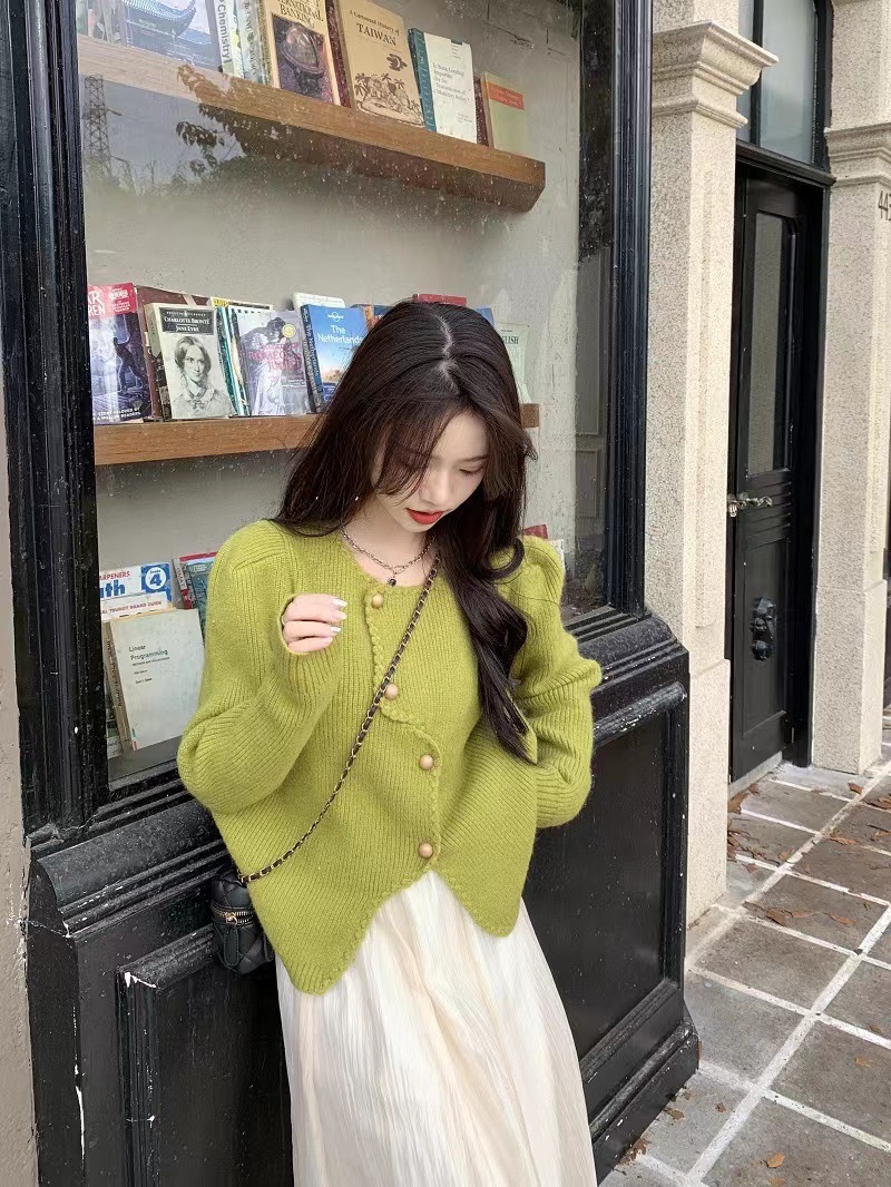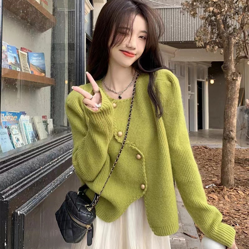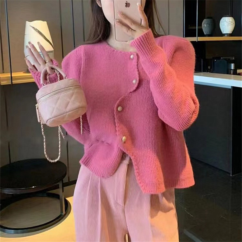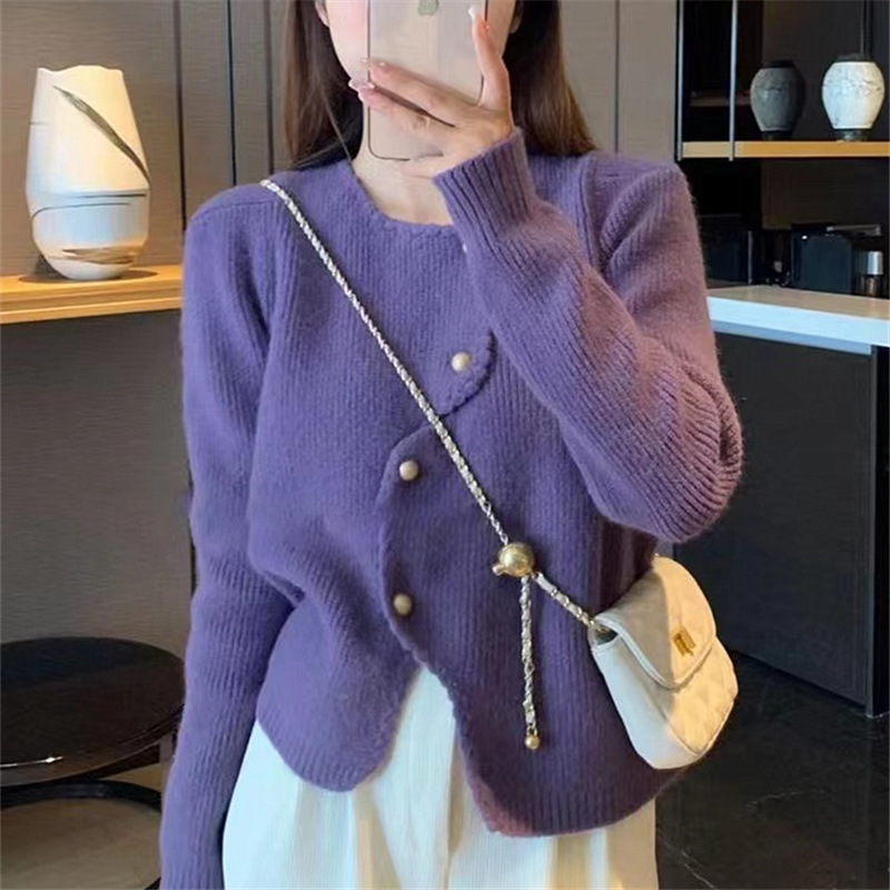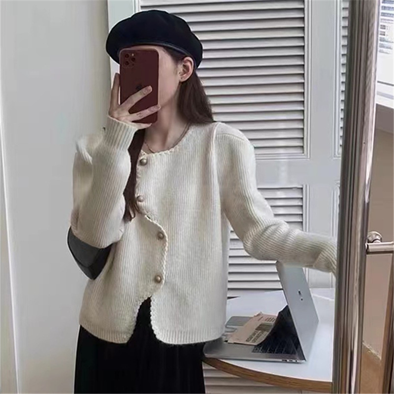 불규칙한 샤넬 스타일 니트 카디건 여성의 봄과 가을 디자인 틈새 부드러운 왁스 느슨한 짧은 스웨터 코트스토어 가기