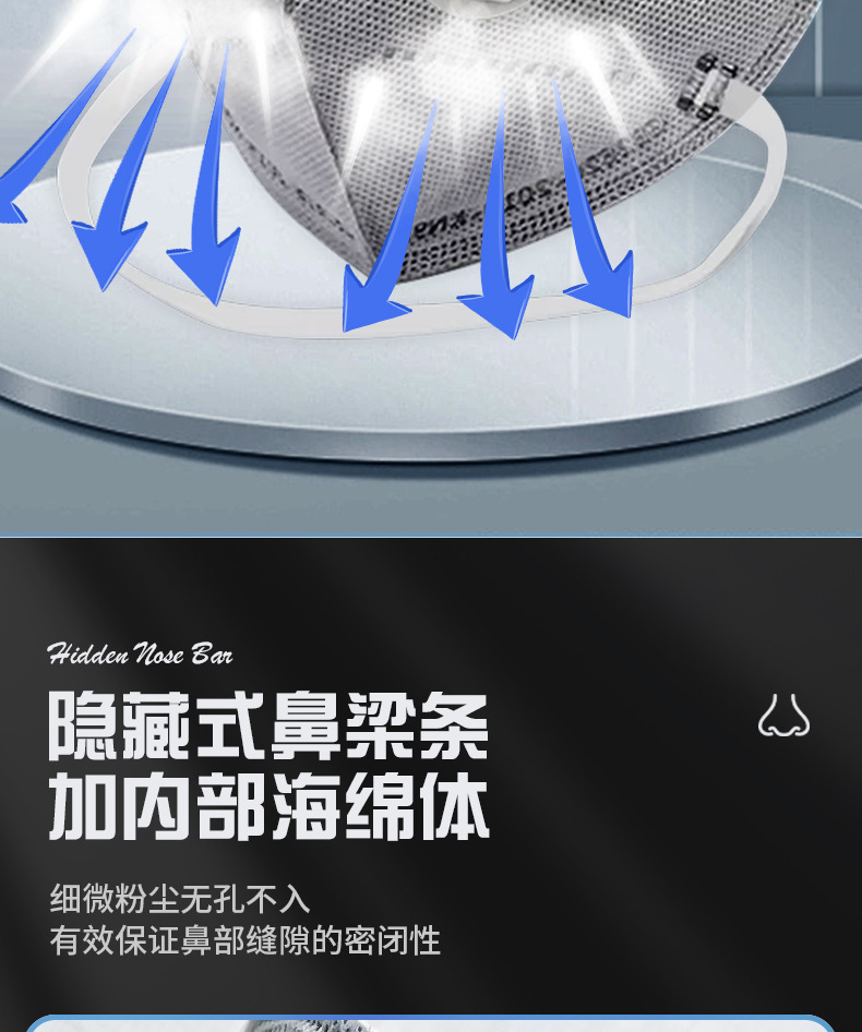 • 5겹 평면 이어스트랩 [탄소 함유 회색 + 이중 멜트블로운 천]