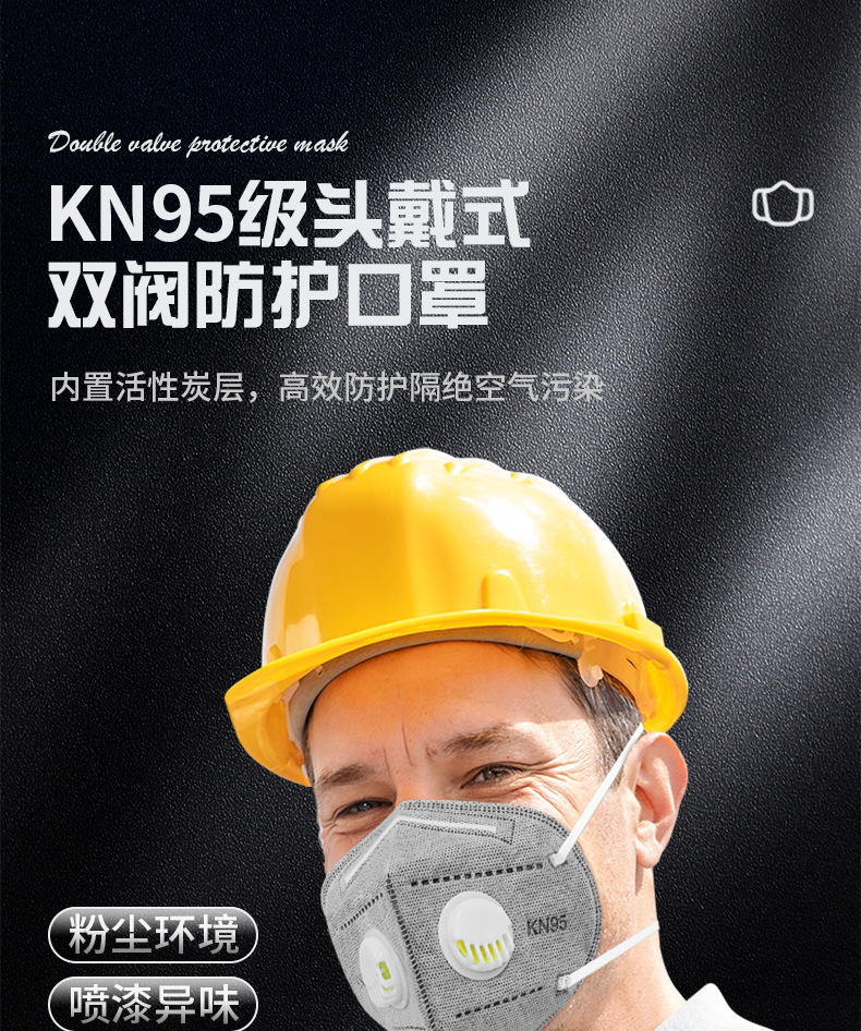 KN95 마스크 방진 산업용 방진 활성탄 헤드셋, 포름알데히드 방지 탄광 연삭 용 밸브 장착스토어 가기