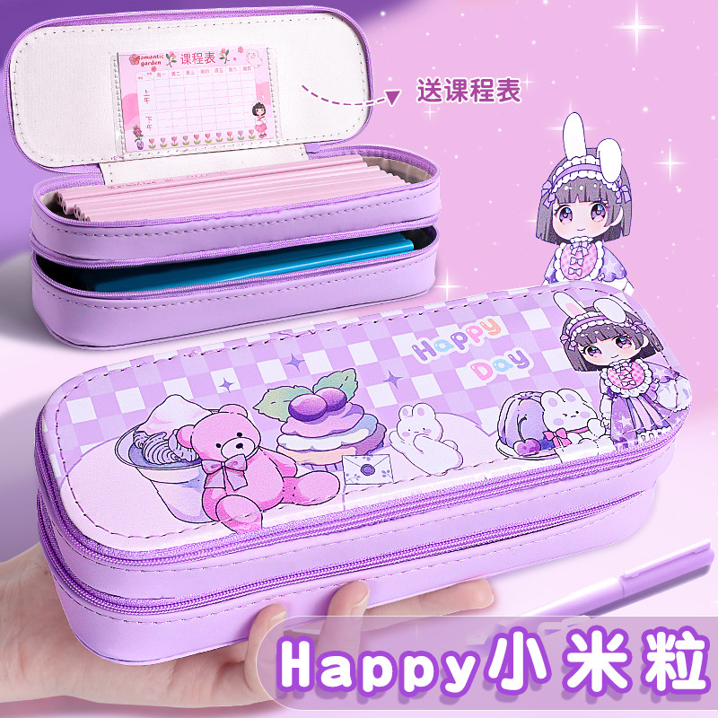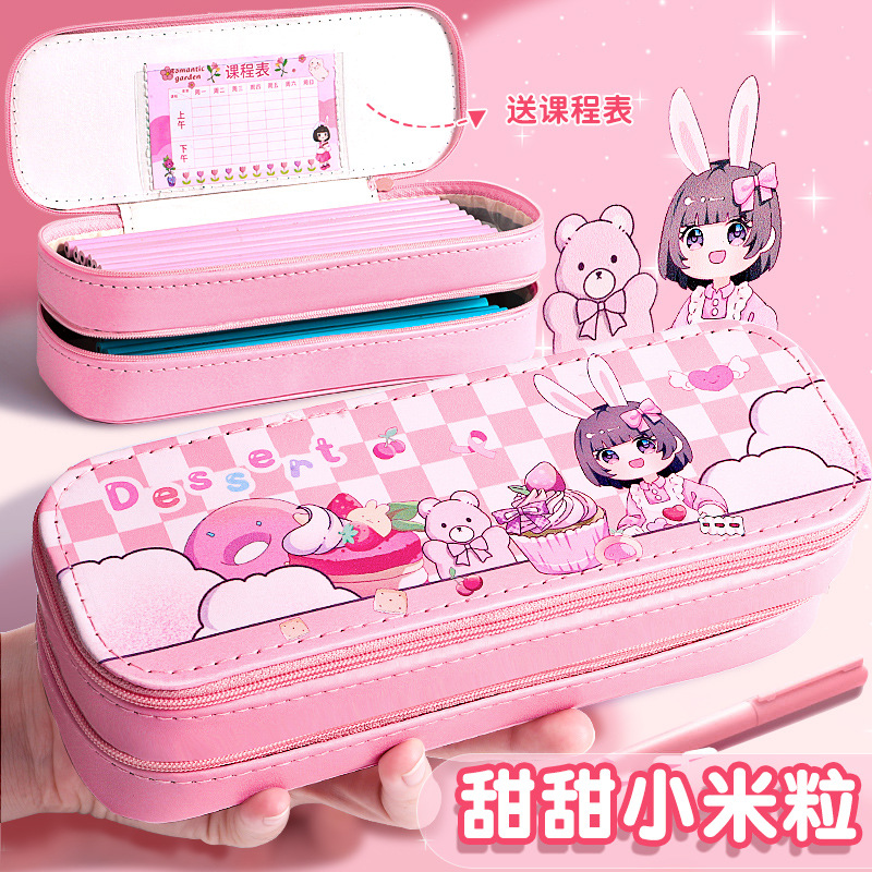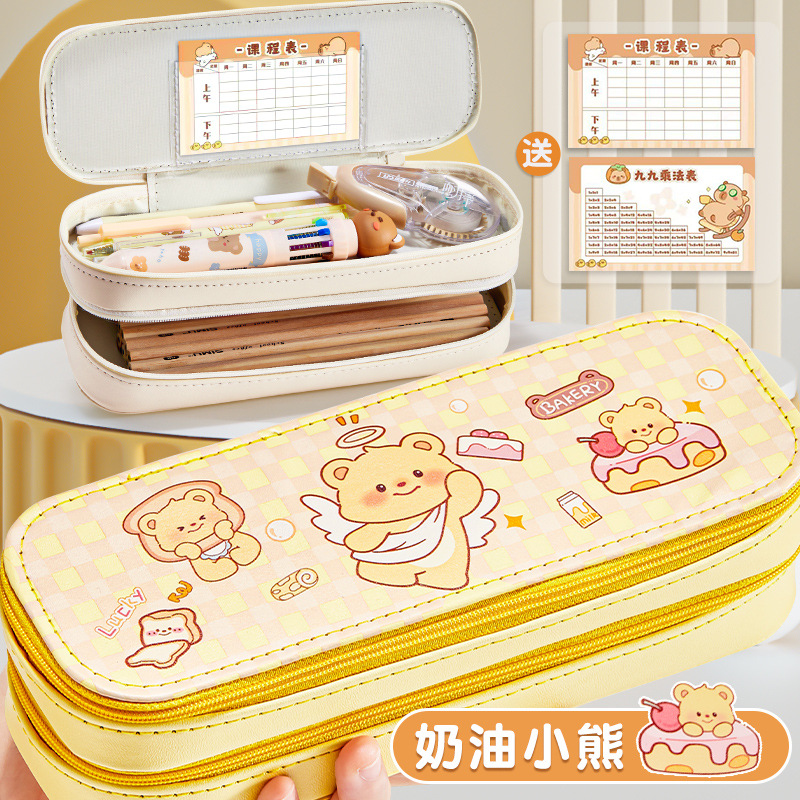 더블 레이어 연필 케이스 대용량 레이어 연필 케이스 초등학교 유치원 귀여운 만화 문구 보관 상자 간단한 연필