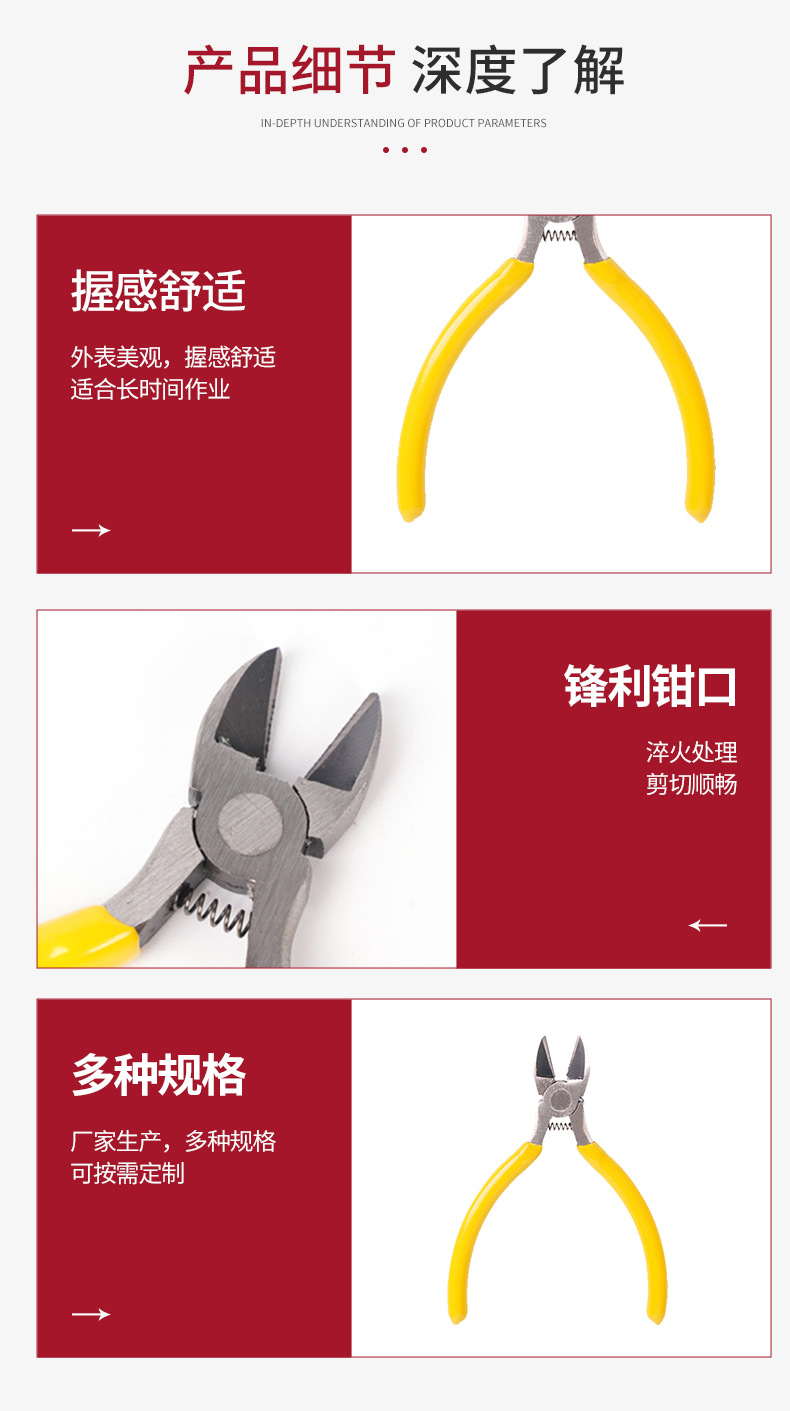 6 섹션 쥬얼리 공급 펜치 손으로 만든 5 인치 노란색 핸들 대각선 펜치 봄 노동 절약 펜치 공장 도매 수제 펜치