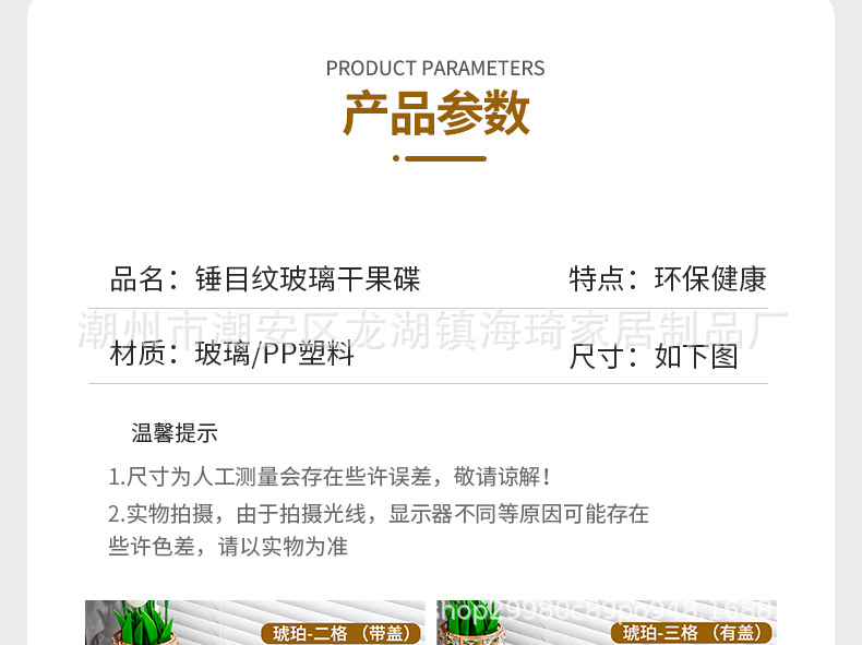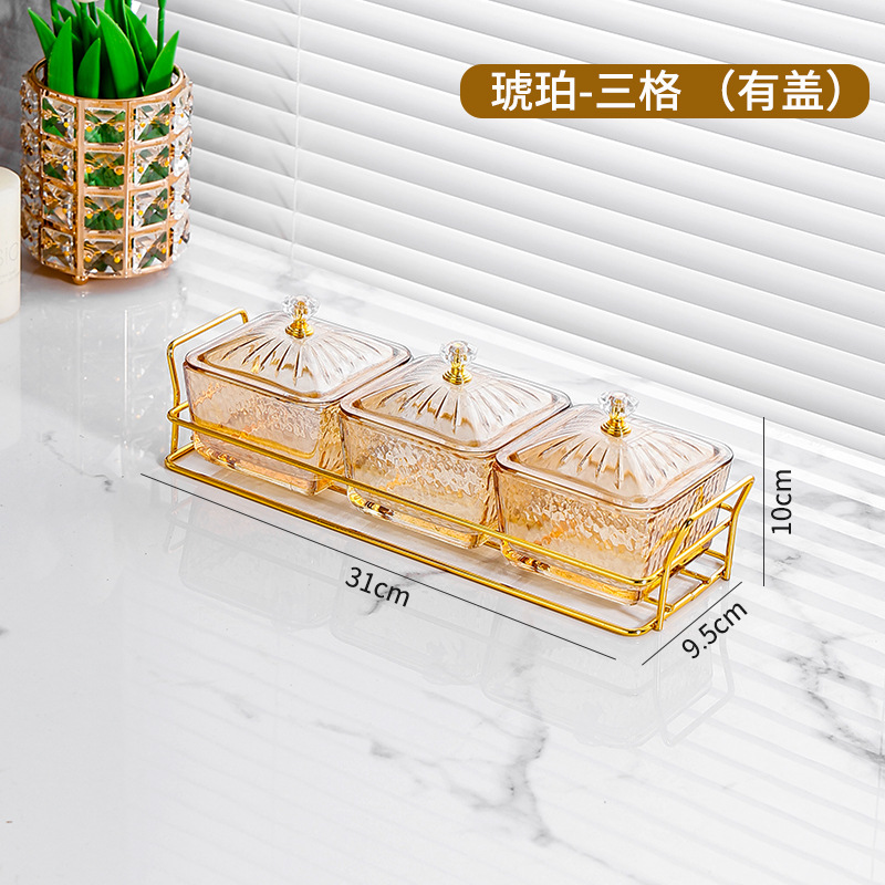 • 뚜껑이있는 황금 프레임 [3 그리드 앰버 해머 텍스트 유리 사각형 접시]