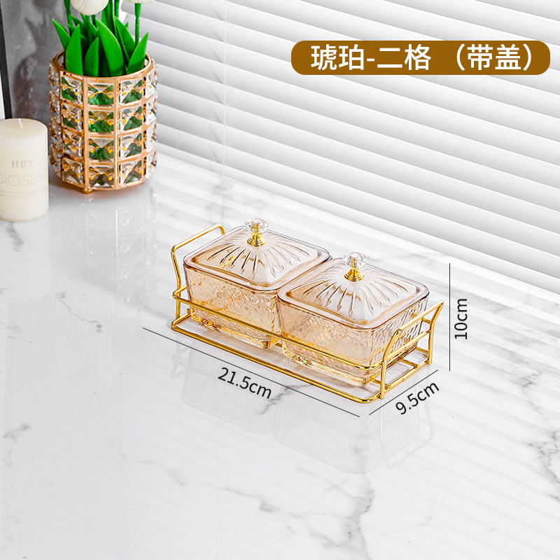 • 뚜껑이있는 황금 프레임 [2 그리드 앰버 해머 텍스트 유리 사각형 접시]