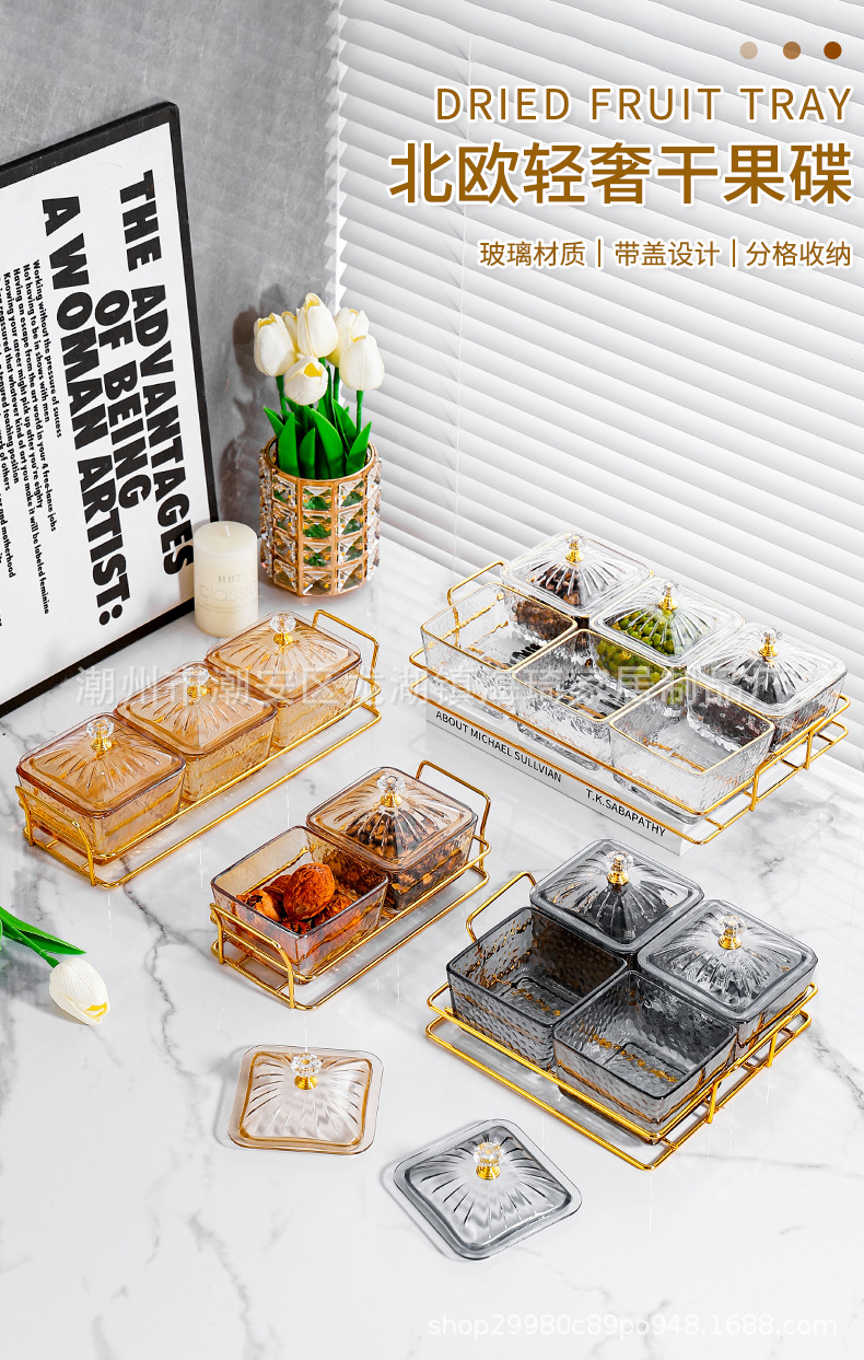 노르딕 라이트 럭셔리 분리 유리 과일 플레이트 스낵 티 디저트 말린 과일 요리 캔디 바 ktv 뷰티 살롱스토어 가기