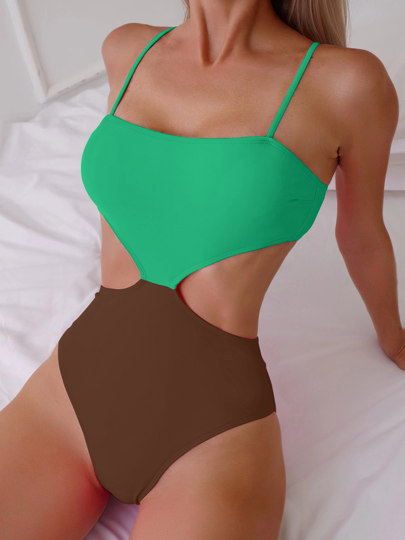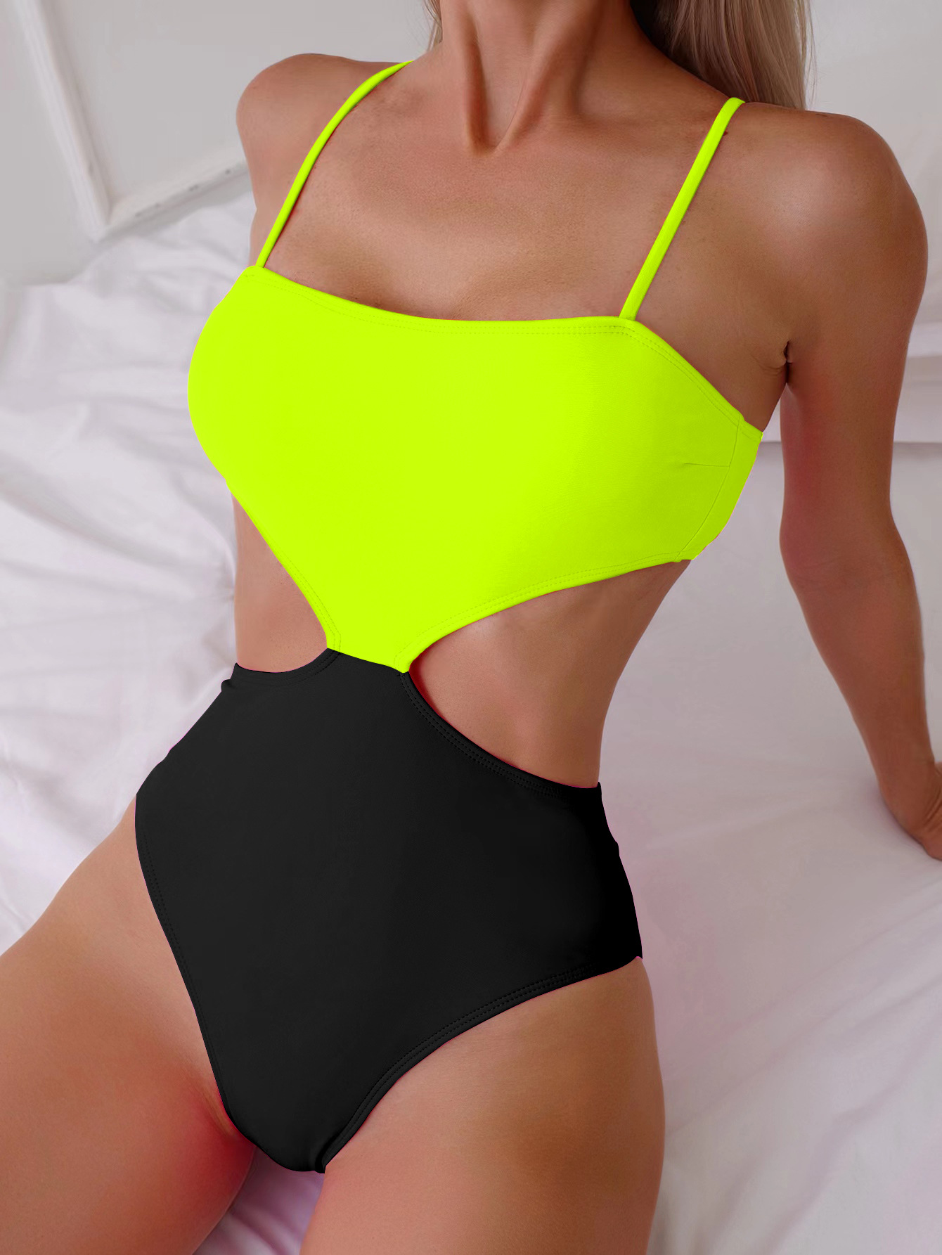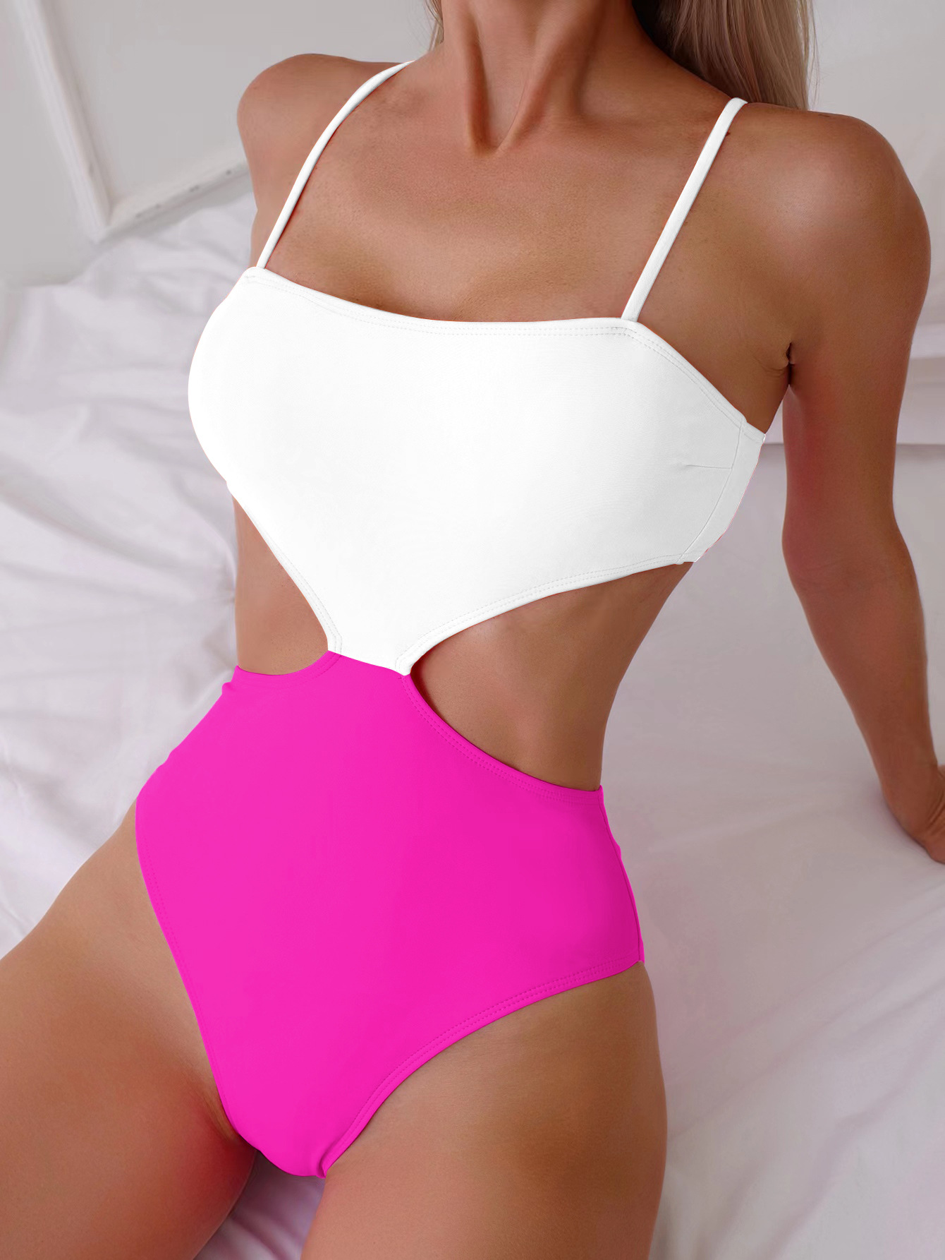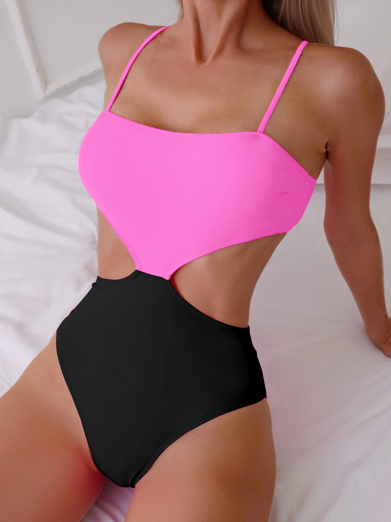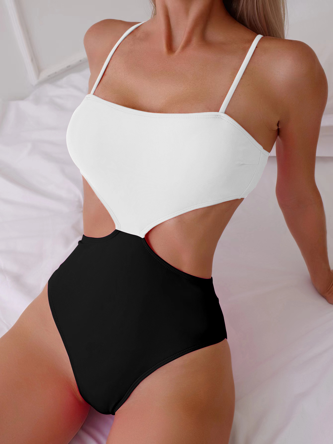 2025 신상 유럽풍 섹시 배색 비키니 하이웨이스트 컷아웃 슬림 수영복 알리익스프레스 여성 비키니스토어 가기