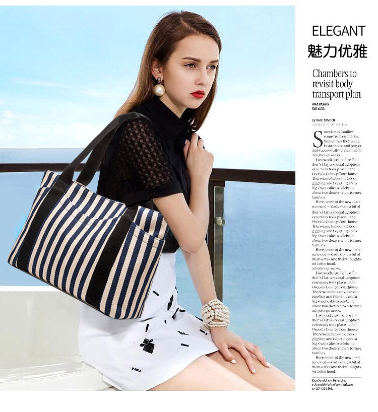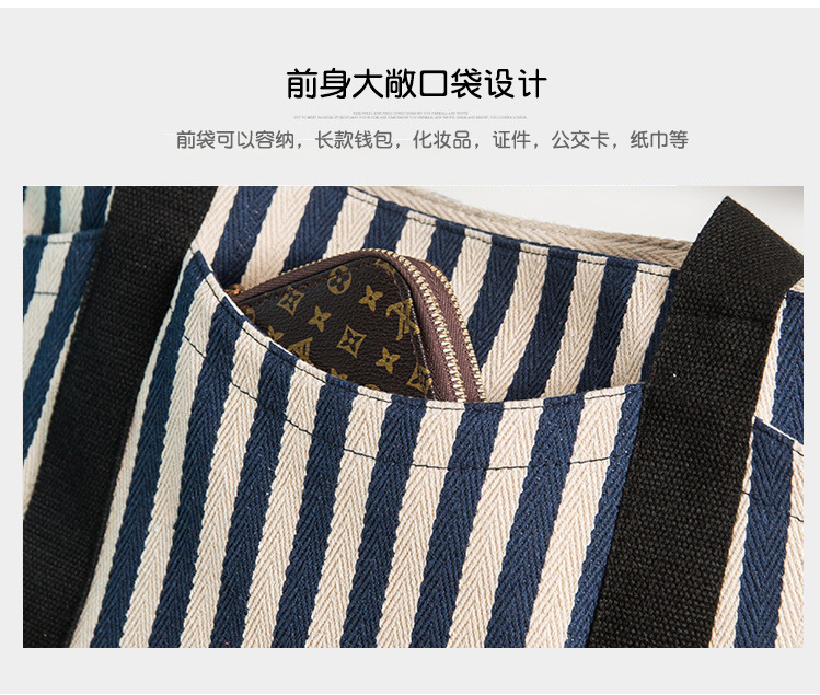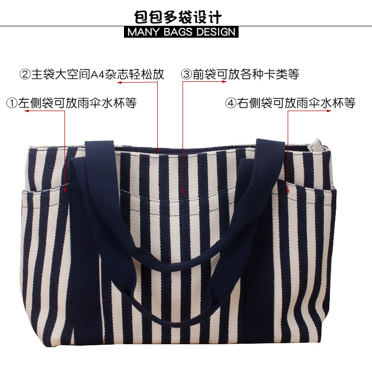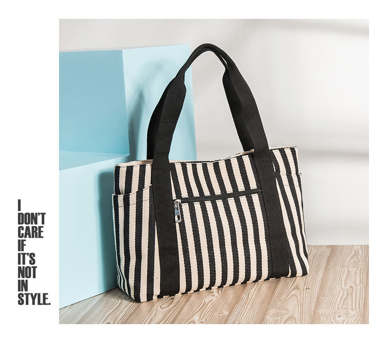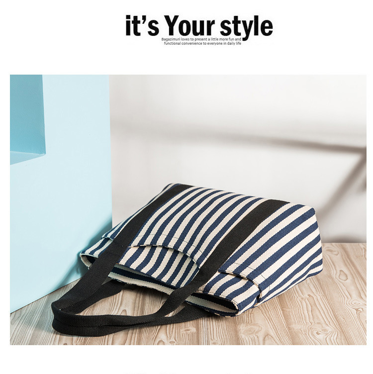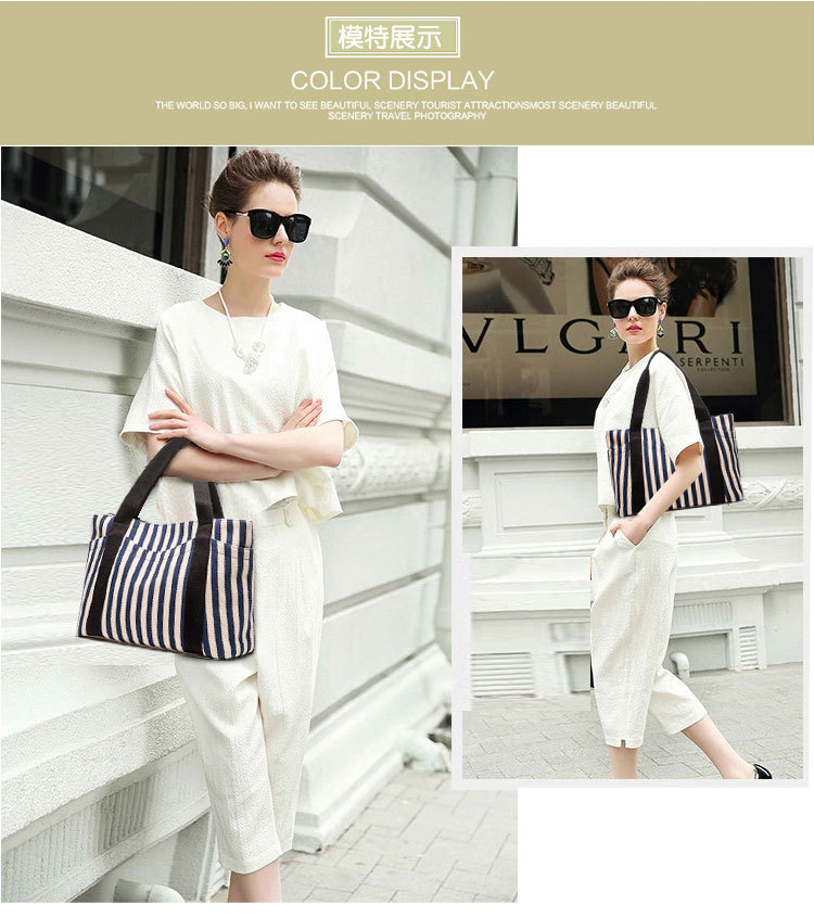 스트라이프 캔버스 가방 대용량 대비 컬러 캔버스 가방 여성용 휴대용 숄더백 캐주얼 레트로 토트 백 광저우 공장스토어 가기
