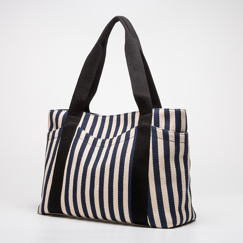 스트라이프 캔버스 가방 대용량 대비 컬러 캔버스 가방 여성용 휴대용 숄더백 캐주얼 레트로 토트 백 광저우 공장