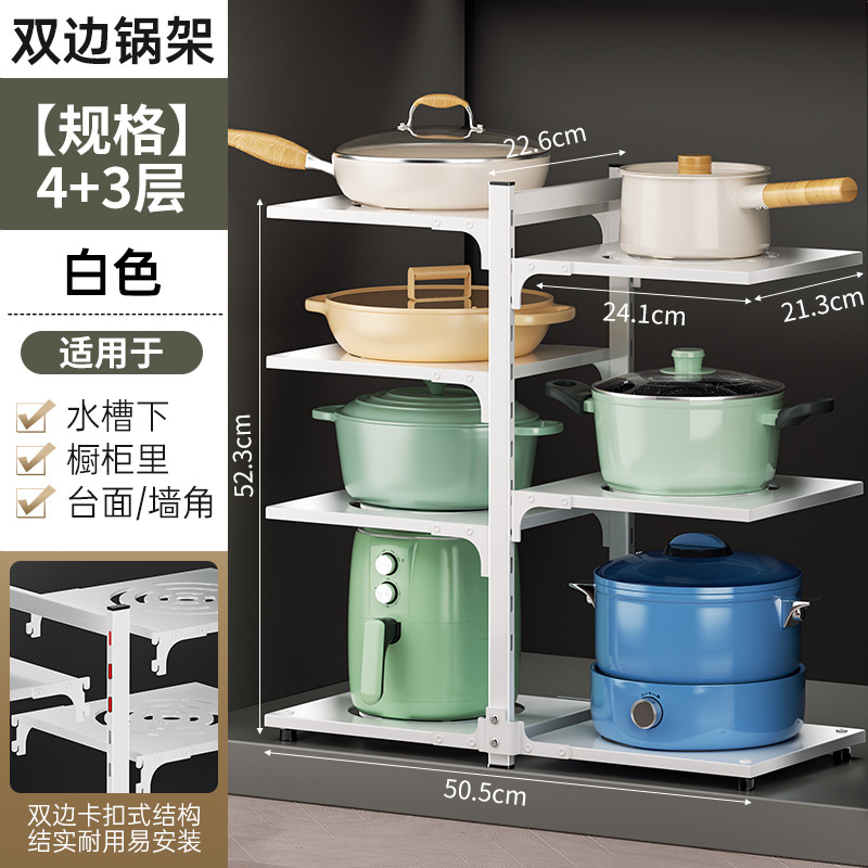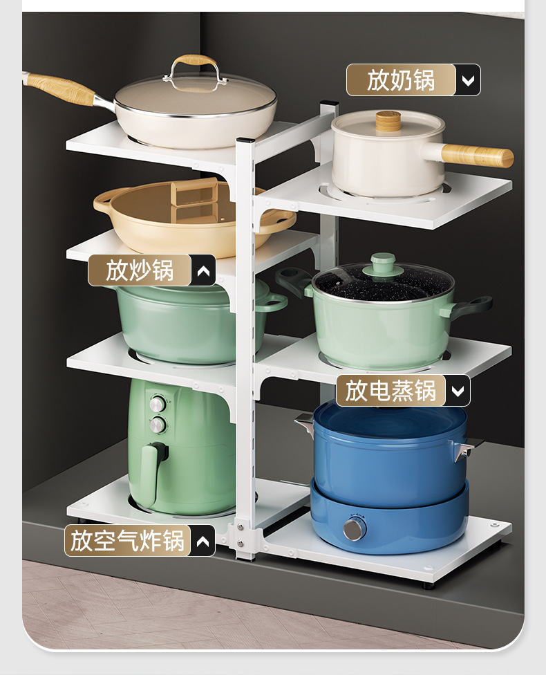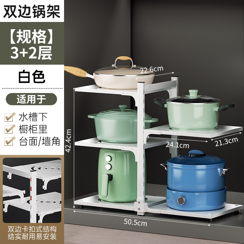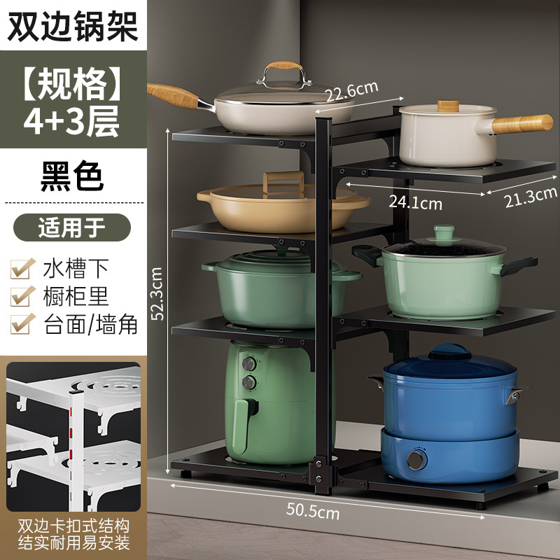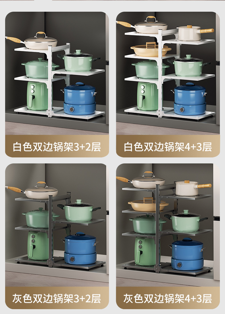 주방 스토리지 랙 바닥 다층 냄비 랙 캐비닛 레이어드 하단 싱크 냄비 보관 다기능 스토리지 랙